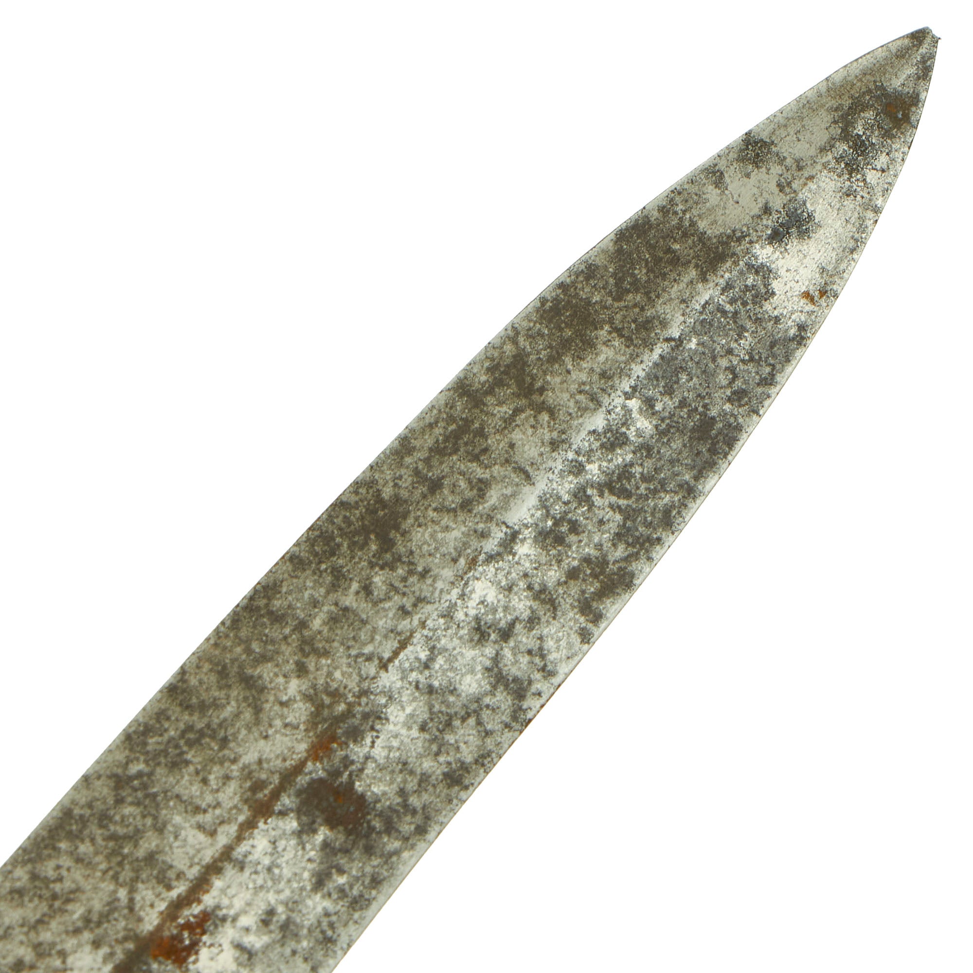 Condition is very good, with a nice patina on the blade, though it is currently loose in the hilt. A very smart fighting knife, ready to research and display!
