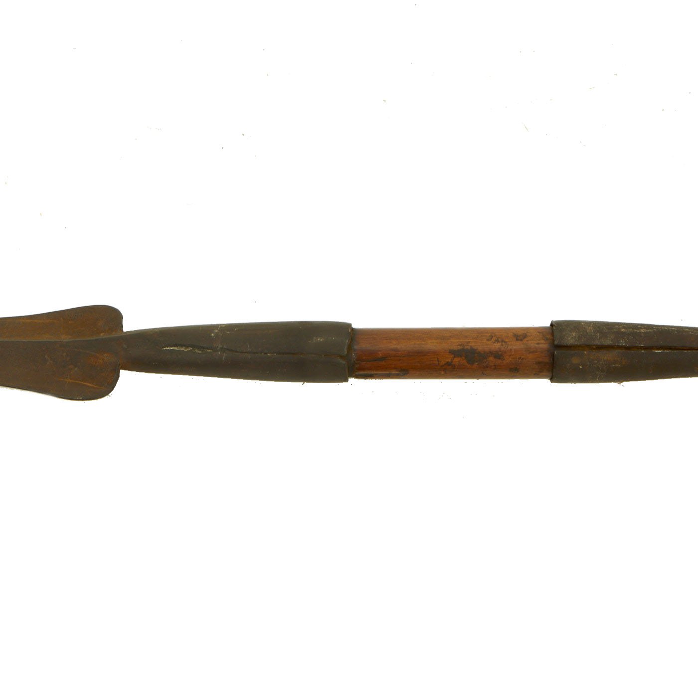 The second piece of the set is a very long double ended lion spear, 82” in overall length, which disassembles into two sections. It has a 39 ½” long cutting blade on one end, similar in design to the “semi”, while the other end is a 33” long spike. When disassembled the longer section is 49 inches long.
