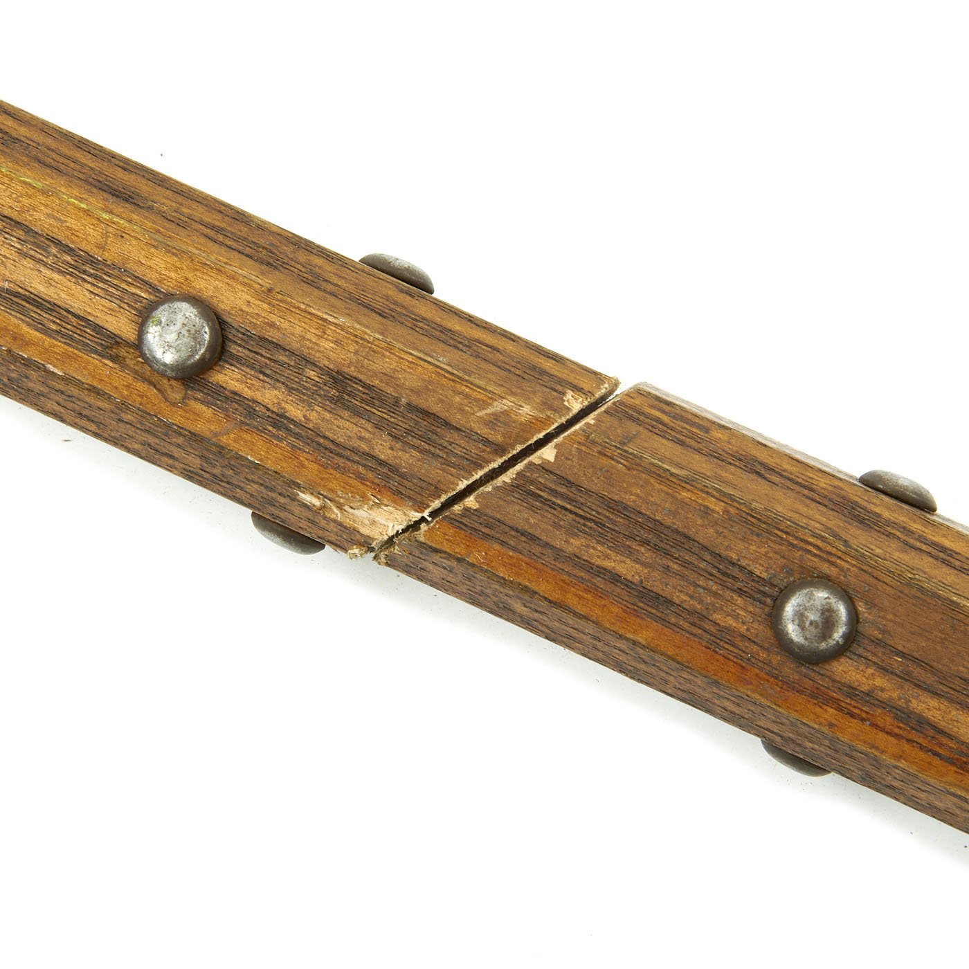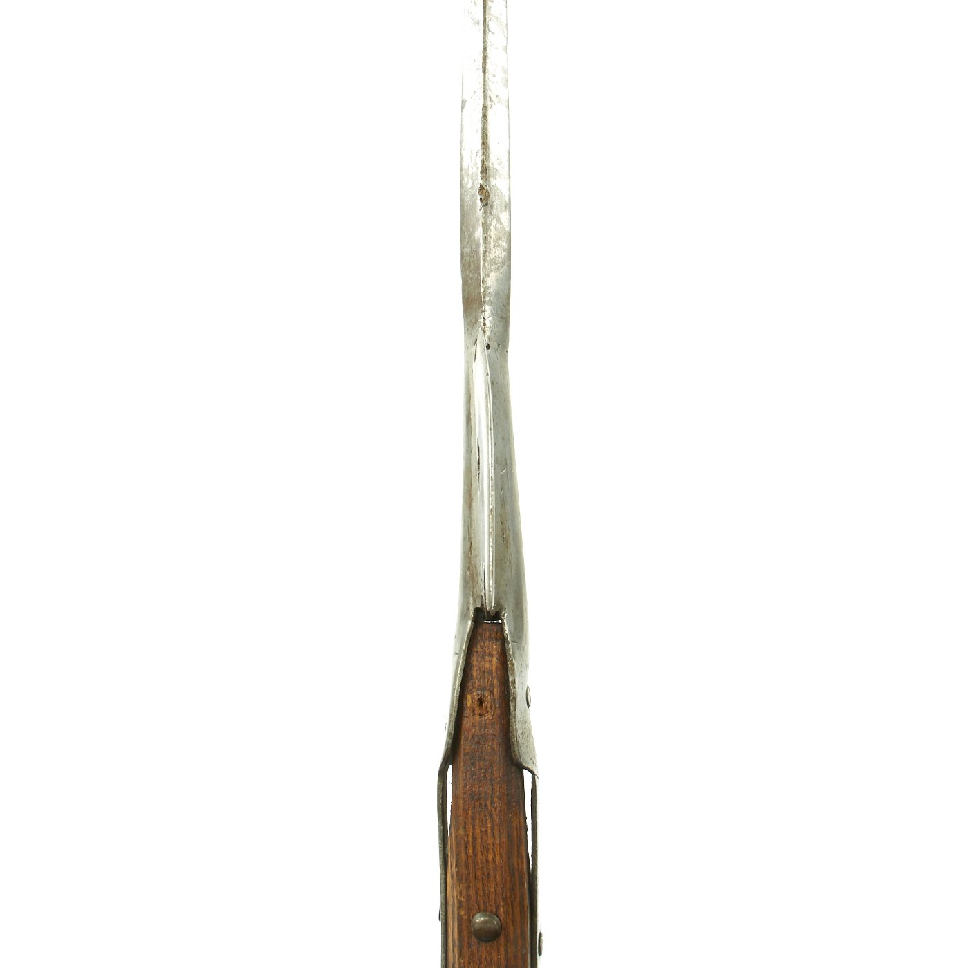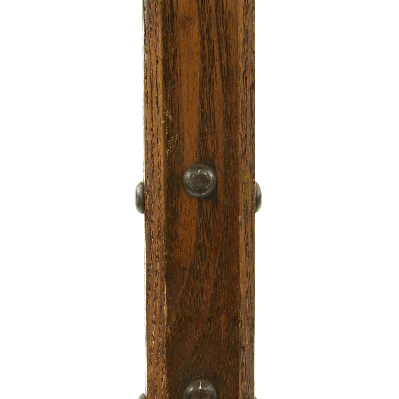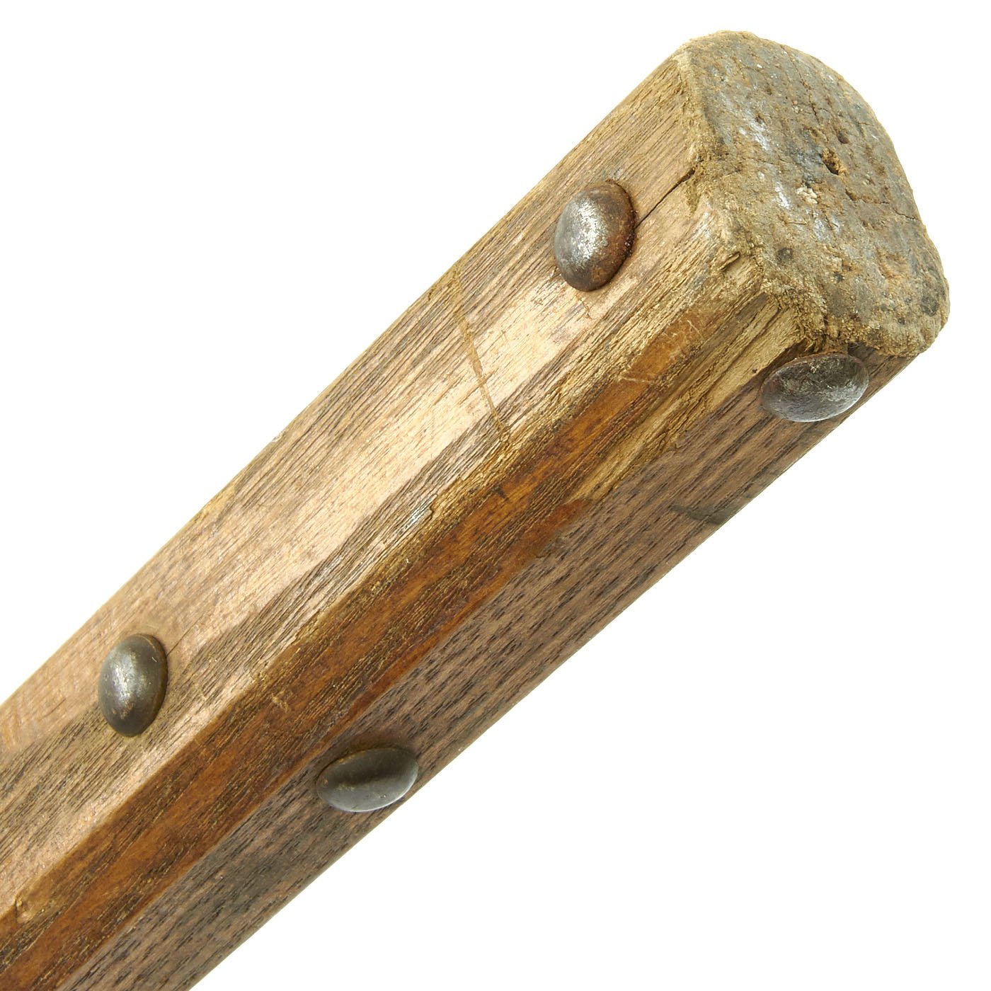 This is one of five varying examples we purchased in England in 2014. The two halves of the haft come from the same Halberd which can be confirmed by the wood grain pattern. These came straight off the wall having been there for possibly 300 years. Ready to Display!