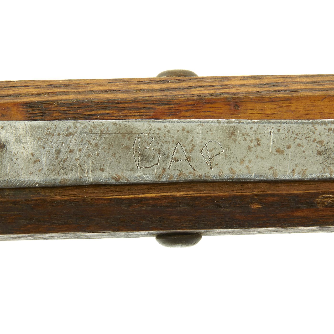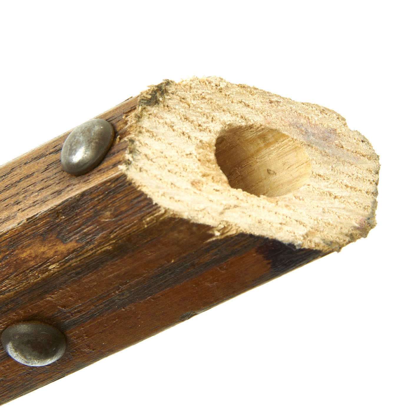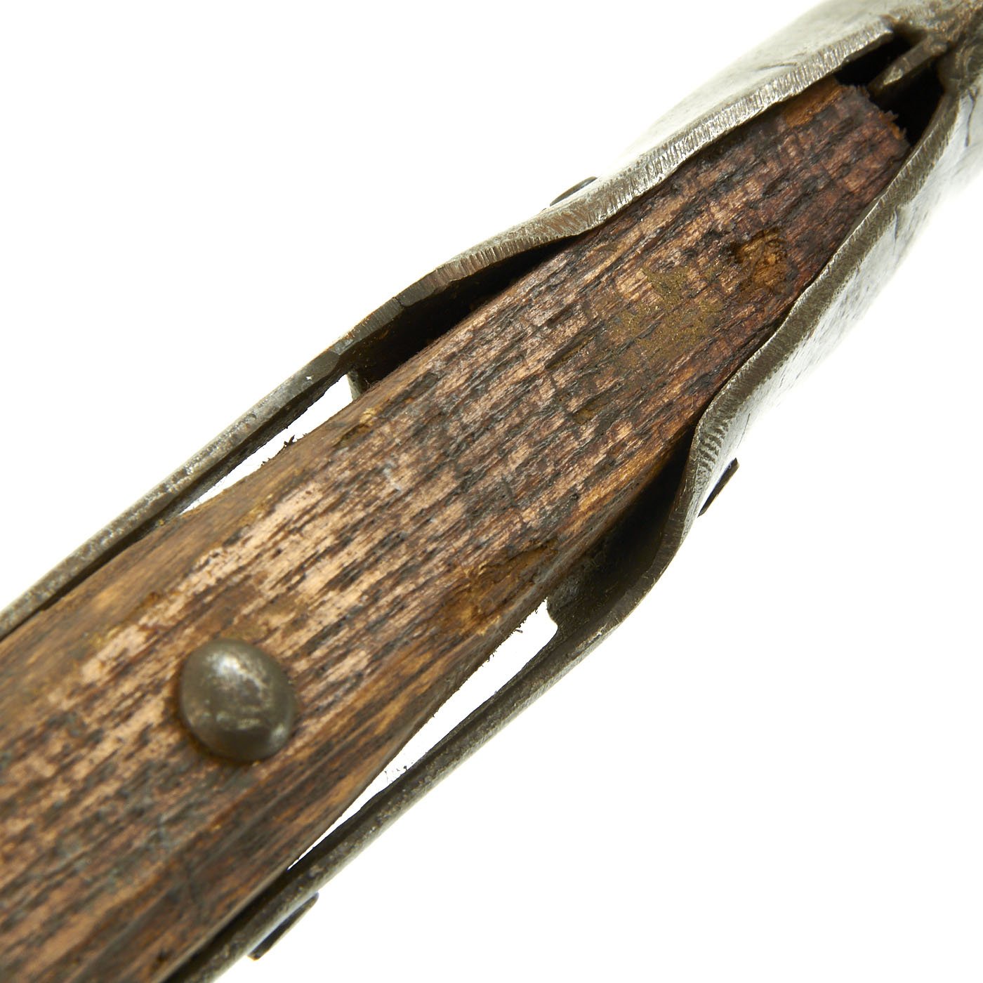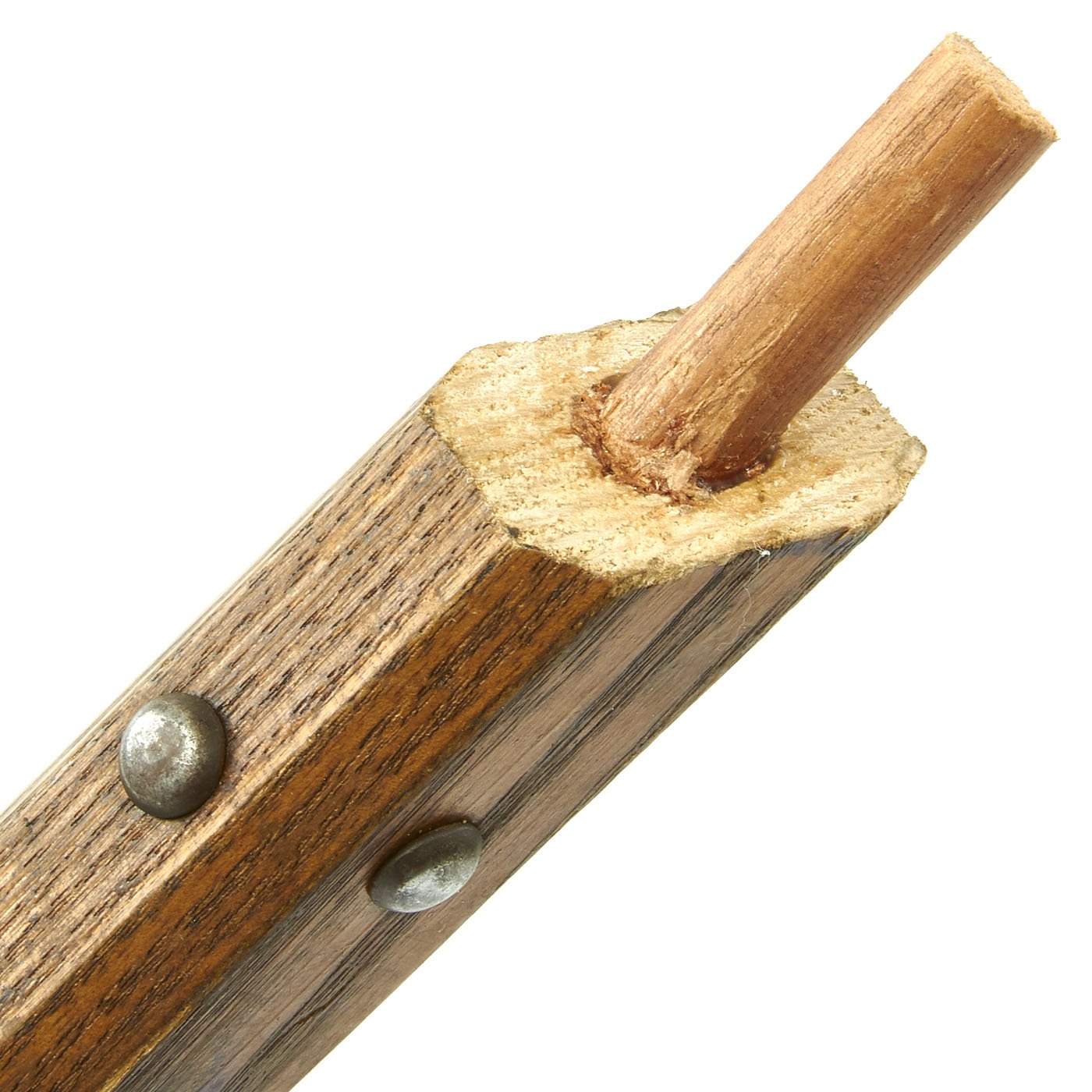 This is one of five varying examples we purchased in England in 2014. The two halves of the haft come from the same Halberd which can be confirmed by the wood grain pattern. These came straight off the wall having been there for possibly 300 years. Ready to Display!