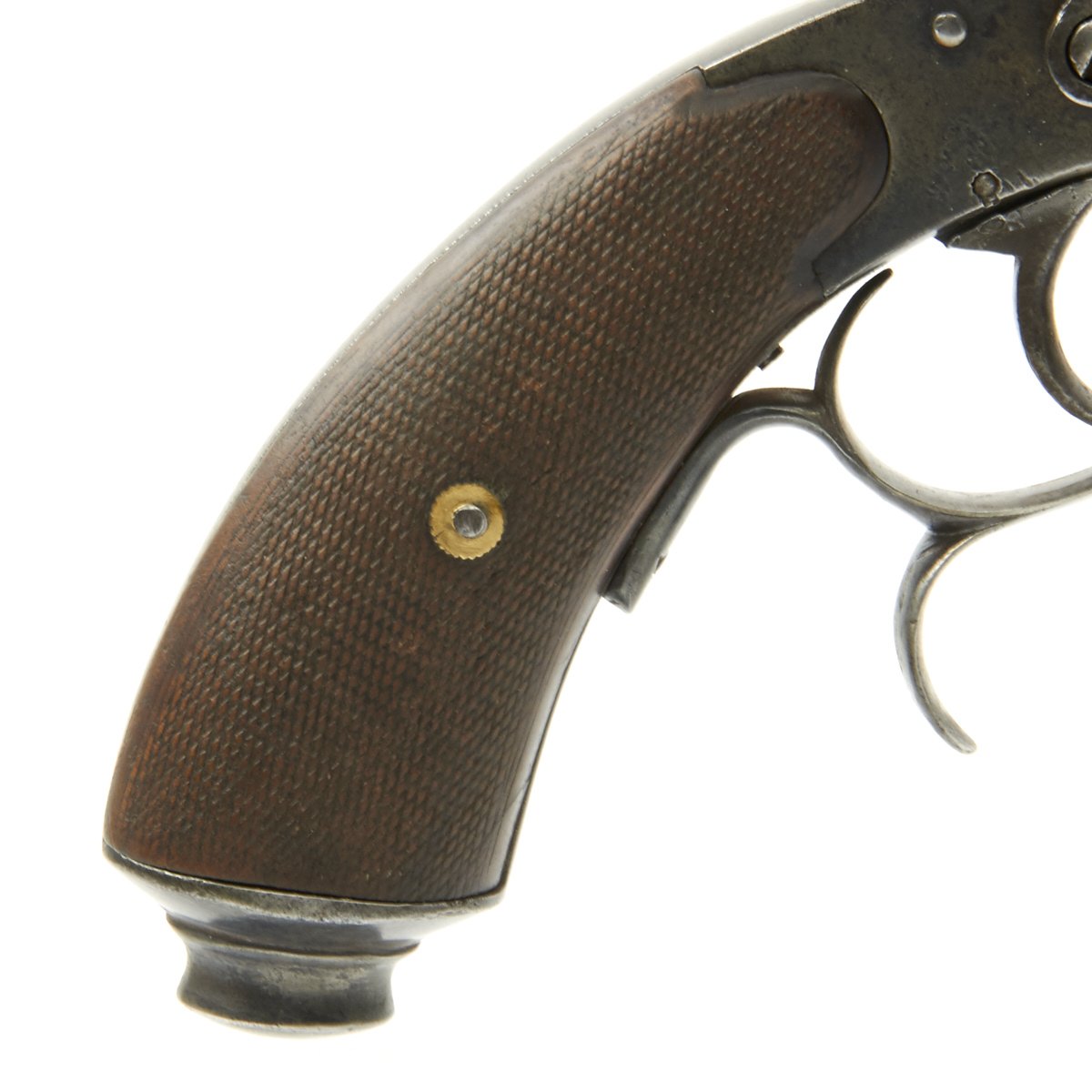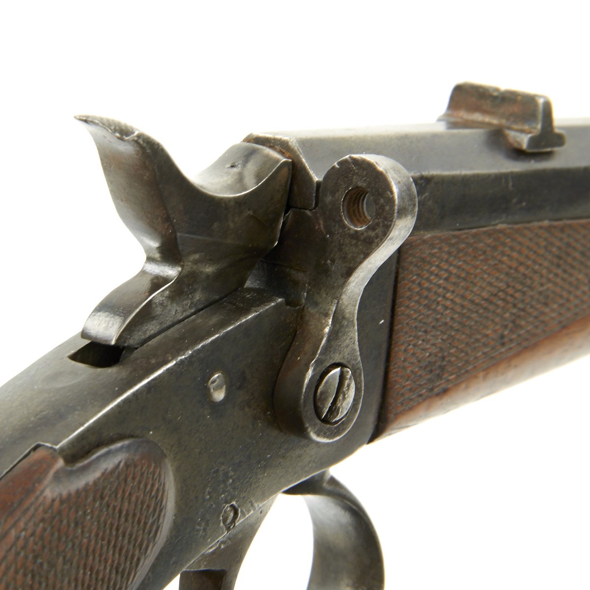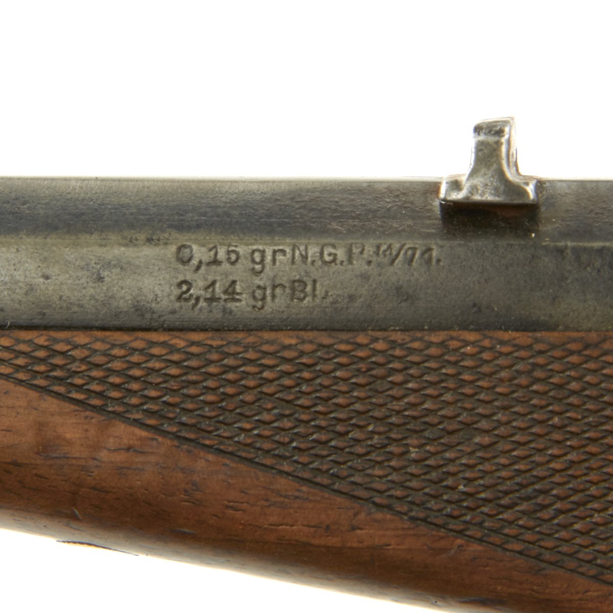 Original Item: Only One Available. In really nice condition, this is a Victorian era .22 short rimfire caliber single shot Target Pistol, with a very nice checkered walnut grip. The barrel and frame bear German proof marks on the right side of the chamber, and the left side is marked with information on the pistols specifications: