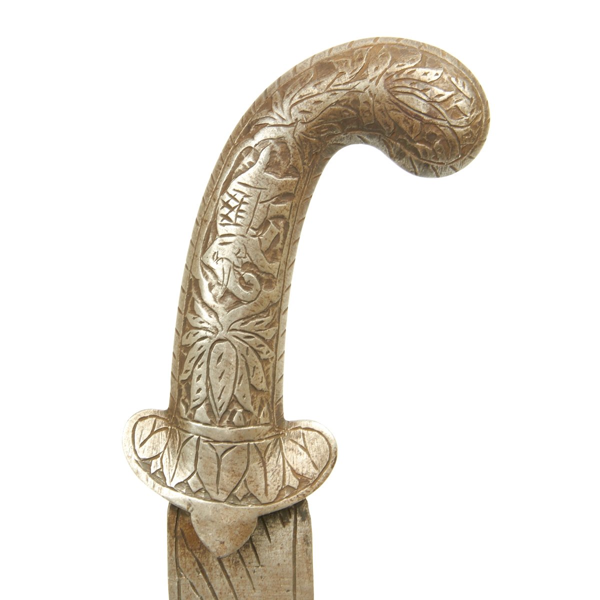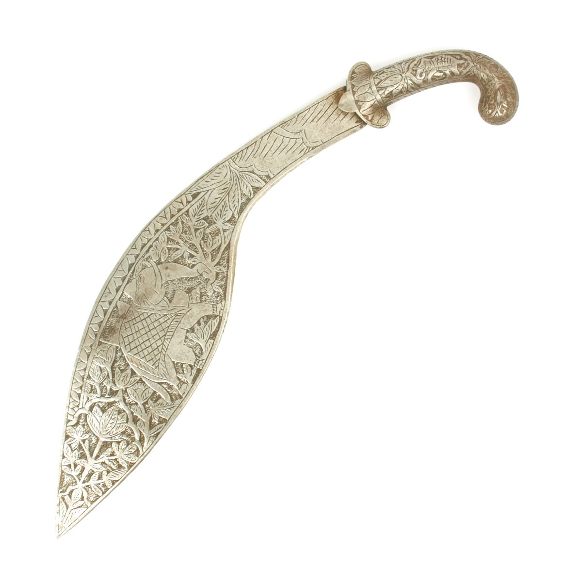 Original Item: One of a Kind. The Gurkha Kukri is possibly the most recognizable and famous fighting knife ever developed. Indigenous to the mountain Kingdom of Nepal, home of the Gurkhas who were "absorbed" into the British sphere of influence with the Treaty of Seguli in 1816. These ferocious fighters were infamous for their valor and for using the kukri an amazing "Tool of Death". It is a forward leaning leaf shaped blade, which provided the user with leveraged striking power. The kukri was became an everyday tool as much as it was a deadly weapon. Introduced long before the British arrived in the early 19th century, the Kukri became standard equipment for Gurkha Regiments serving in the British Army. Ironically the earliest Kukris are the largest, which seems improbable as improvements in nutrition and health care has resulted in mankind in general being much larger today than in 1800, yet with Kukris it is the exact reverse.