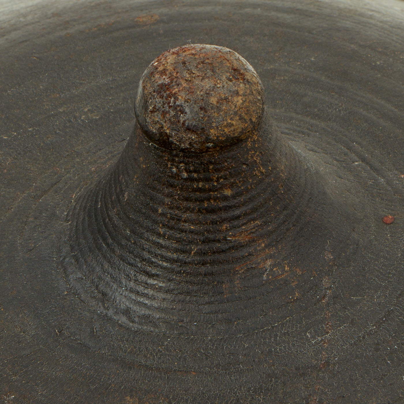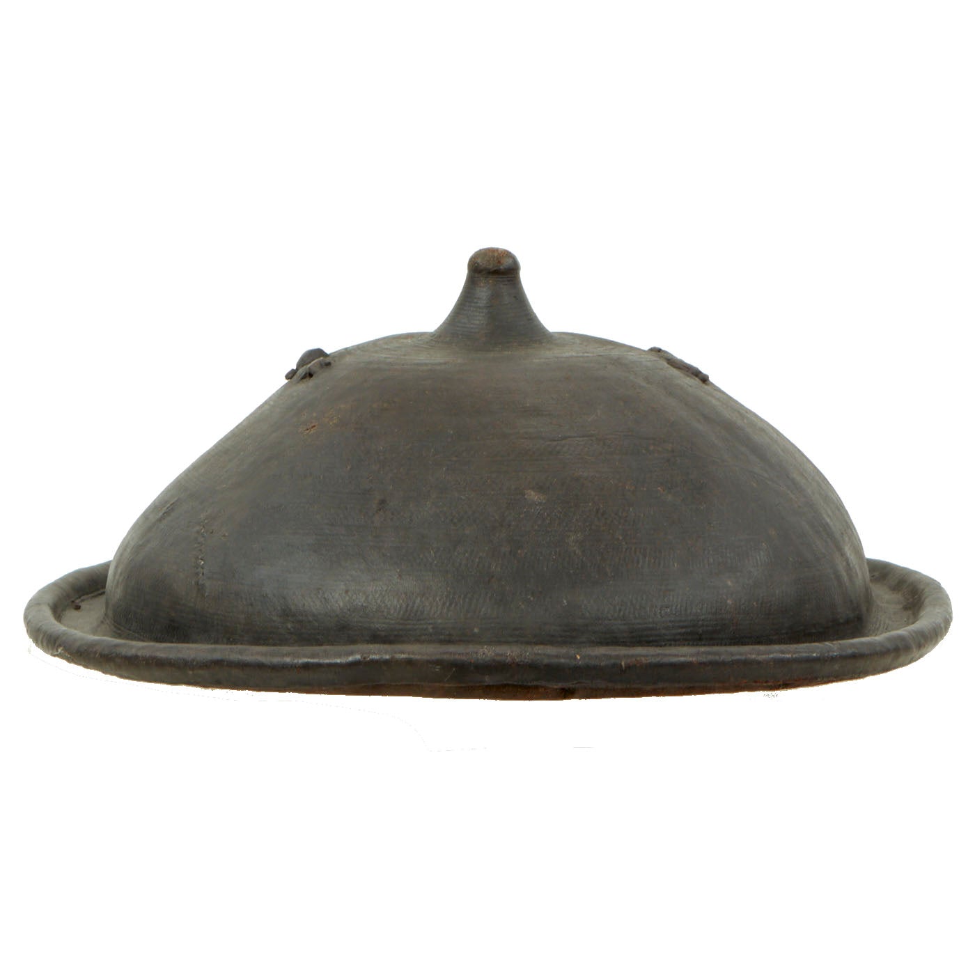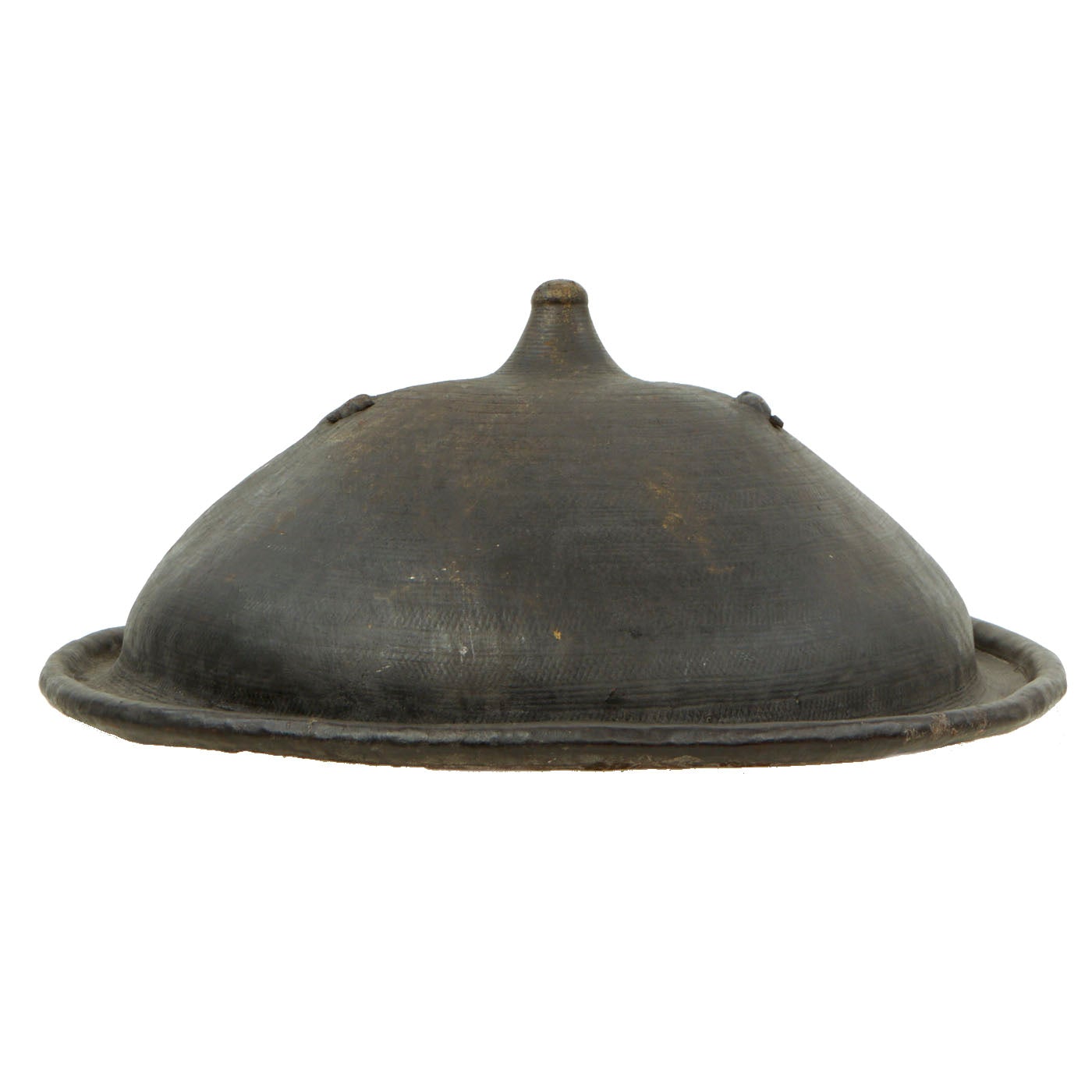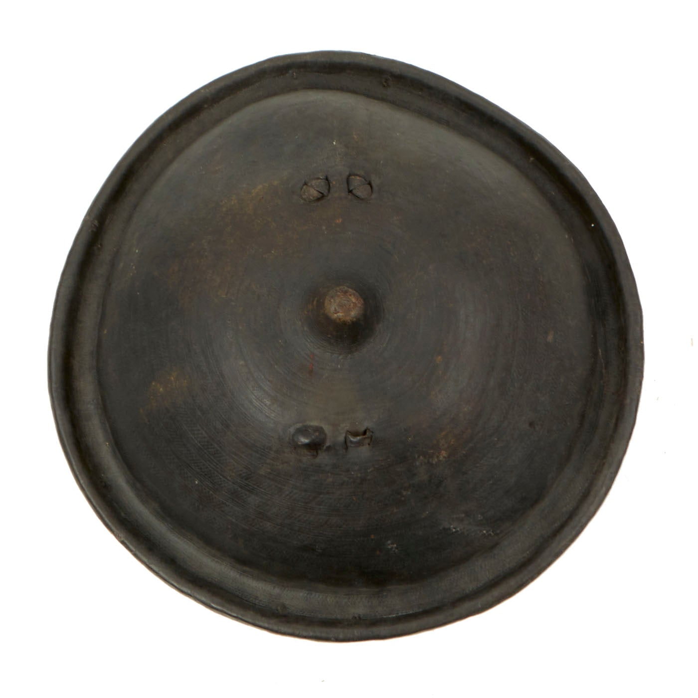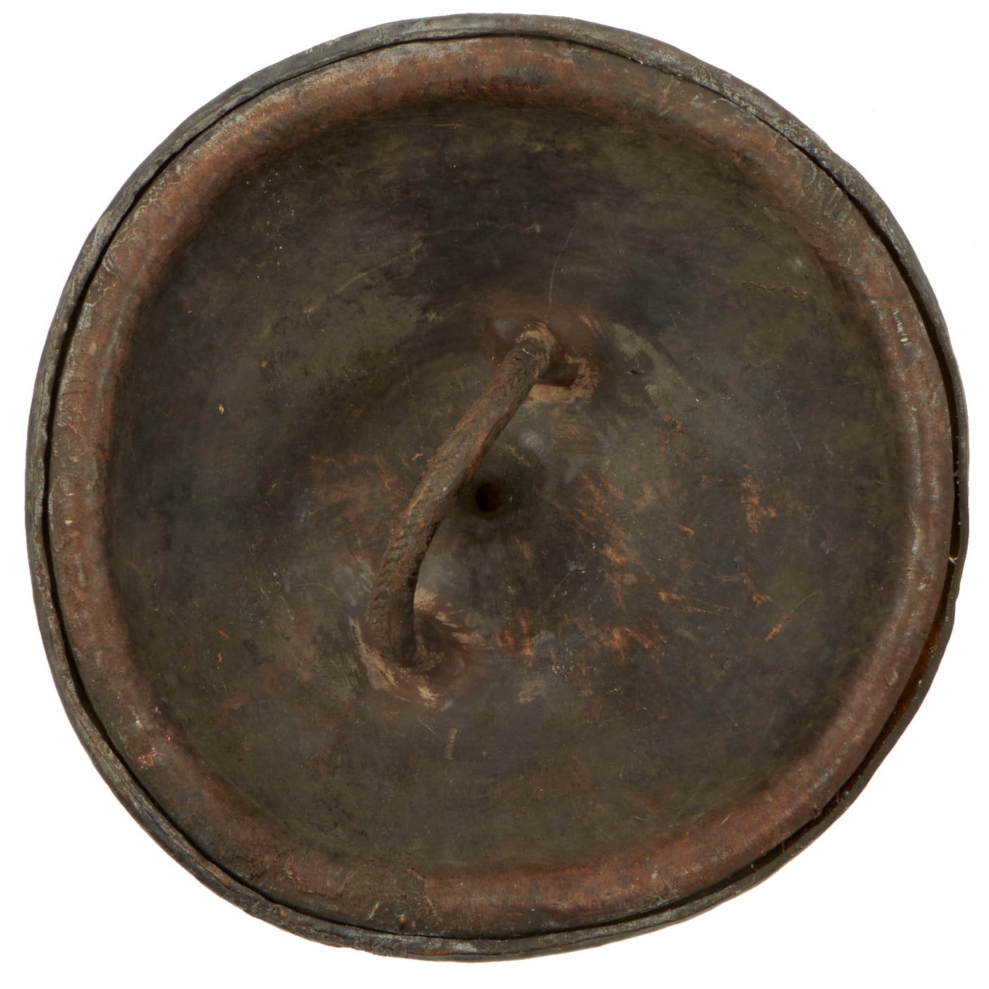 Here we have a particularly nice Dervish 22" circular Rhinoceros shield, which is about 9 inches deep at the center. The single rigid arched handle centrally placed on the reverse is substantial, made for combat. All in all a very impressive shield which the radical Dervishes believed would protect them from the British Martini Henry .577/.450 lead bullets in 1885 and the .303 bullets in 1898. Almost certainly a British soldier's bring-back trophy from the conflict.