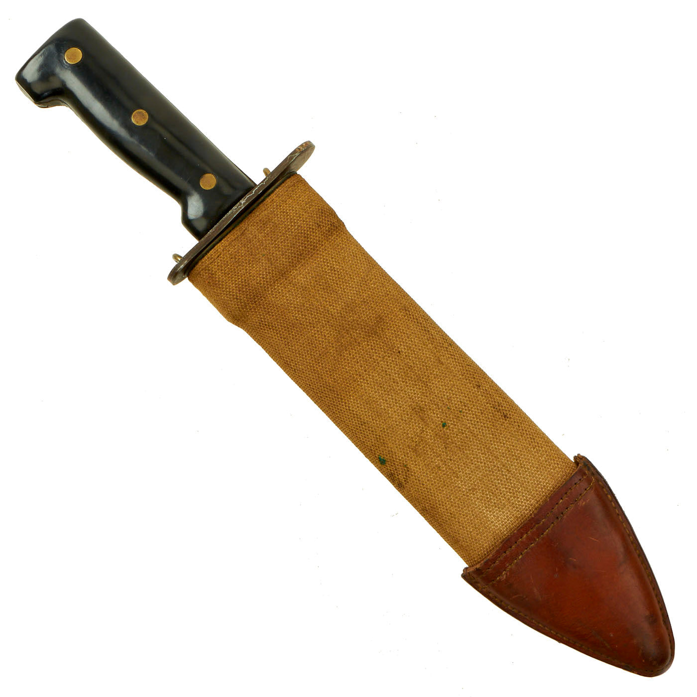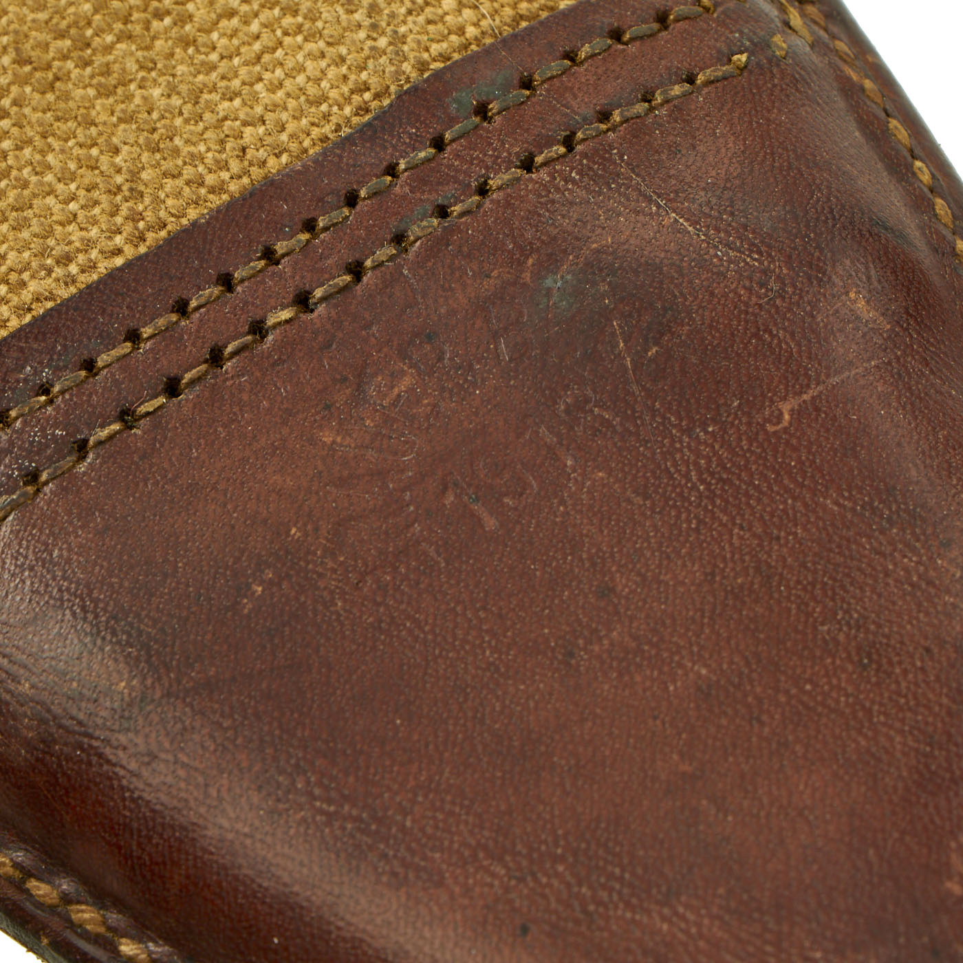 The leather tip of the canvas scabbard sleeve is faintly marked: