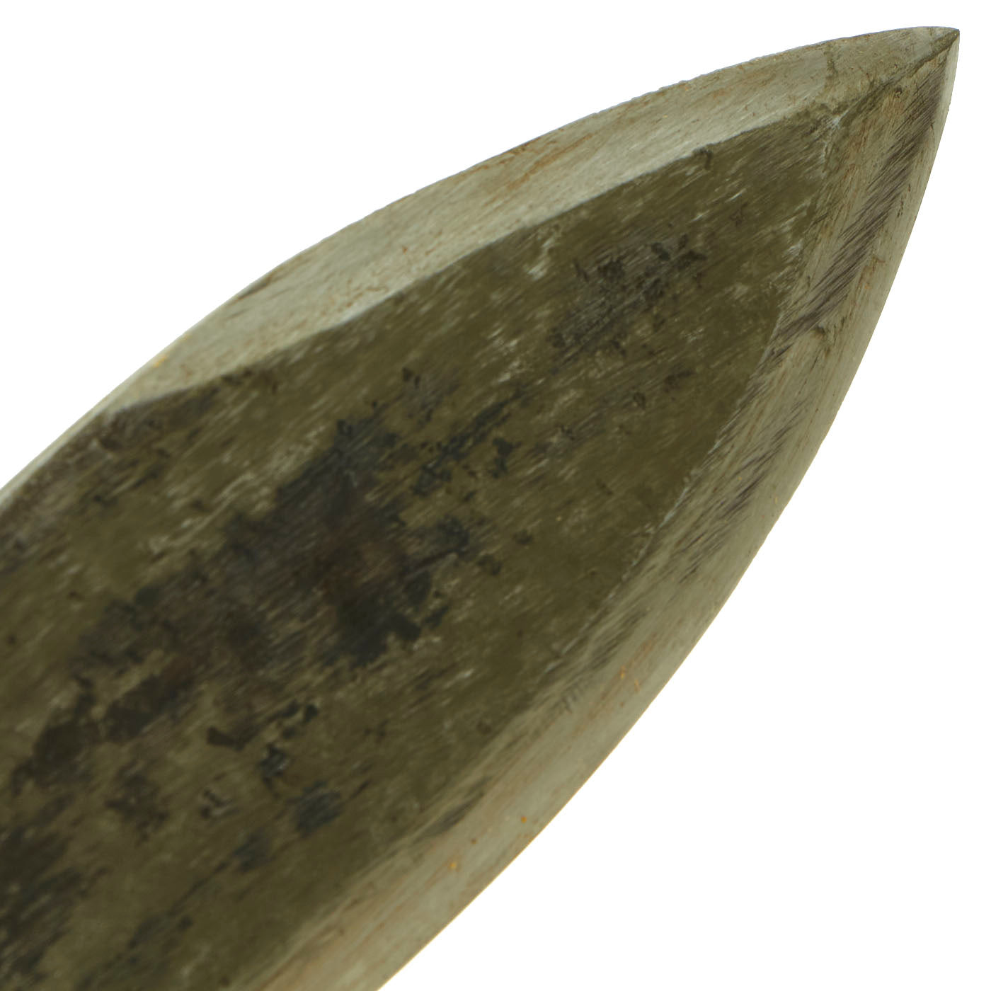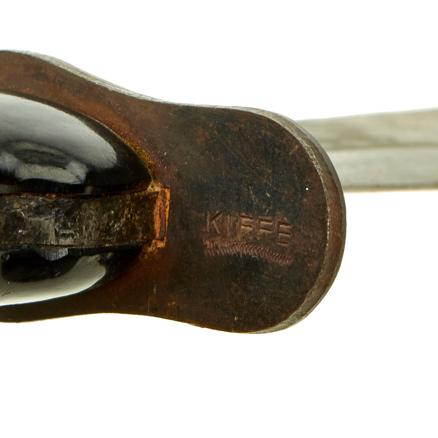 The bolo itself is in wonderful condition and does not appear to have seen much use, if any service use at all. The blade retains trace amounts of the original blade finish but it is mostly worn with past pitting present. The crossguard has minor surface oxidation with KIFFE stamped on the underside of the front portion of the crossguard.