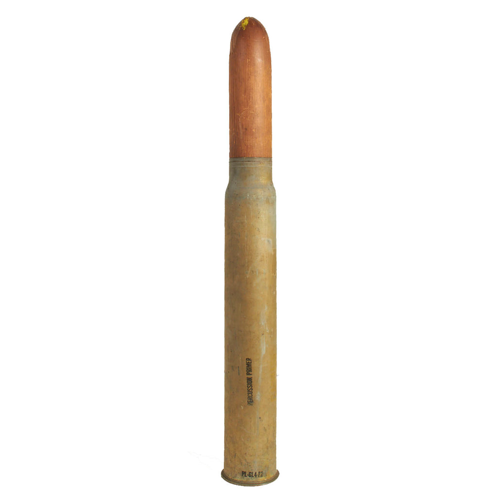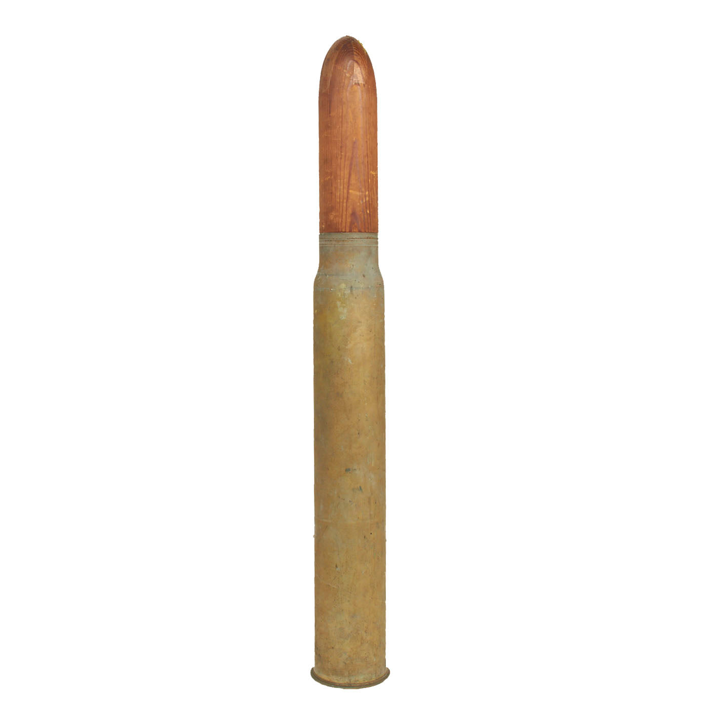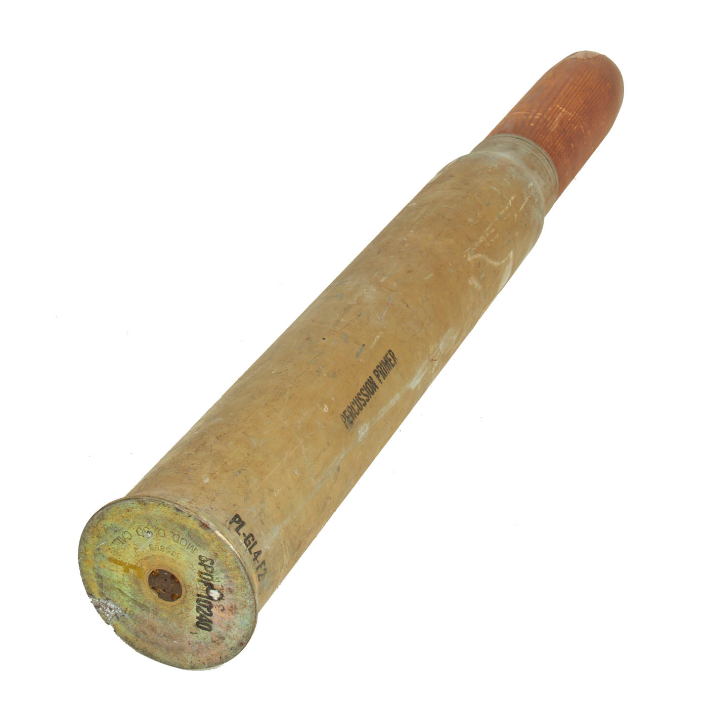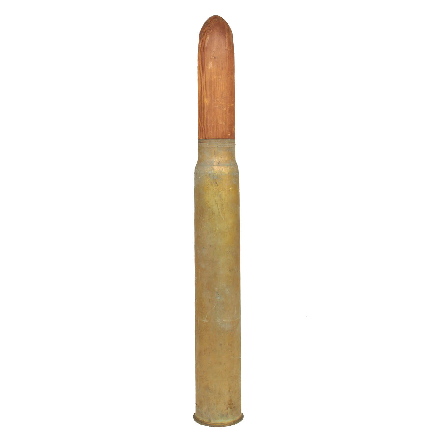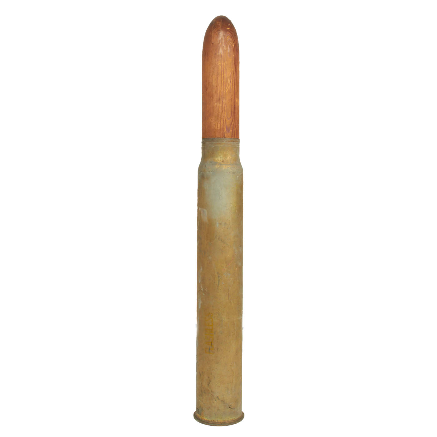 Original Item: Only One Available. This drill round was designed for the U.S. Navy 3 in. / 50 calibers Dual Purpose Rifled QF Naval gun. This was never a “real” round and was made only for practice purposes. It is completely inert, and cannot be converted to any type of explosive device. The shell weighs 20.2 lbs (9.2kg) and measures 32 inches in overall length. The bottom is dated 1960.