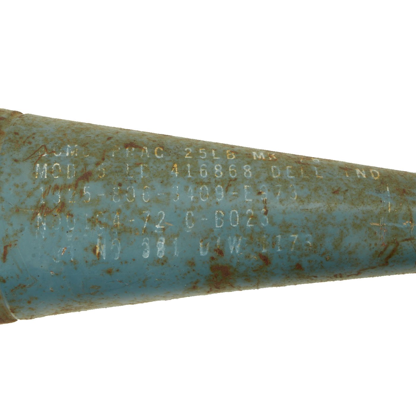 This example is still has original blue paint, signifying that it is an inert trainer, and still has much of the original stenciled markings present. There is some wear and oxidation due to paint loss, but it still looks great. Measures approximately 25 inches long and 4 inches diameter.