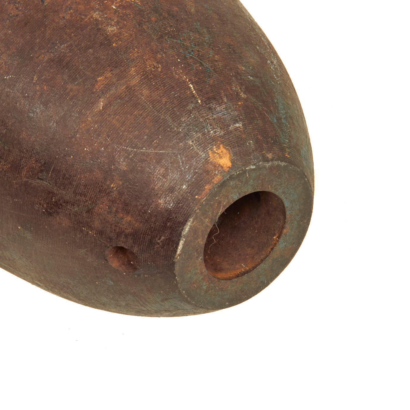 This lovely Mod 0 retains little of the original blue practice paint and no longer has any of the white arsenal stampings present. Unfortunately the suspension lug is missing and the tail fin assembly is dented and misshapen, a tell tale sign of long service life and use.
