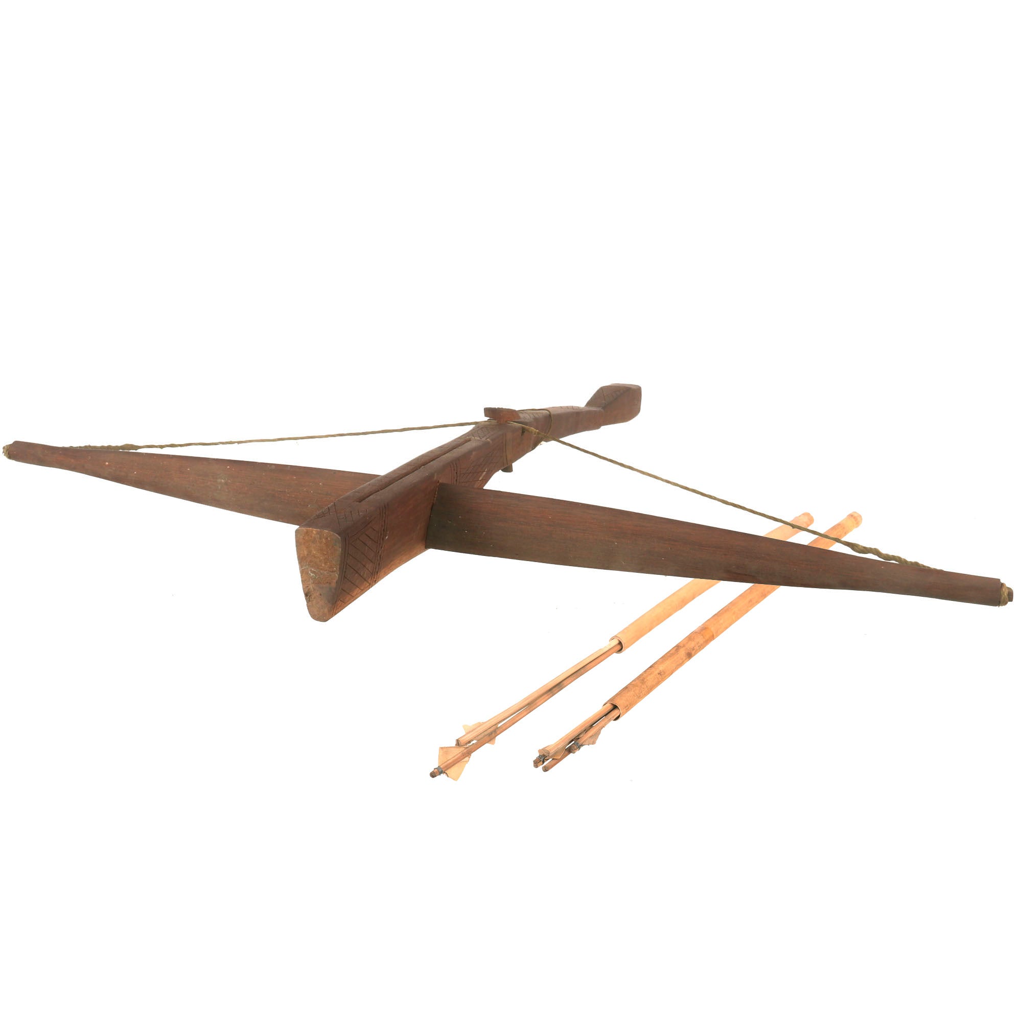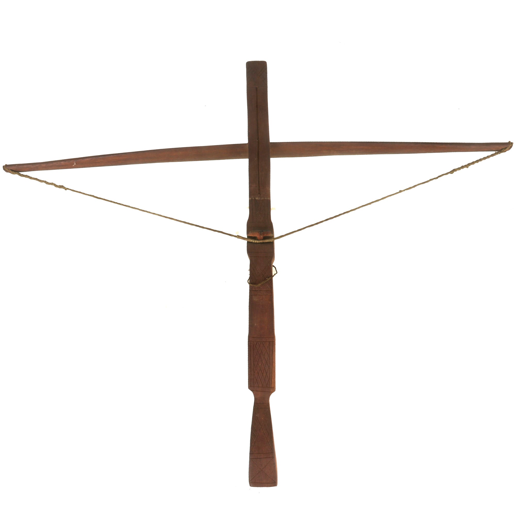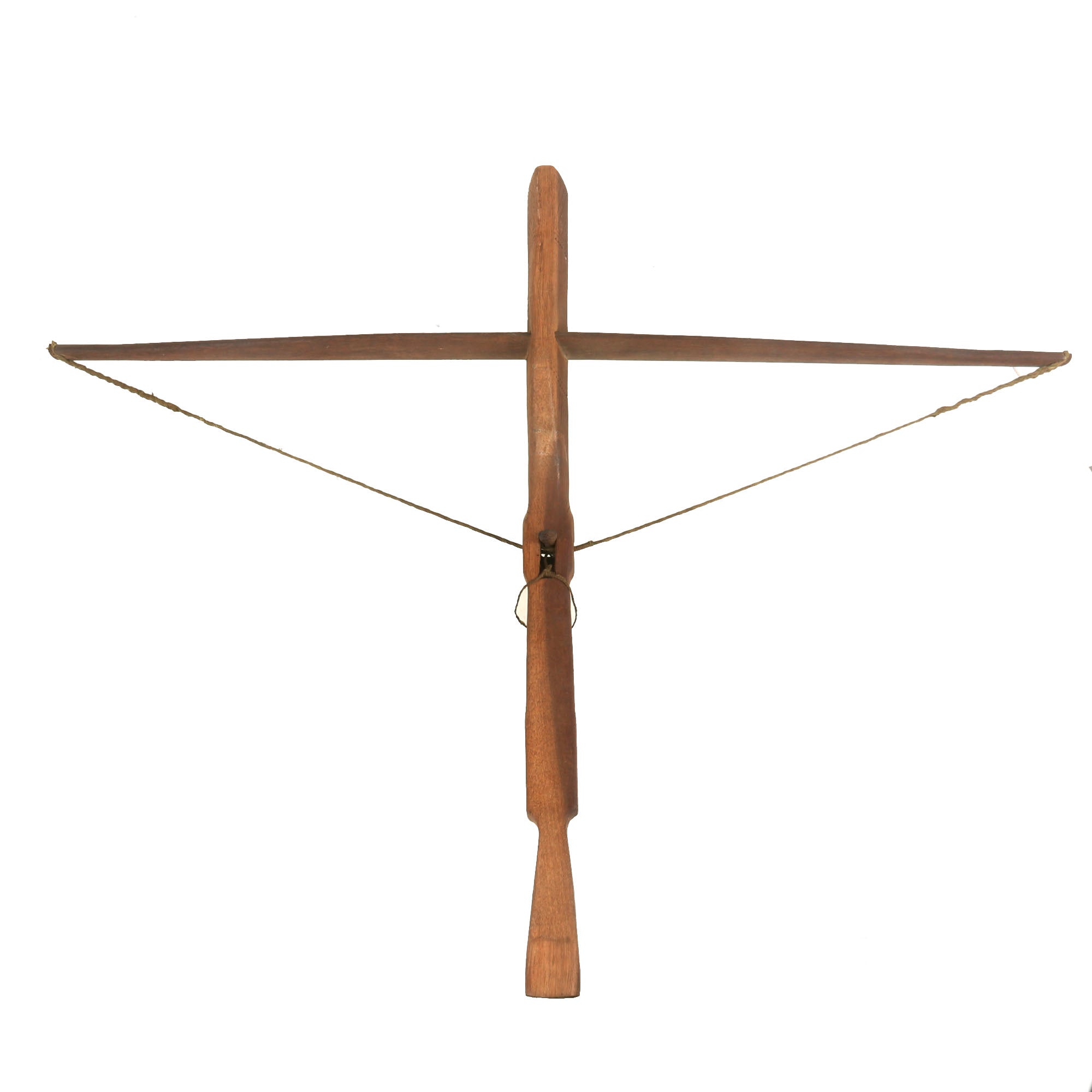 The body of the crossbow is well-carved and displays very nicely. A nice crossbow with the original quivers.
