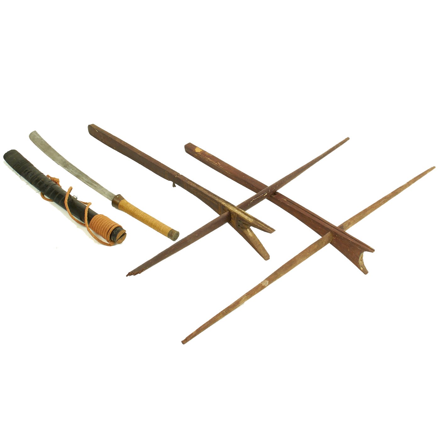 Original Items: Only One Set Available. This is a very nice genuine USGI bring Back set from the Vietnam War. These hardwood crossbows were the weapon of choice for the indigenous "Montagnard" People, however they also were able to acquire some short swords from other regions, such as the example that is a part of this set.
