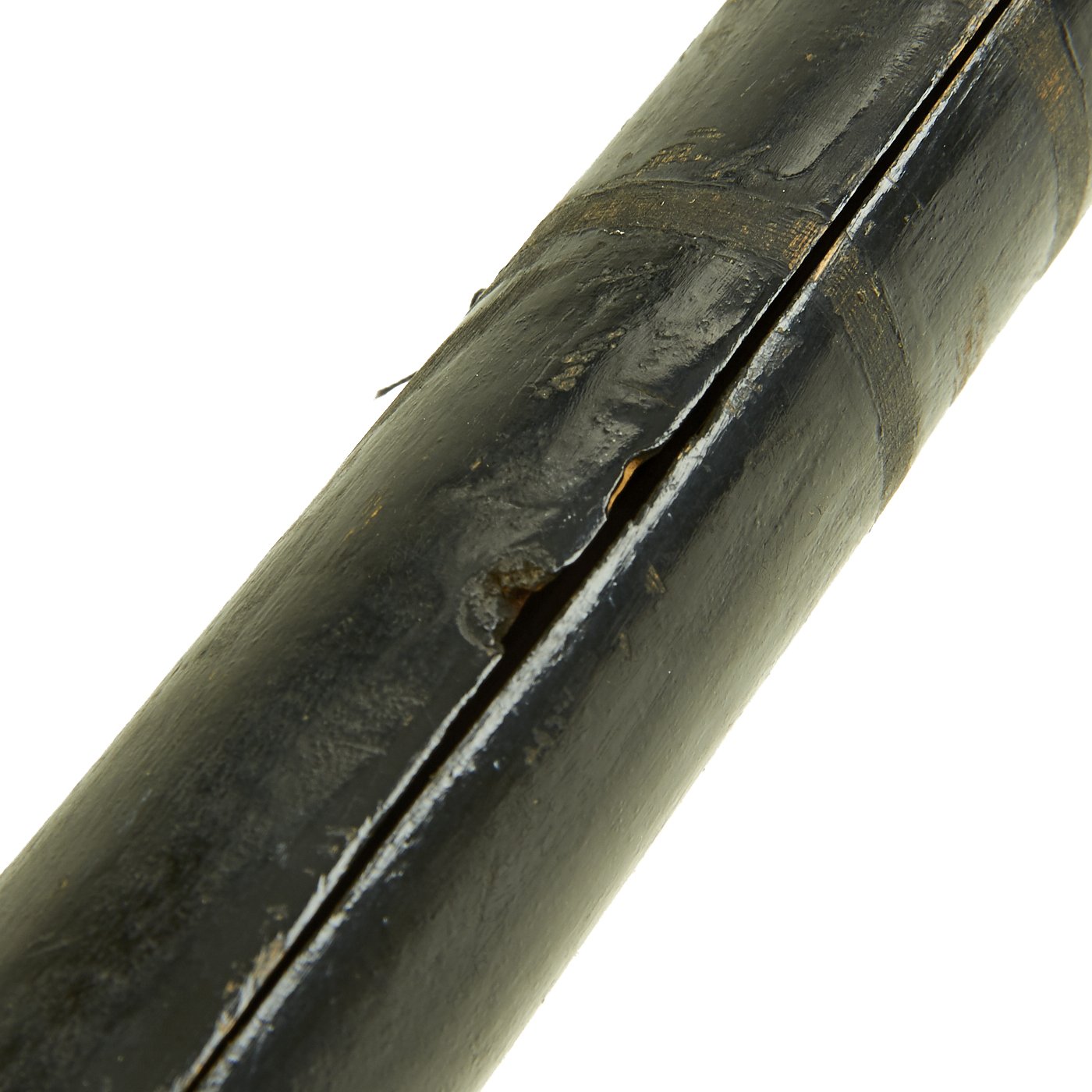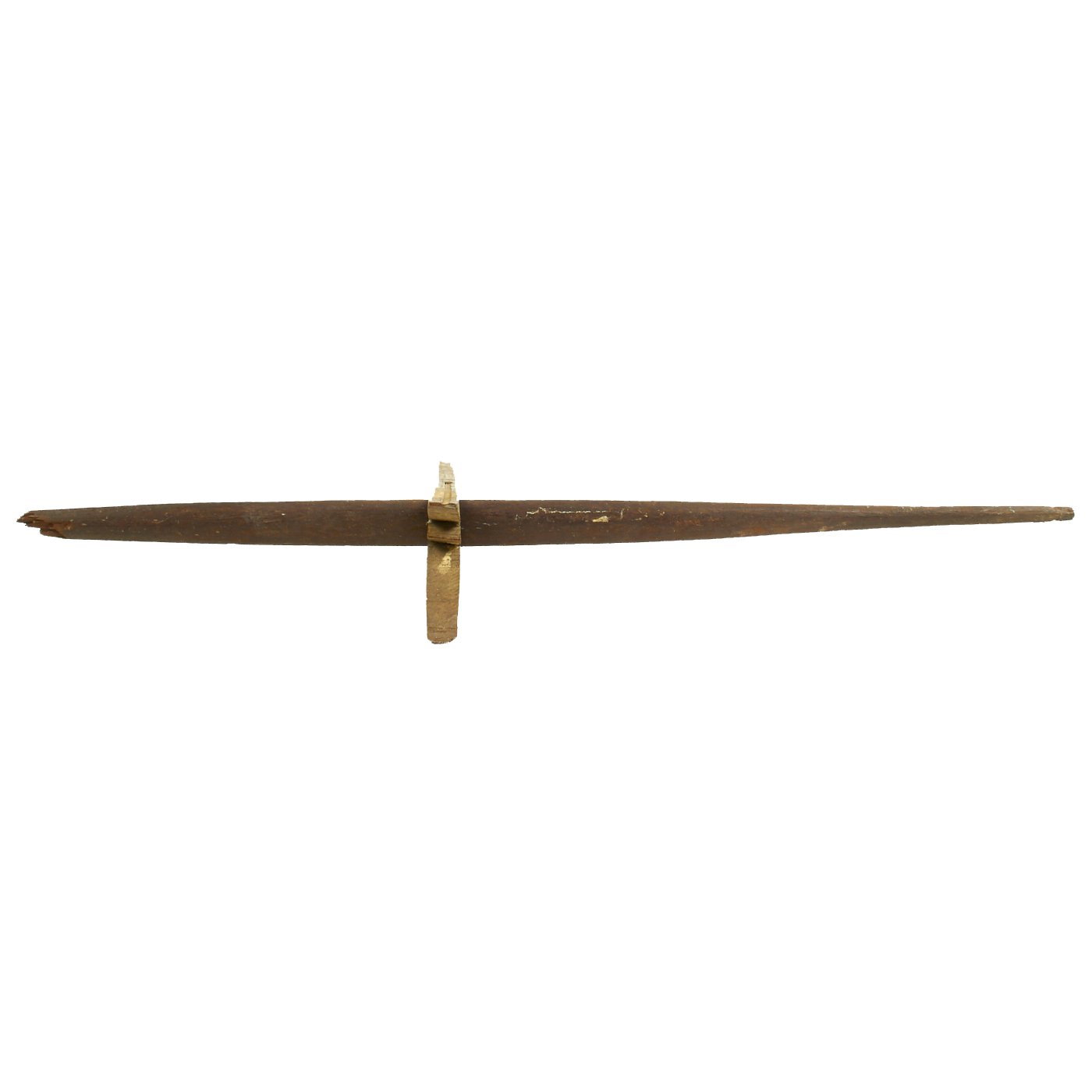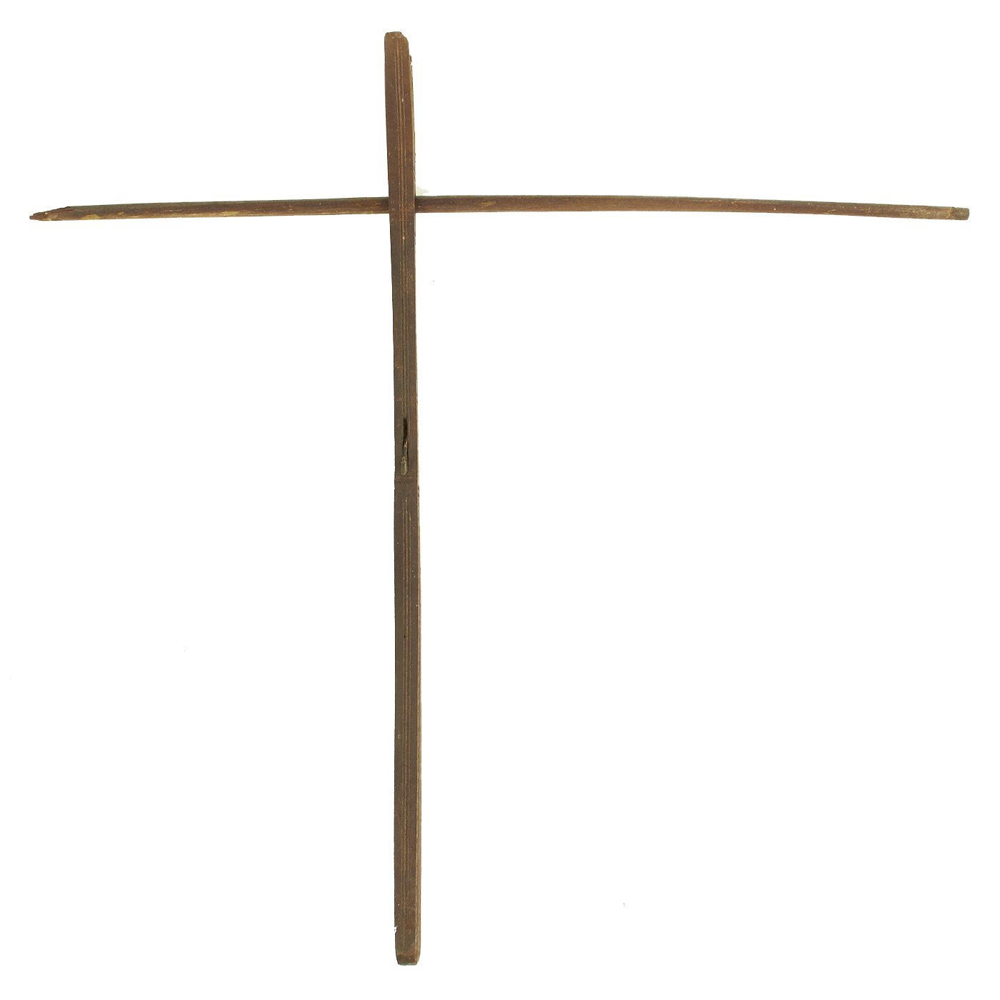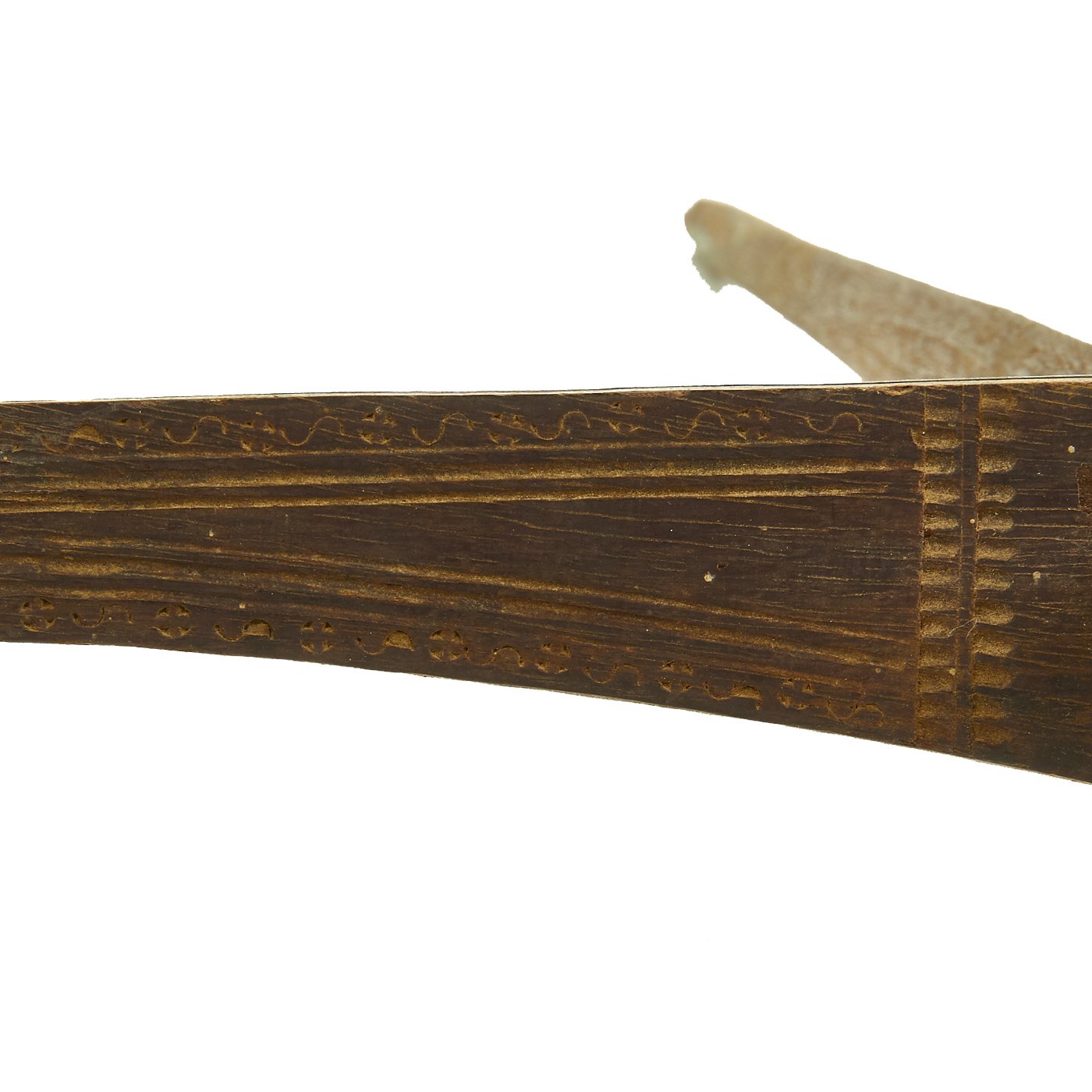 Both of the crossbows are incomplete, made up of just the lathe (cross piece) and stock, with one still having a partial trigger mechanism. One has a 36 1/2" lathe with a 28 1/2" stock, while the second, with the partial trigger, has a 33" lathe and 32" stock. The second is narrower slightly, but it is also missing one end of the lathe, so it was most likely wider at some point. Bother are missing the bowstring, and are not functional at present, and are intended entirely for display.