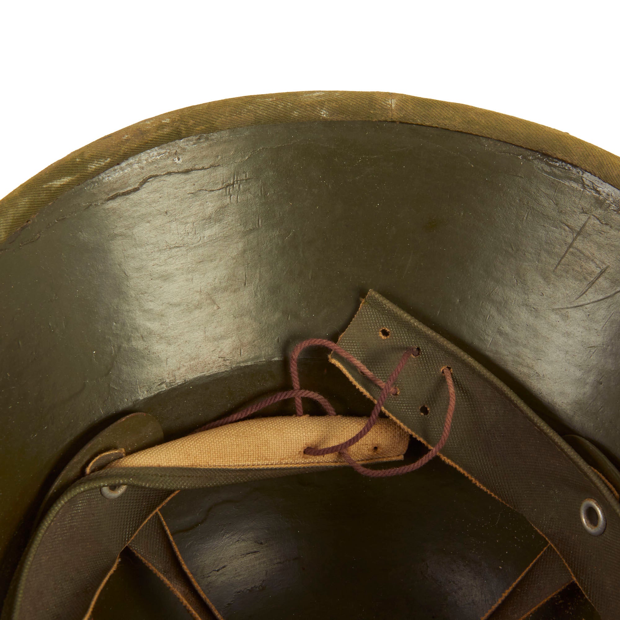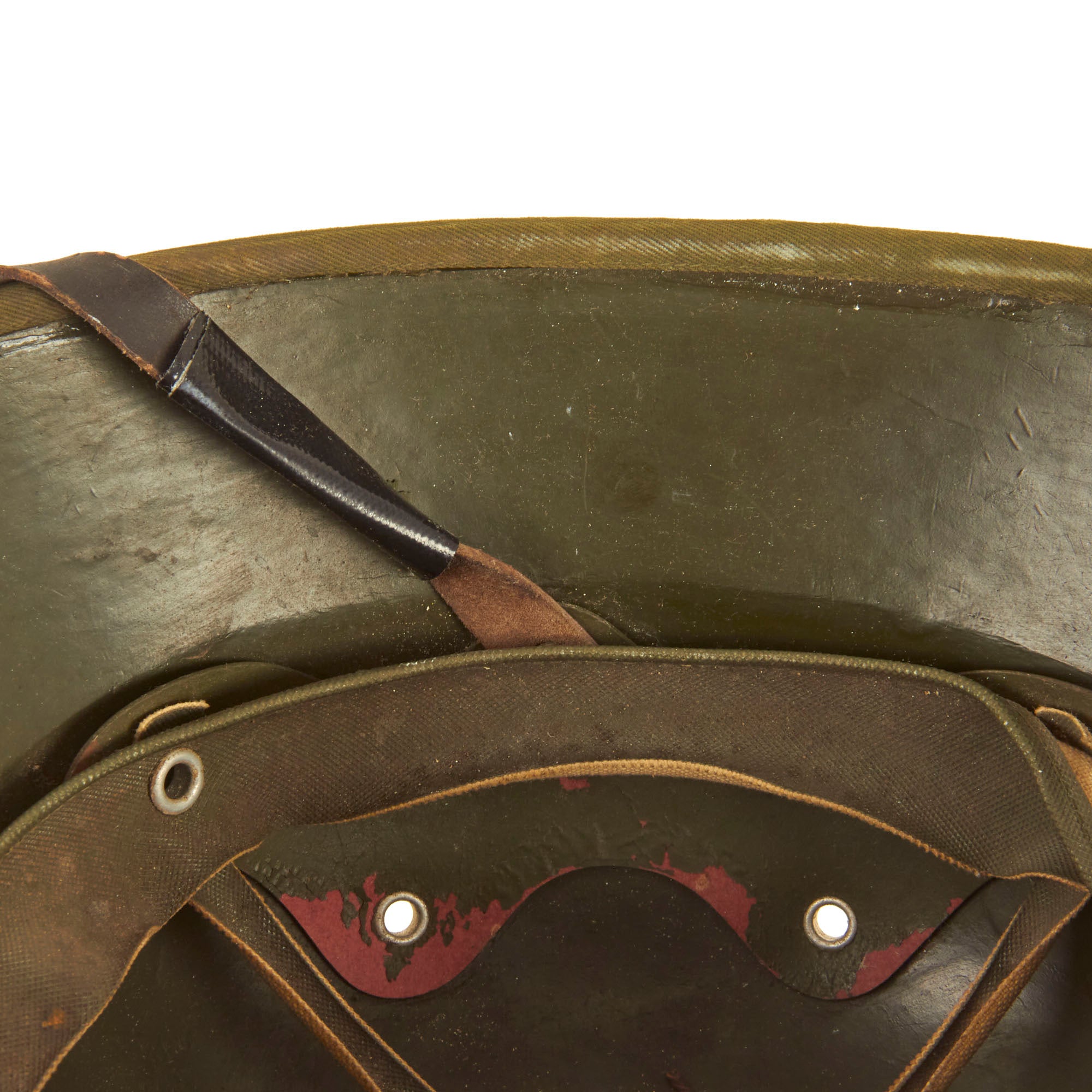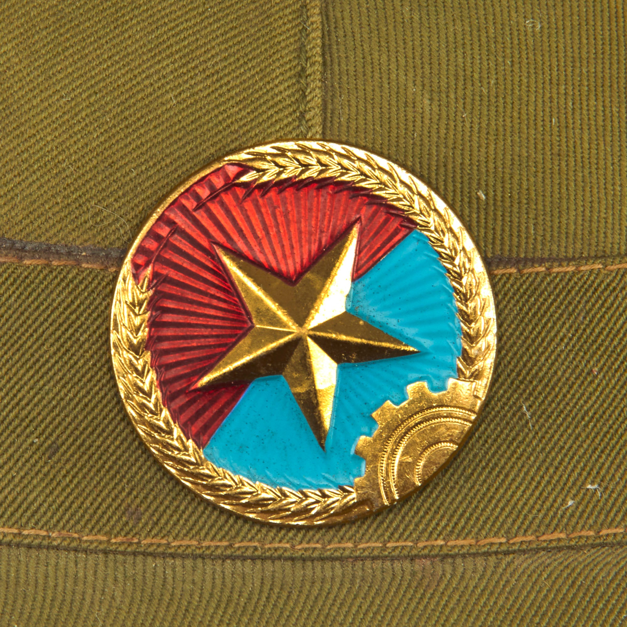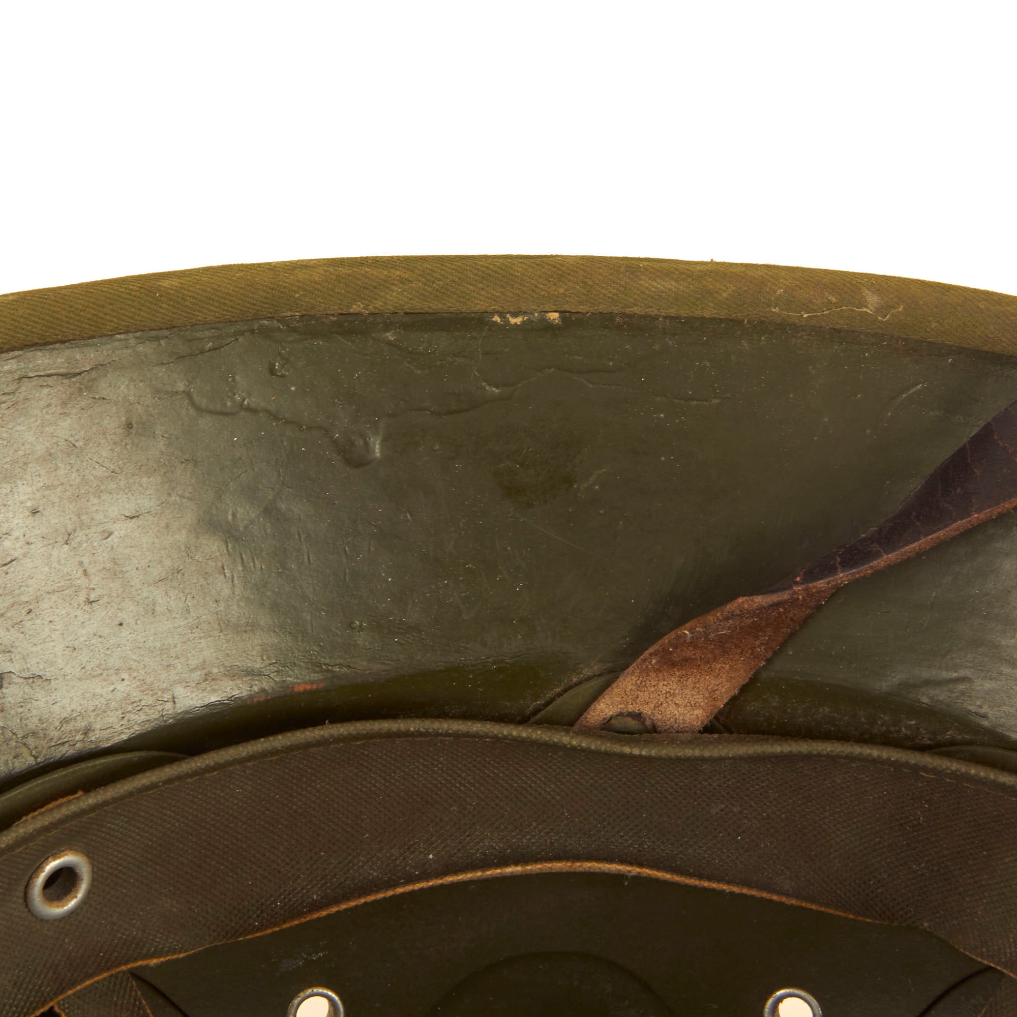 Original Item: Only One Available. This is a great example of a correct Wartime configuration Vietnam War North Vietnamese Army (NVA) Issue Sun (or Pith) Helmet. These re gotten increasingly hard to find over the last few years, as the market is mostly flooded with post-1975 versions! This helmet has all the correct features of a Mid-Late 1960’s issue helmet; “High Dome” profile, leather chinstrap, and Green Painted Pink Fiber Suspension. The badge is a Viet Cong, or National Liberation Front (NLF) Badge made of cast aluminum with a screw back, which dates to the early 1970s. Vietnam War Viet Cong National Liberation Front (NLF) pith helmet with a NLF metal helmet badge offered in very good complete condition.