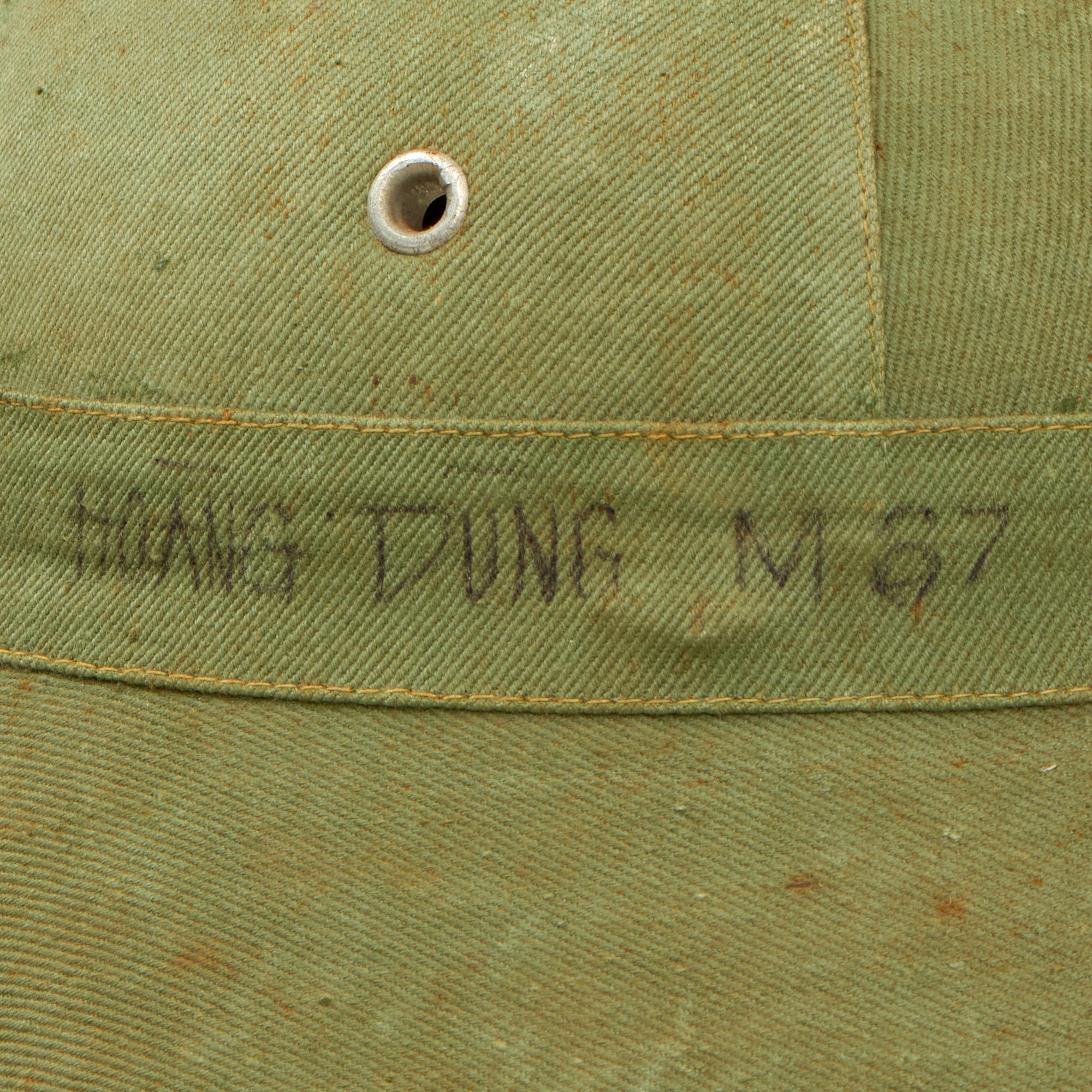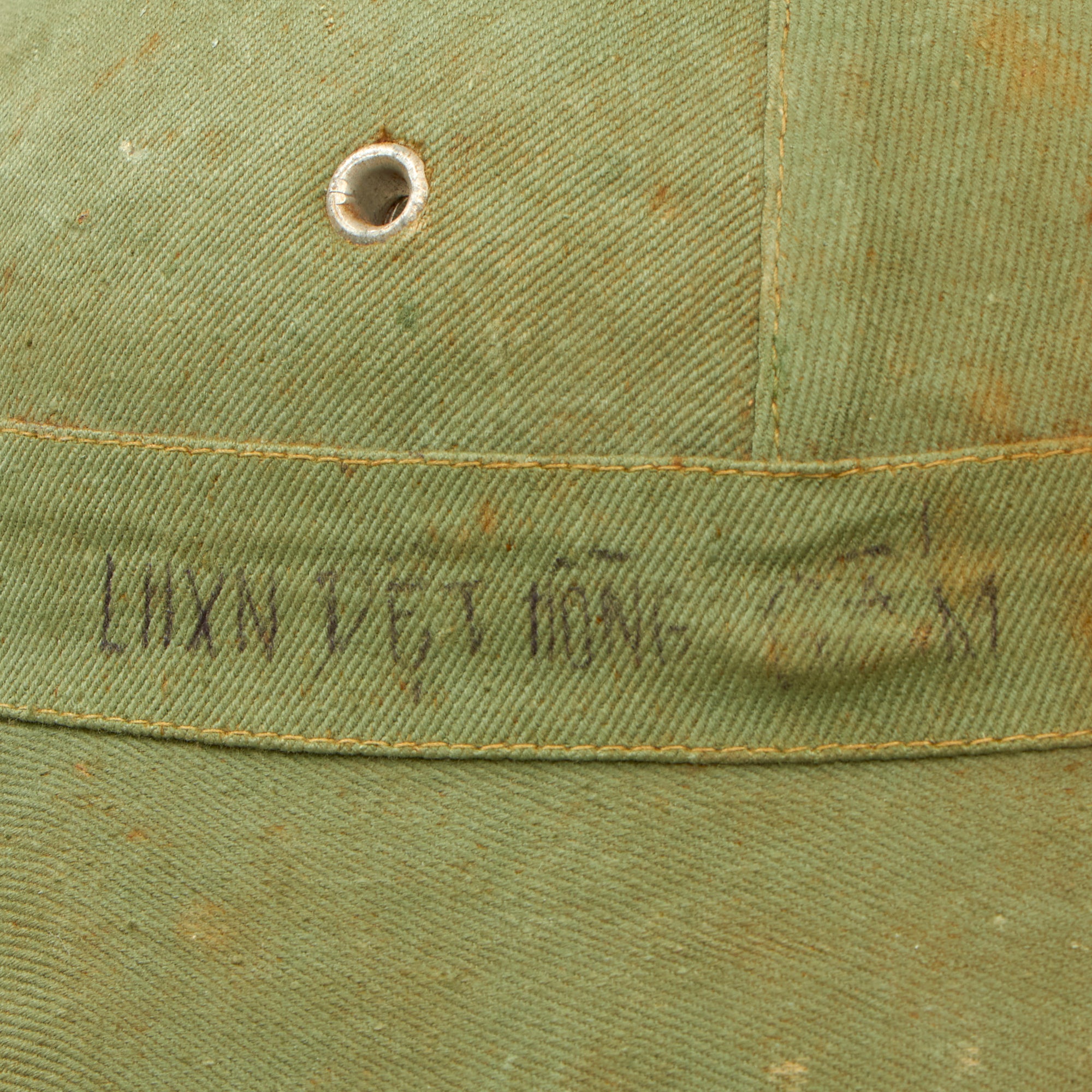This example is marked on the band (likely by the GI who captured it) with different locations including HOANG DUNG M67, THANH BA, and LHXN DET HONG GAM. A great research opportunity! There’s also some Vietnamese written on the liner band.