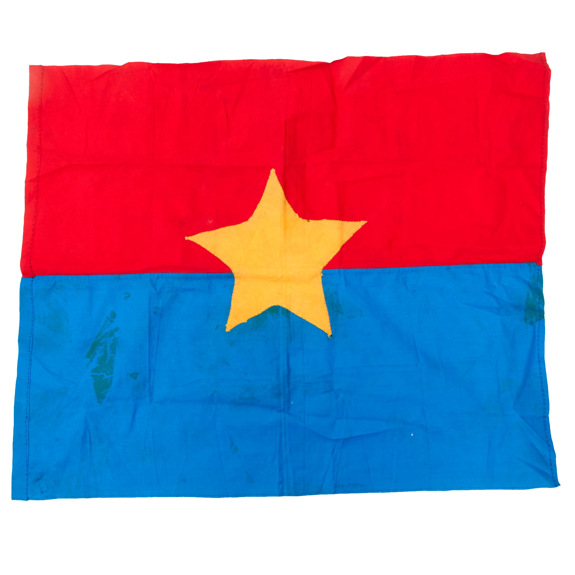 Original Items: Only One Available.Genuine USGI bring Back from the Vietnam War. This cotton flag measures 27 x 33” and is a three-piece construction. The flag has a pocket on the hoist edge for the pole . A very nicely constructed flag with period stitching, this is not one of the cheap tourist or reproduction type flags that flood the market today. The flag comes with a note of provenance stating that it was captured in Vietnam and donated to Breakthrough, likely a museum or other organization that would’ve had use for the flag.