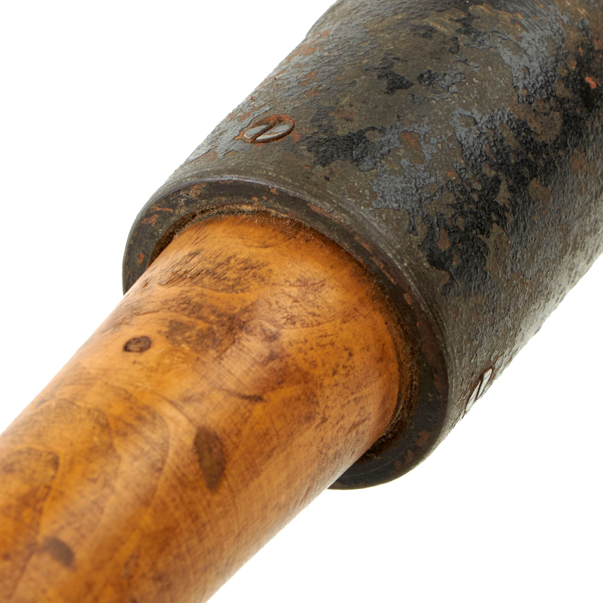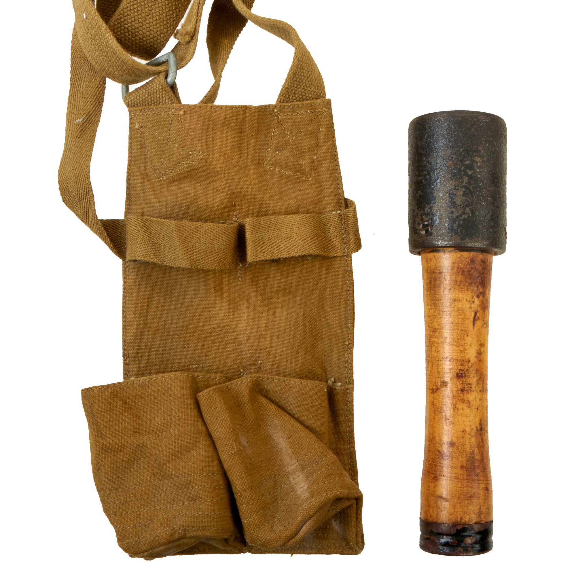 Original Item: Only One Available. This is a lovely example of an Inert Chinese Type 67 Stick Grenade, as used by the NVA and VC during the Vietnam War. The grenade itself is in wonderful condition and even retains the bottom threaded cap which is often lost or degraded from time. Included with the inert grenade is a fantastic Two-Cell carrier pouch, perfect to complete a set if you already have a grenade!