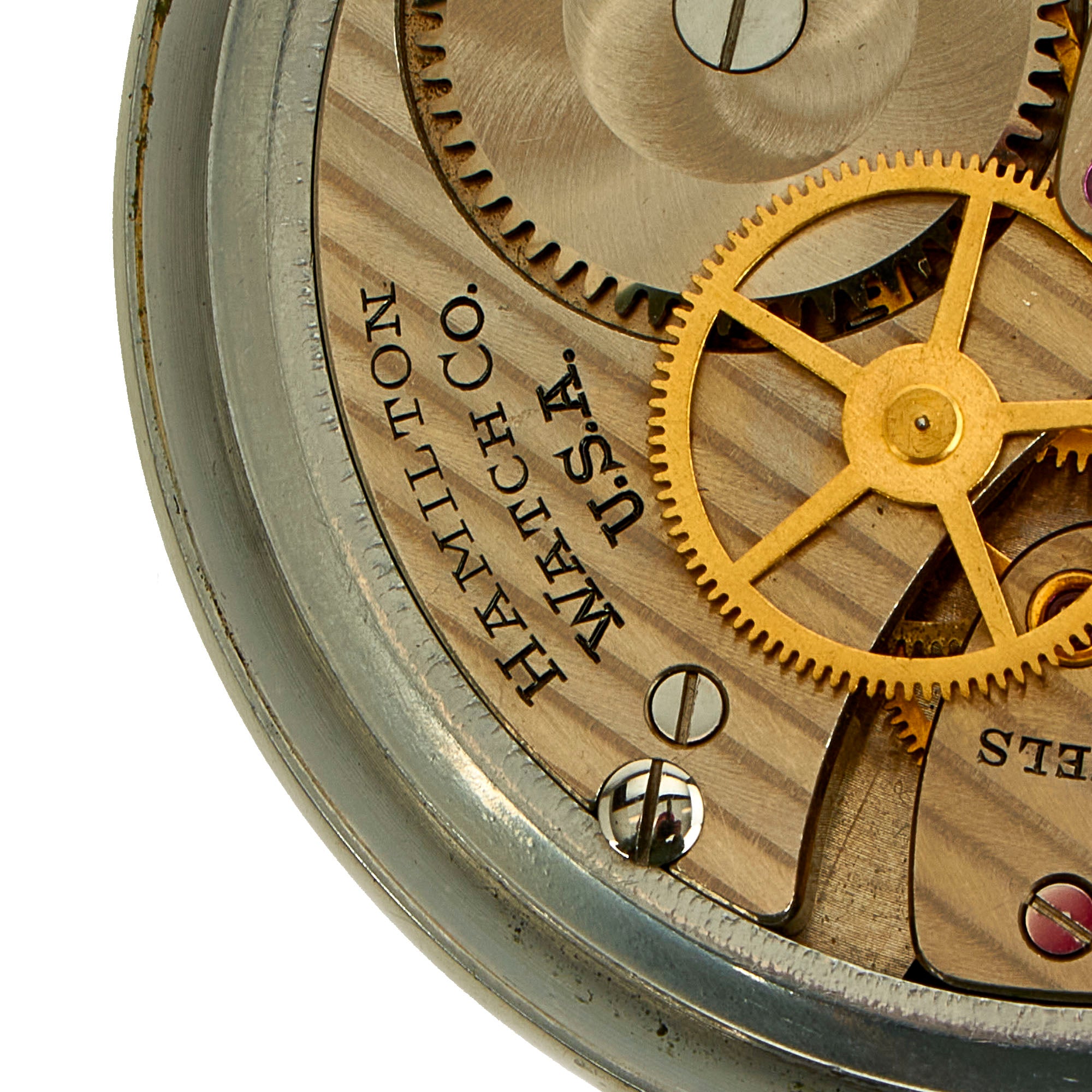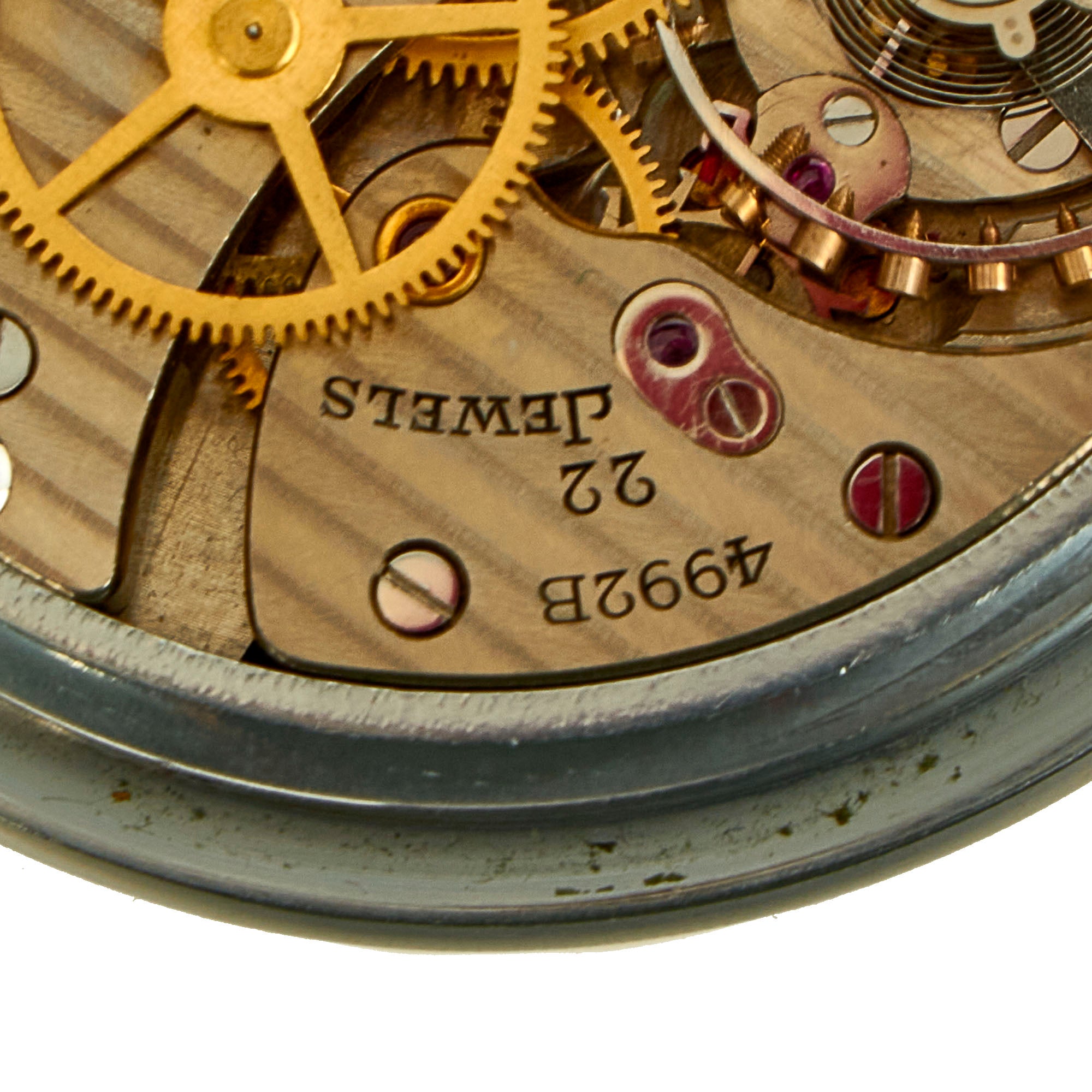 One of the war-related watches was a pocket watch with a central sweep second hand. The movement was based on the 21 jewel, 16 size movement. However, an extra jewel was added to support the second hand pinion, so the movement got 22 jewels.