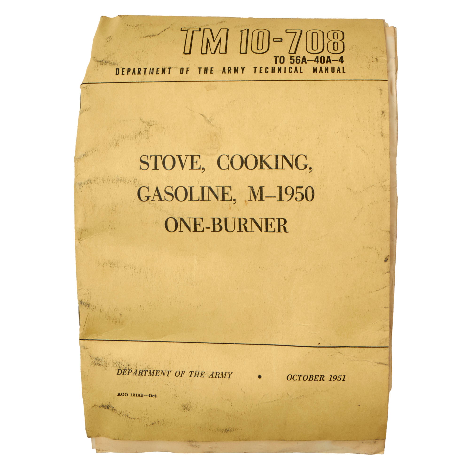 The metal fittings all function as intended and extend to cook as needed. The original wrench is included as well. The stove comes with its original canister and a manual for the stove, STOVE, COOKING, GASOLINE, M-1950 ONE-BURNER.