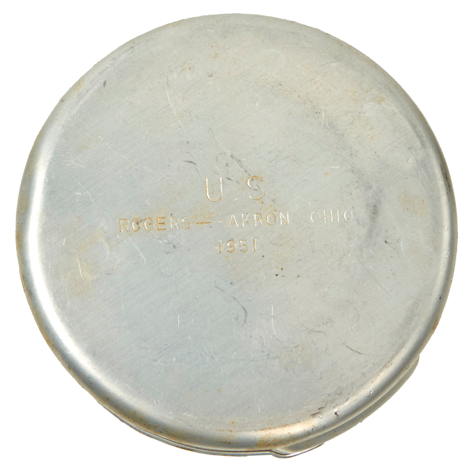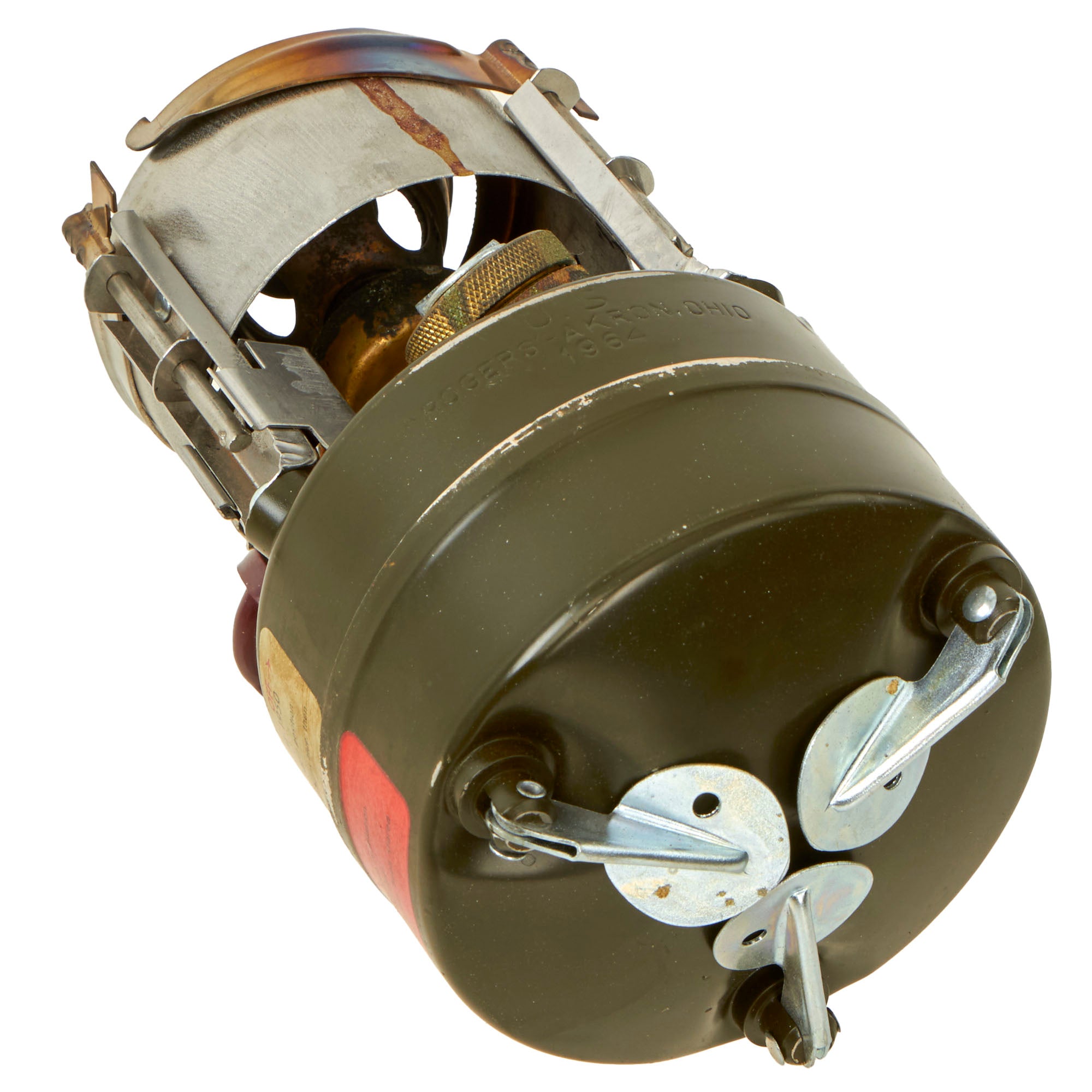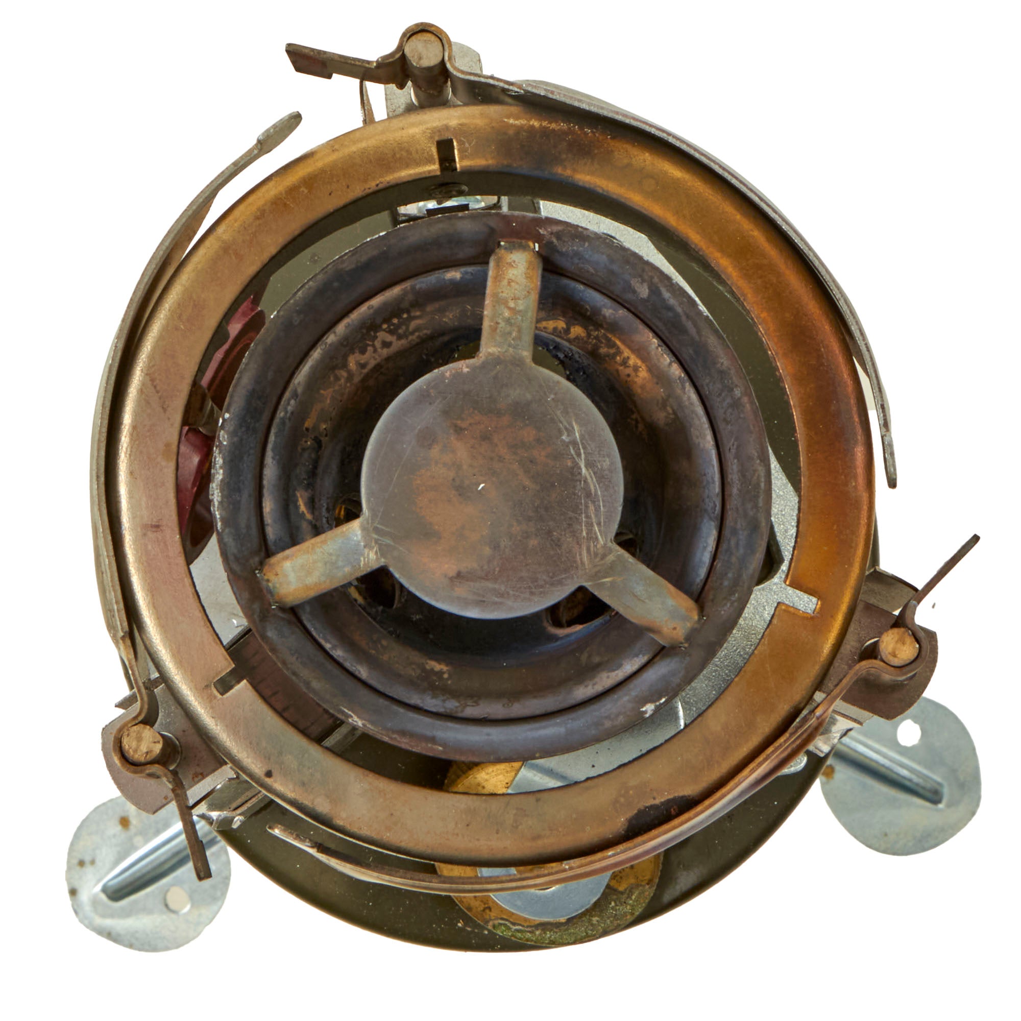 This example is in good condition with all of its paint still retained. The primary flaw is the gasoline compartment is sunk in a bit and rusted in one spot. It comes in the original rare Bayonet “F” canister, marked ROGERS - AKRON OHIO 1951. The stove has instruction labels and is marked on the side: