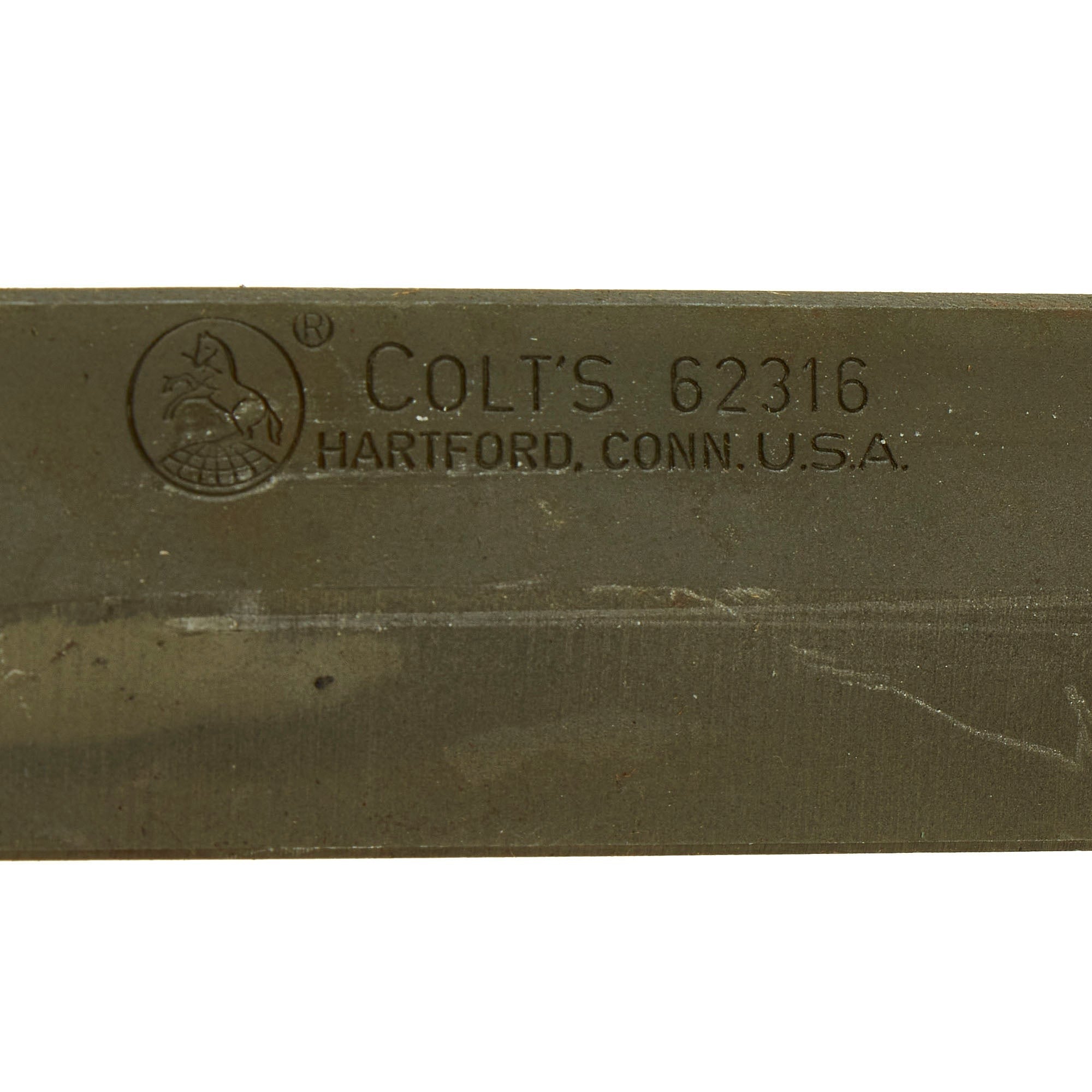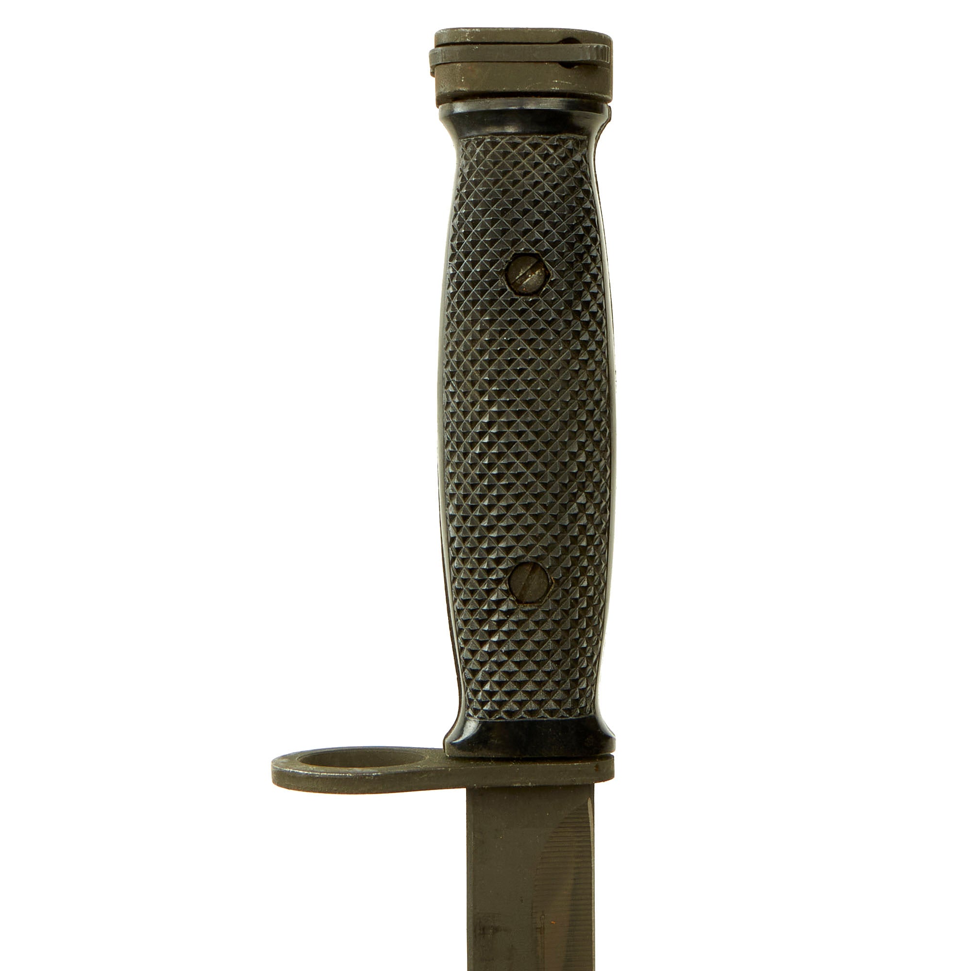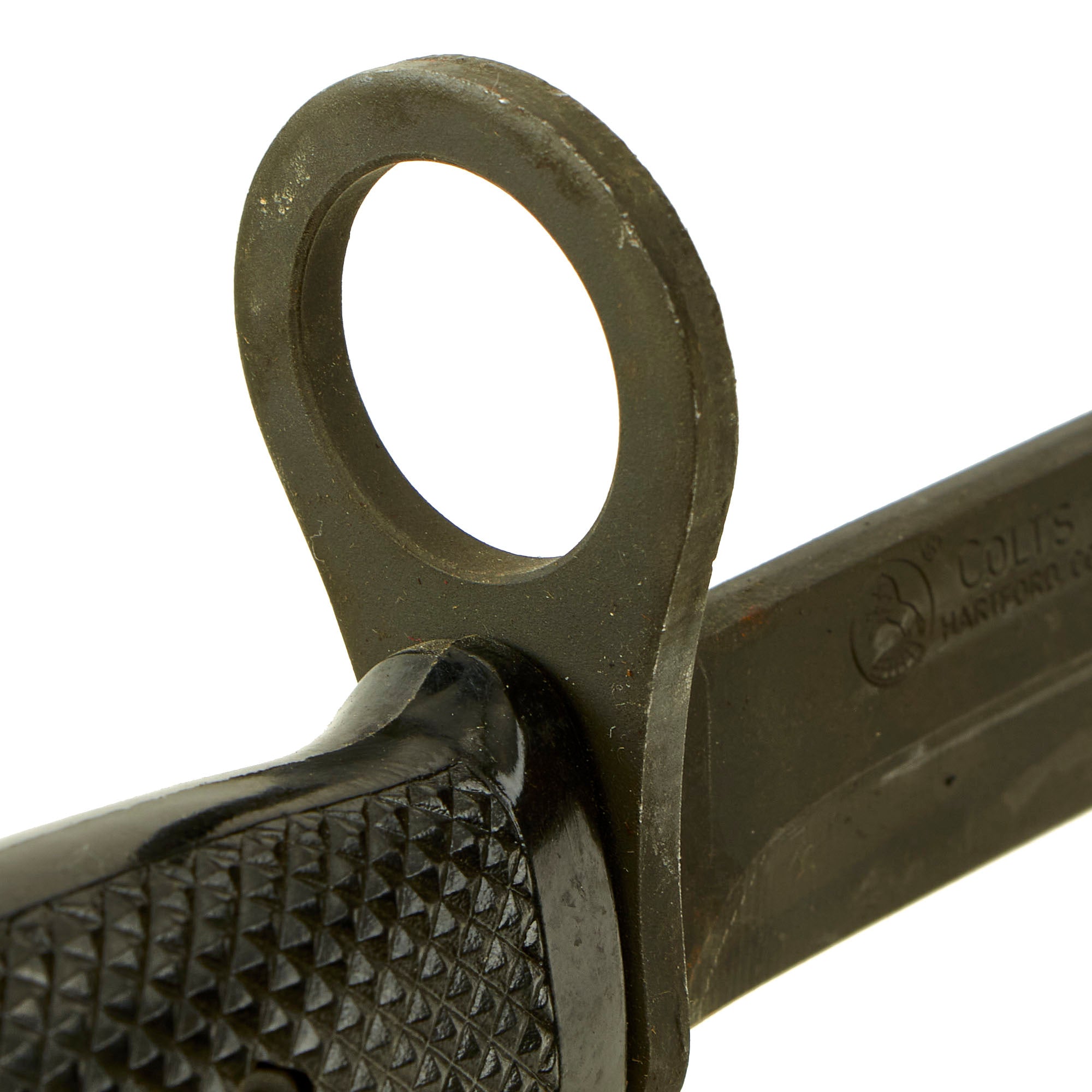 According to the author/researcher, the late M.H. Cole, a letter from Colt, dated February 2, 1979, indicated these M7 bayonets with the abbreviated crosspiece were the first M7 production lot produced ca. 1975/76 by Carl Eickhorn Waffenfabrik AG of Solingen, West Germany, under license from Colt. Carl Eickhorn's total 1970s production of Colt M7 bayonets was approximately 80,000, only a portion of which had the abbreviated crosspiece, making this a fairly scarce piece.