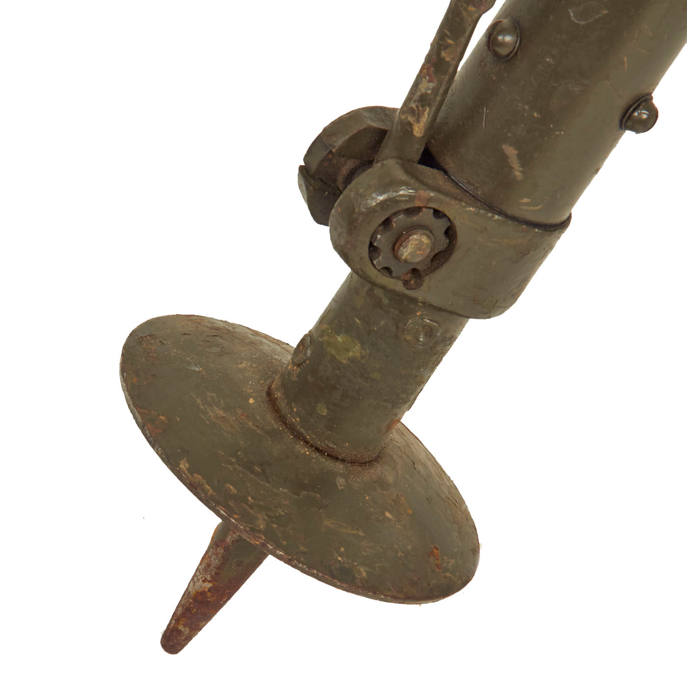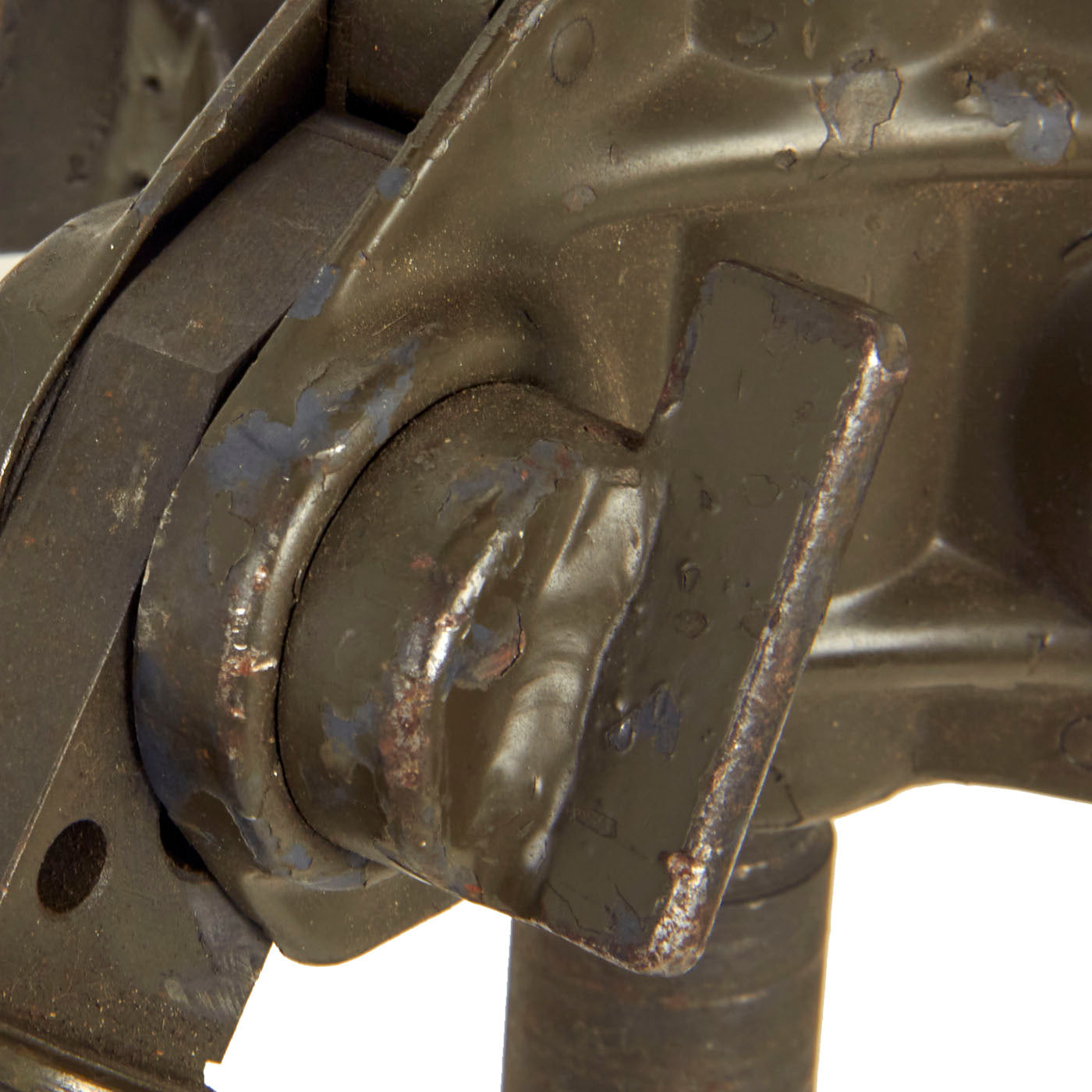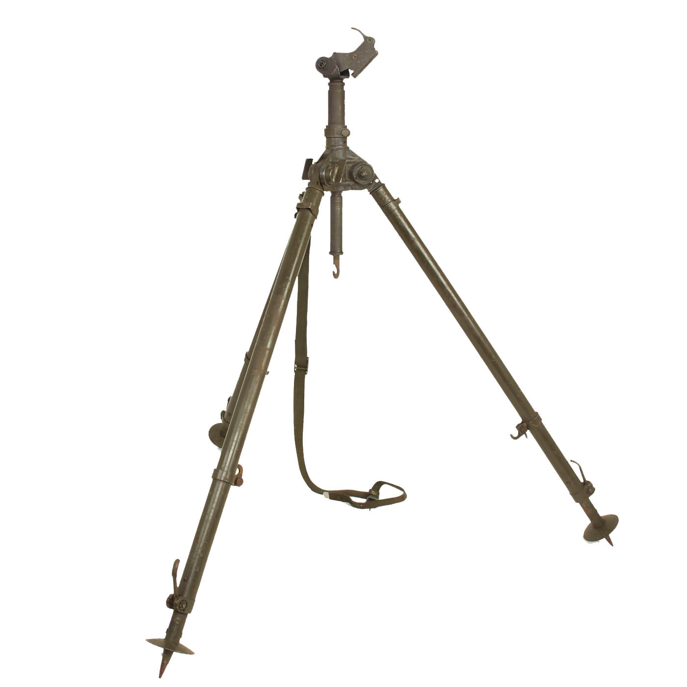 Original Item: Only one available. This is a very nice Cold War era MG 3 antiaircraft tripod, which is almost indistinguishable from the WWII MG 42 version, and will work with both. The MG 3 was developed mainly as a further development of the MG 42 that would utilize the new 7.62mm NATO cartridges. The tripod attaches to the middle bipod attachment on the barrel jacket of the machine gun.