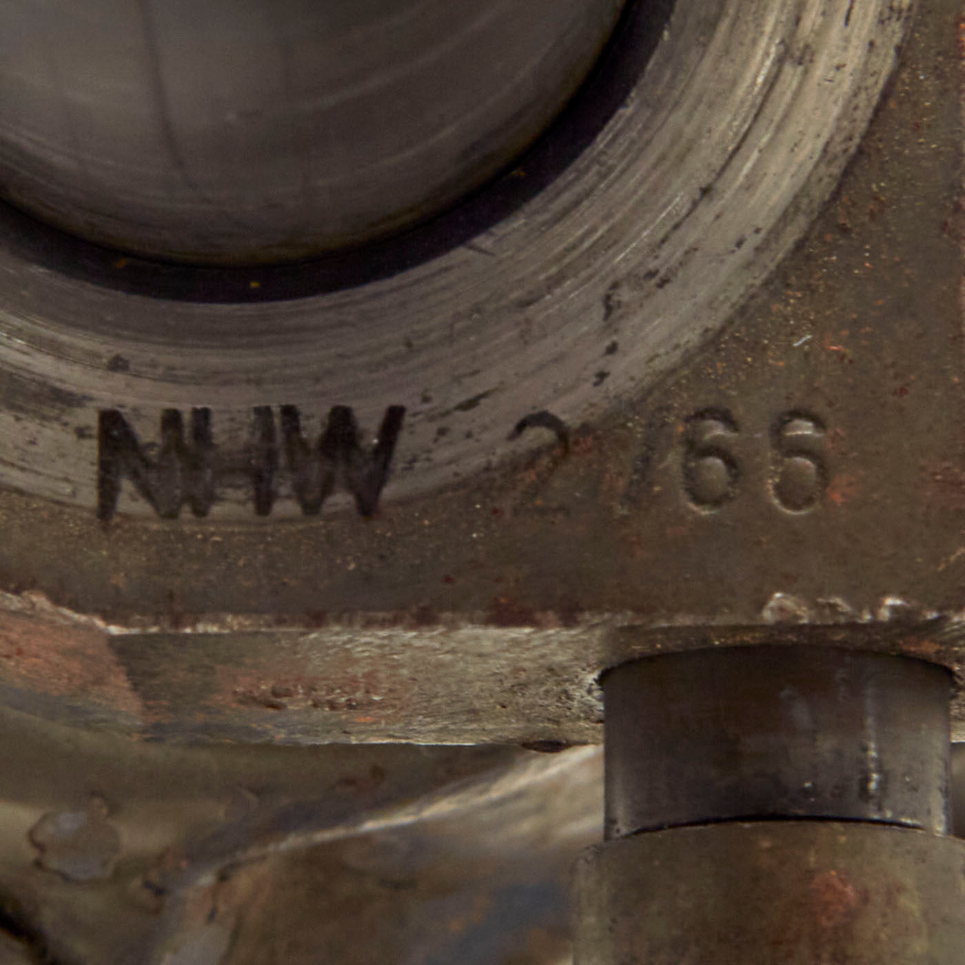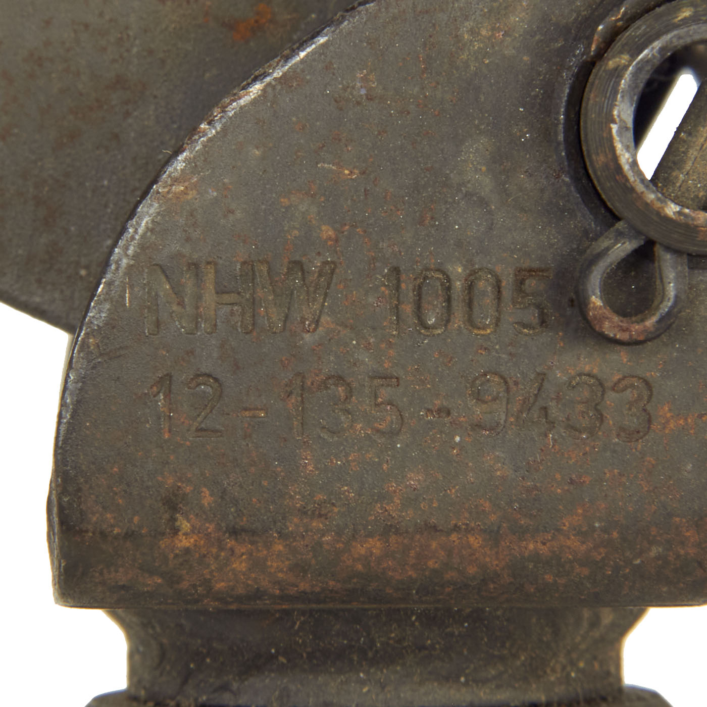 This example is marked on the collar by the crosshead with stock number 1005-12-135-6089 and a date of 2/66. The collar button still properly depresses to allow the crosshead to be moved to the extended position. We checked the functionality of the legs for both angle and extension, and did not notice any issues aside from one of the leg clamps being slightly out of adjustment, so it can be very hard to release without using a lever of some sort.