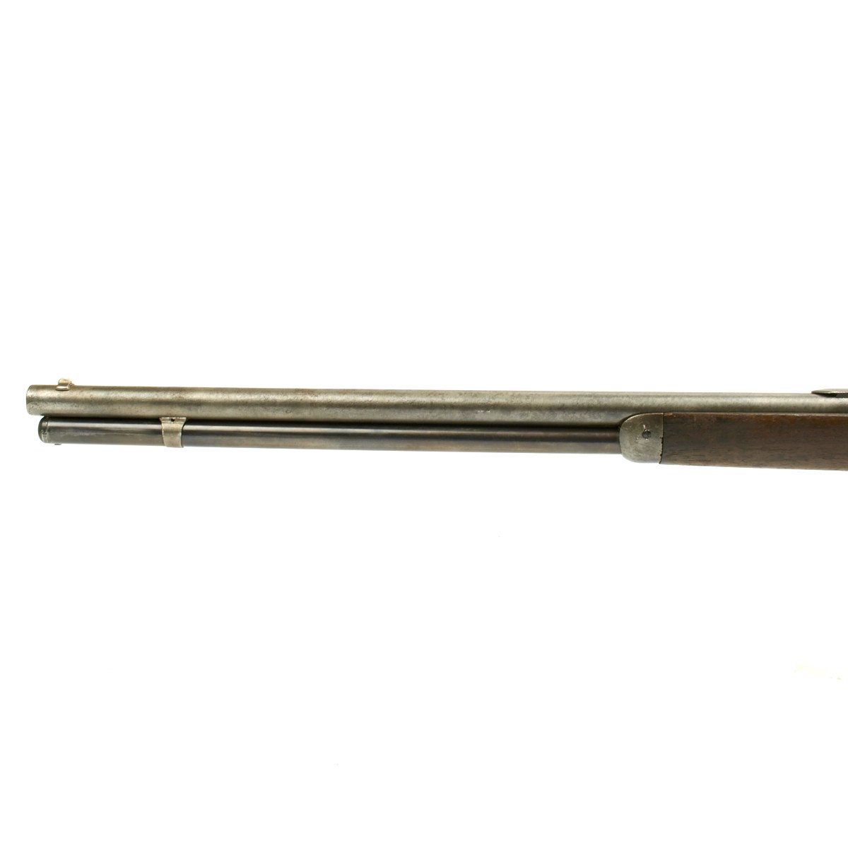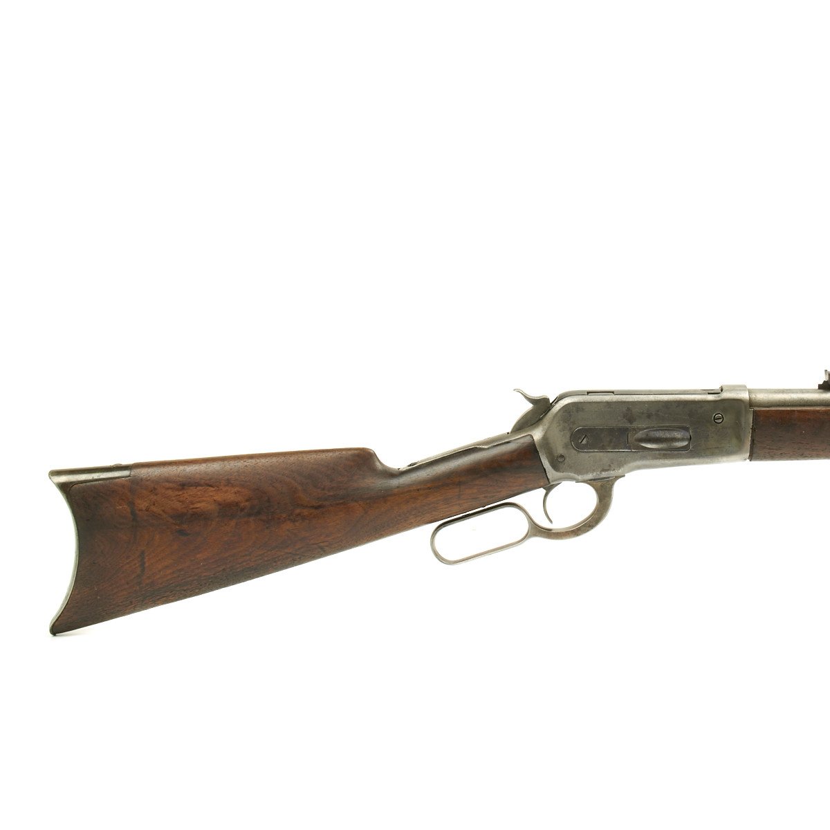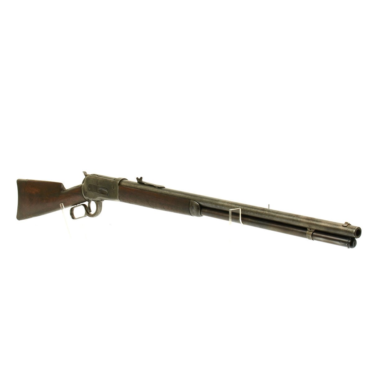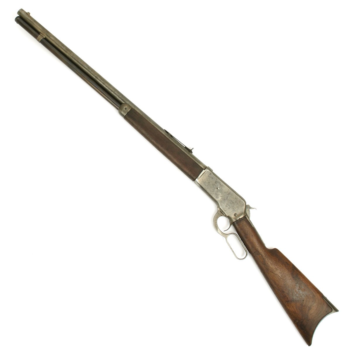Made in 1891 these .50 caliber Winchester 1886 Rifles and extremely uncommon. Our example has little finish remaining but is in tight attractive condition. The .50 caliber bore is very good and rifle features a full tube magazine, straight stock and hook butt plate. Overall good solid condition of a very rare variant!