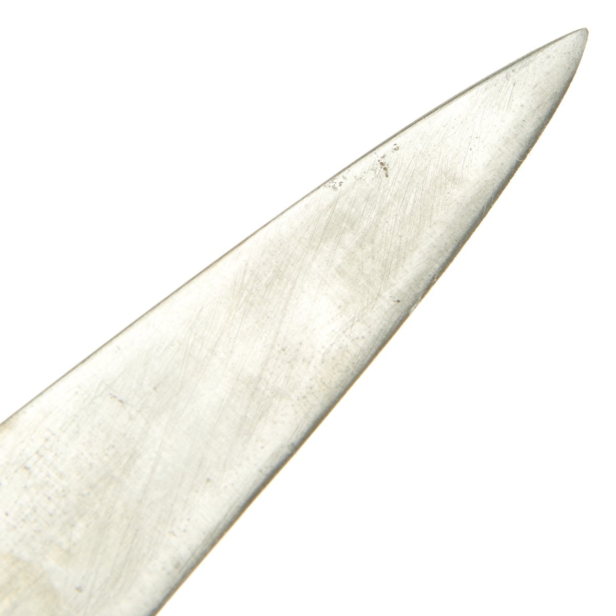 The knife is quite comfortable to hold in the right hand, which tells us this was very carefully made and intended for use and not just display. It came to us as a "barn find", and we have only cleaned the item to put it in its best light. Most probably early 19th century.