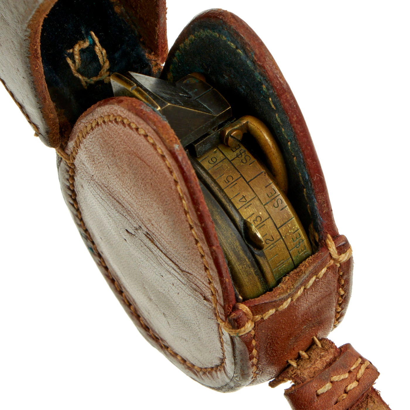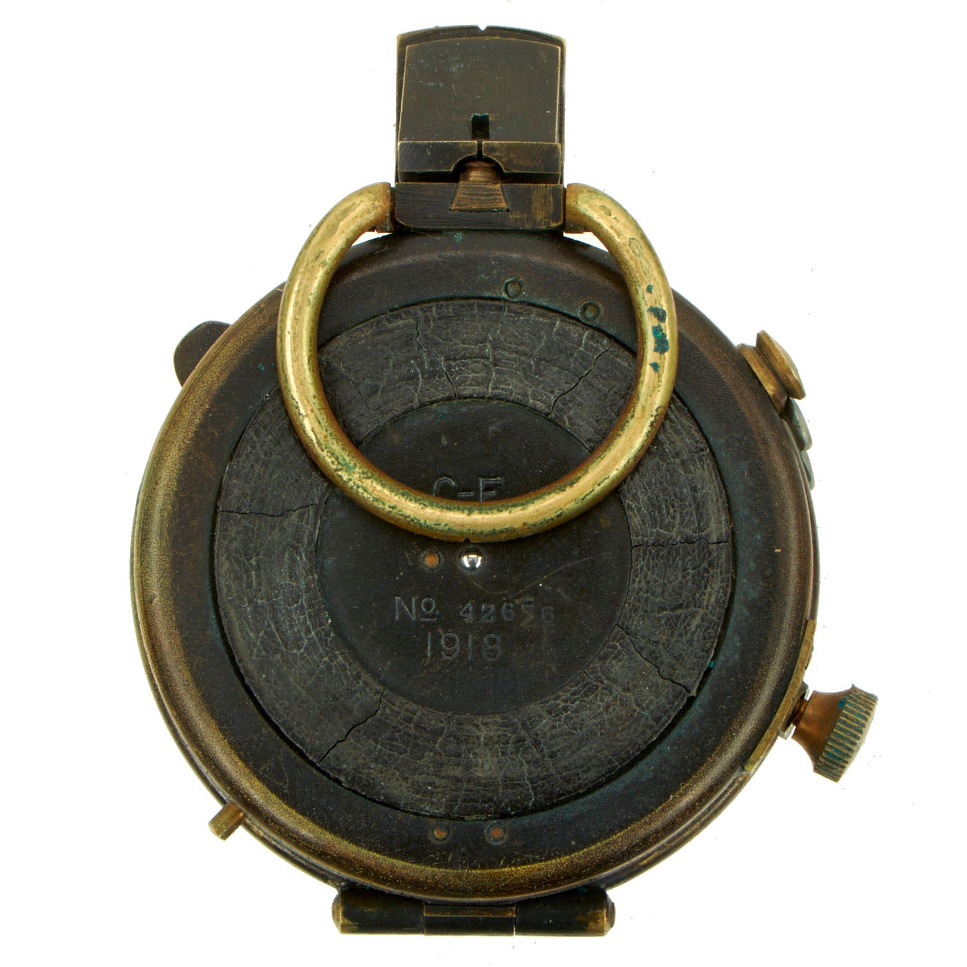 Original Item: Only One Available. This is a WW1 Verners pattern 1918 dated compass with a British leather case, dated 1917. Made and marked by Cruchon & Emons (C - E), who were located in London, Paris, and Berne, Switzerland. Both are offered in very good condition, with no noticeable damage to either item.