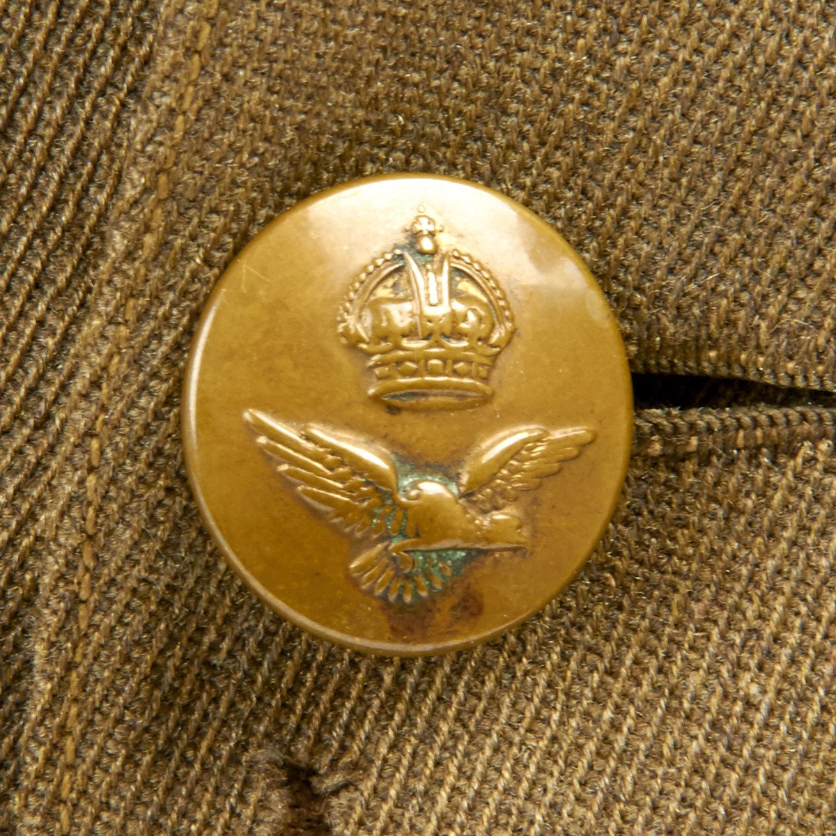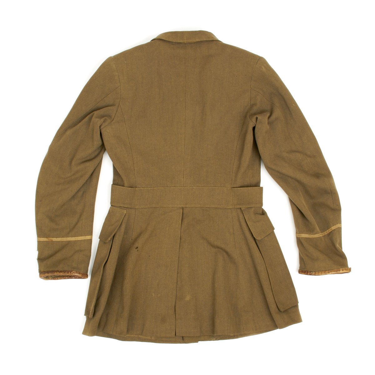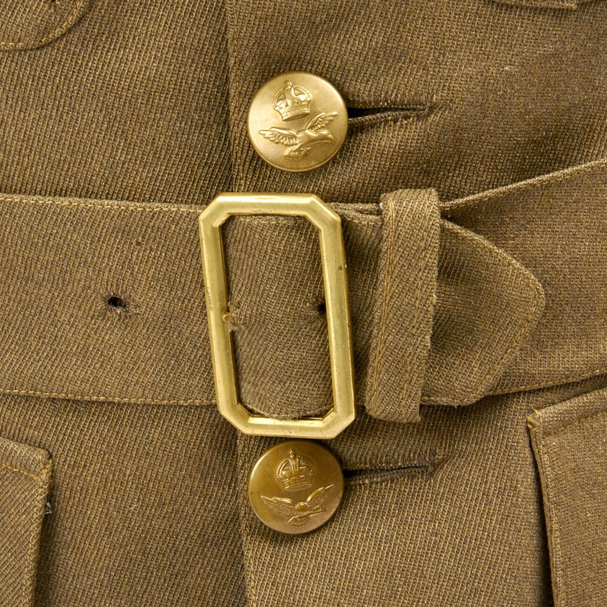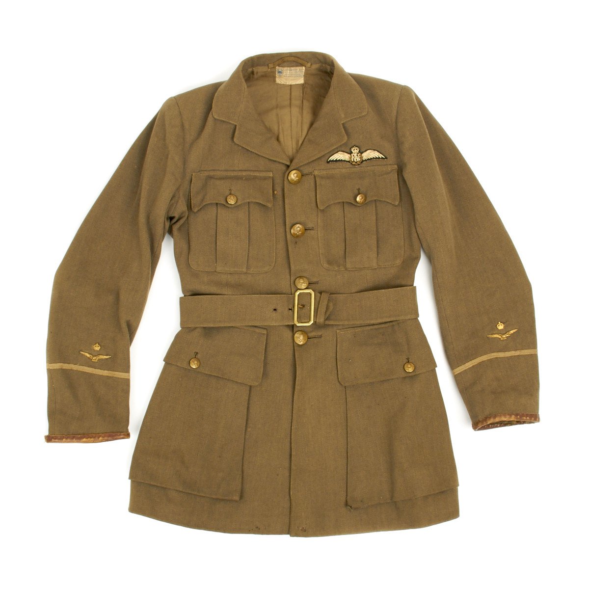 There was only an 8 month window that this uniform could have been made as it was the very first RAF issue as opposed to the Royal Flying Corps. From April 1918 through December 1918 this Olive color wool uniform with leather sleeve trim reinforcement was issued to officers in the RAF.