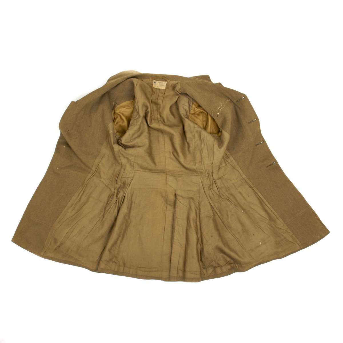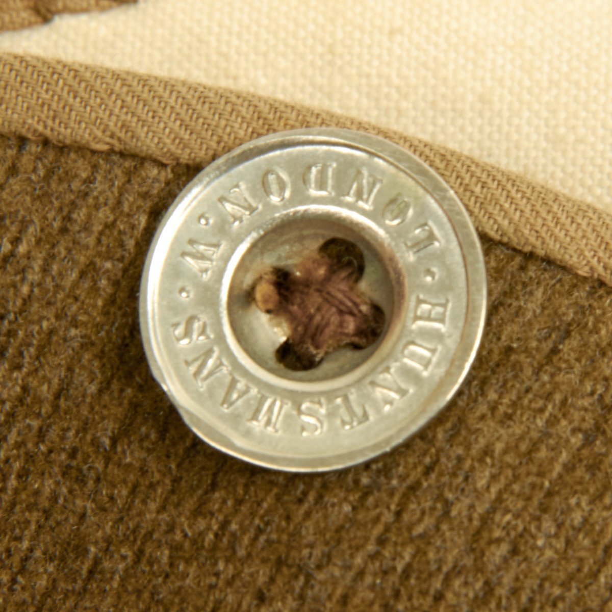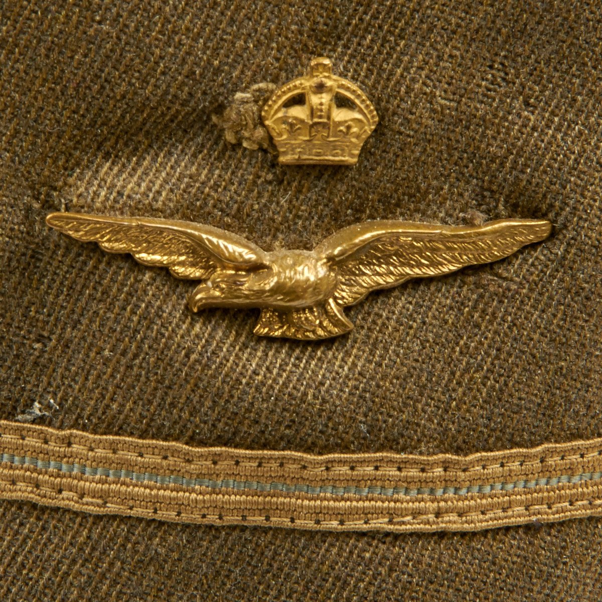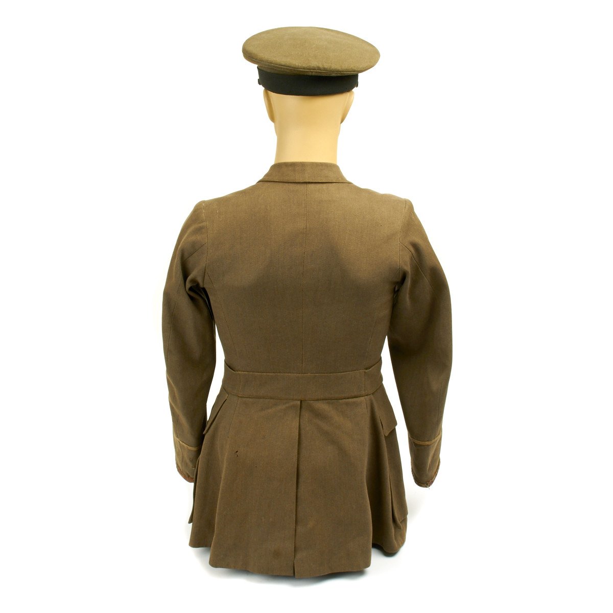 There was only an 8 month window that this uniform could have been made as it was the very first RAF issue as opposed to the Royal Flying Corps. From April 1918 through December 1918 this Olive color wool uniform with leather sleeve trim reinforcement was issued to officers in the RAF.