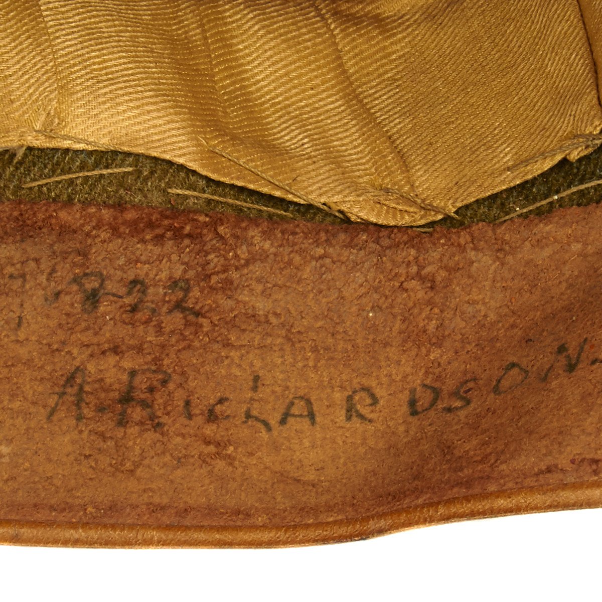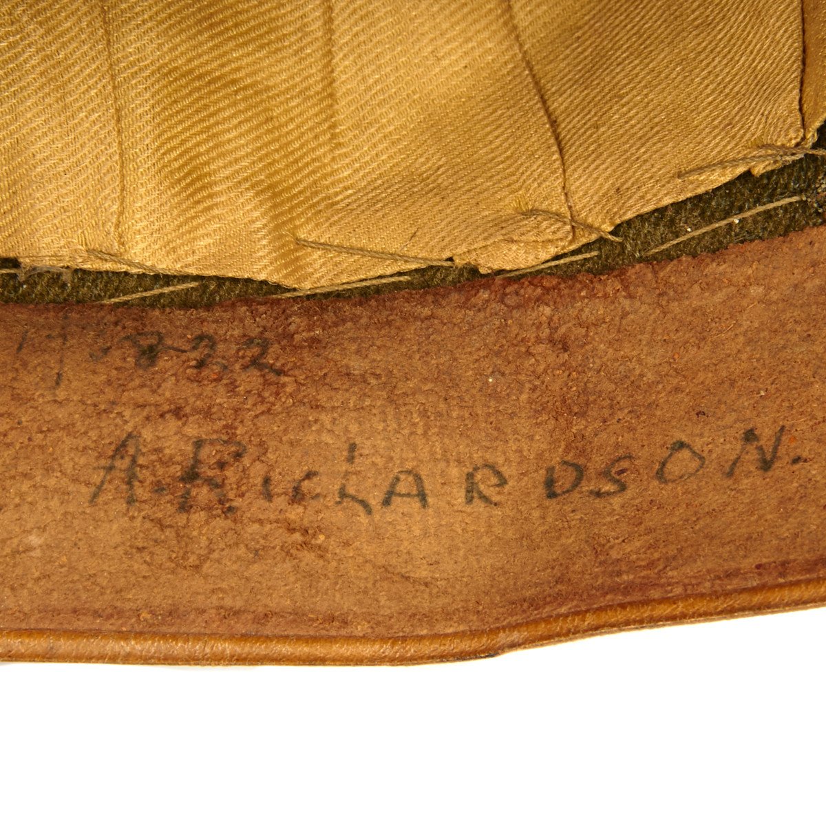 Also included is wonderful first generation RAF peaked officer’s cap with maker label and the name A. Richardson found inside the leather sweatband. Also, a pair of nearly unissued jodhpurs with suede leg pads and excellent buttons. Finally a photocopy of A. Richardson’s reassignment orders dated October 22nd, 1918 just a few weeks from the close of the Great War.