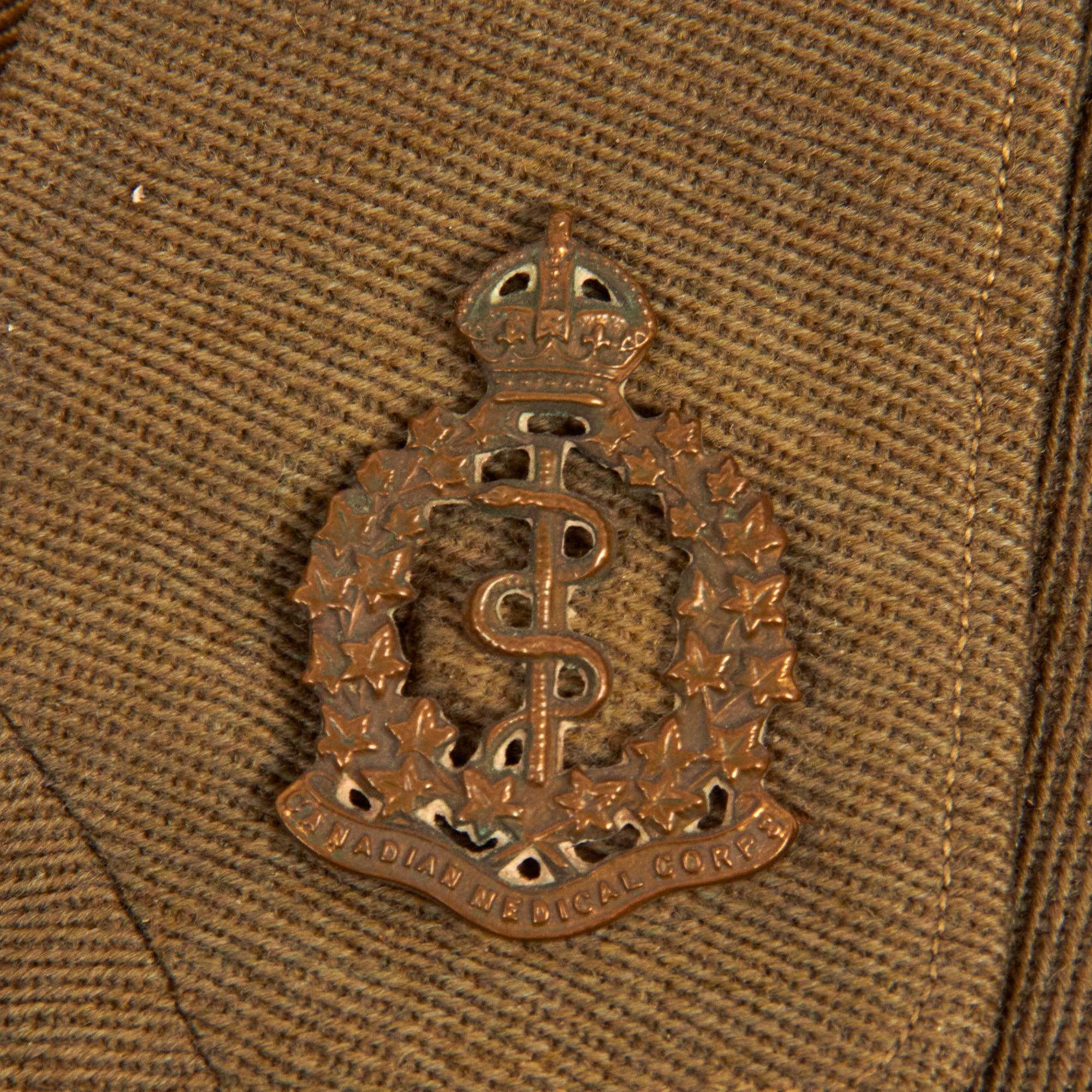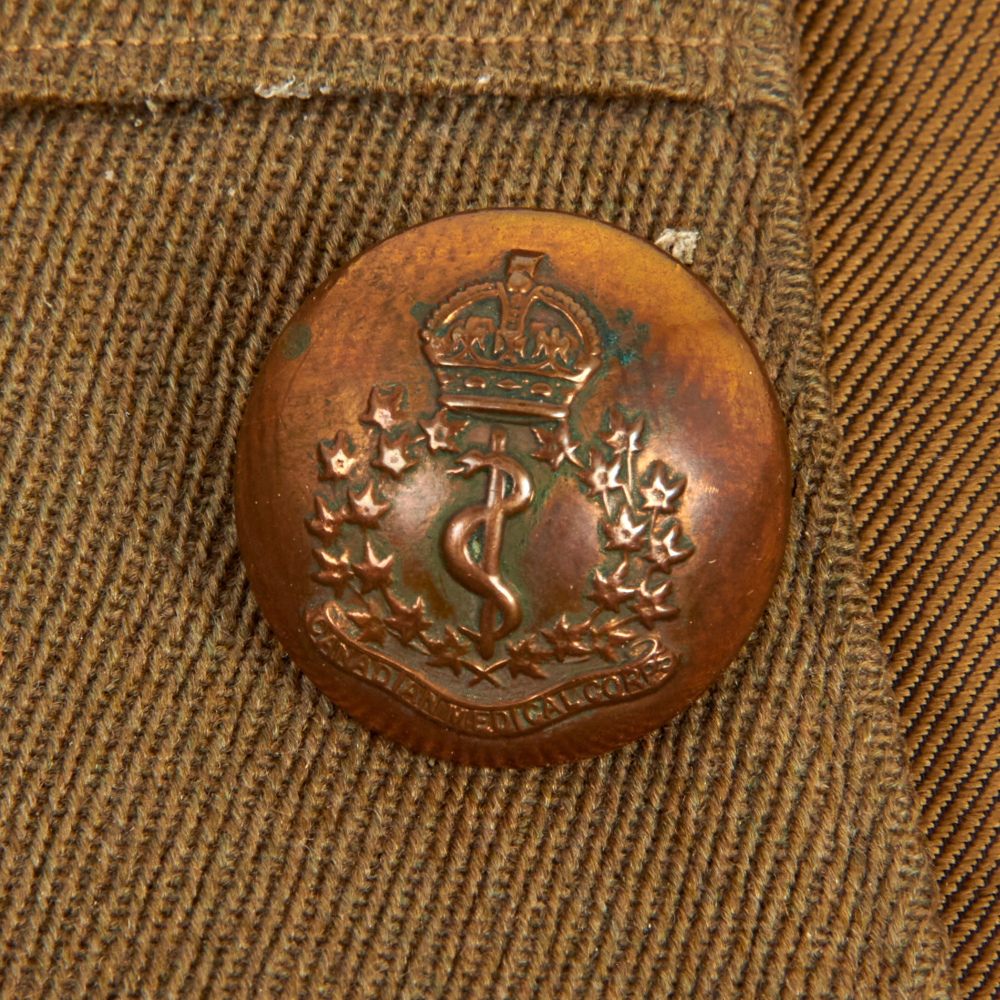 Original Items: One of a Kind: This is an outstanding WWI Canadian Medical Officer’s set which has recently come from an older collection. The uniform is attributed to Captain (Doctor) Benjamin Franklyn MacNaughton who received his commission in the Royal Canadian Medical Corps on June 19, 1915, served assigned to the British Army’s 16th Corps on the Salonika Front, and was then mustered out of service on August 2, 1919. Following his service with the RCAMC, MacNaughton served as a Surgeon with the Number 19 Montreal Ambulance of the St. John’s Ambulance Corps, signing up on August 18, 1921. Accompanying the uniform is a small packet of records which can assist the future owner in conducting further research of MacNaughton at a future date if they so desire.