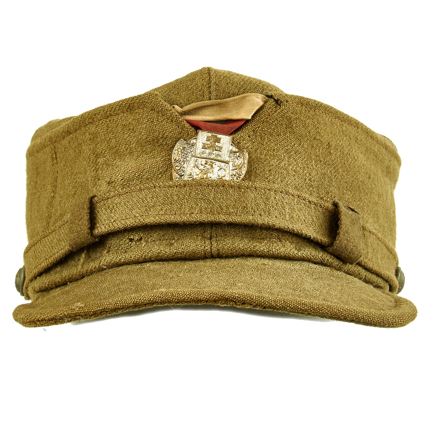 Original Item: Only One Available. This is a rare Great War Czech Volunteer Legion Russian Infantry Field Cap. The hat is made from rough wool with an internal cardboard stiffer and canvas sweat band. The front of the cap bears a Czech Volunteer Legion cap badge and White/Blue/Red ribbon. Overall condition is good, especially on the exterior. The interior cardboard stiffer has seen a lot of war. Size is approximately US 6 3/4 (54cm). These hats are scarce as the plight of the Czech Legion is one that has to be studied to be believed.
