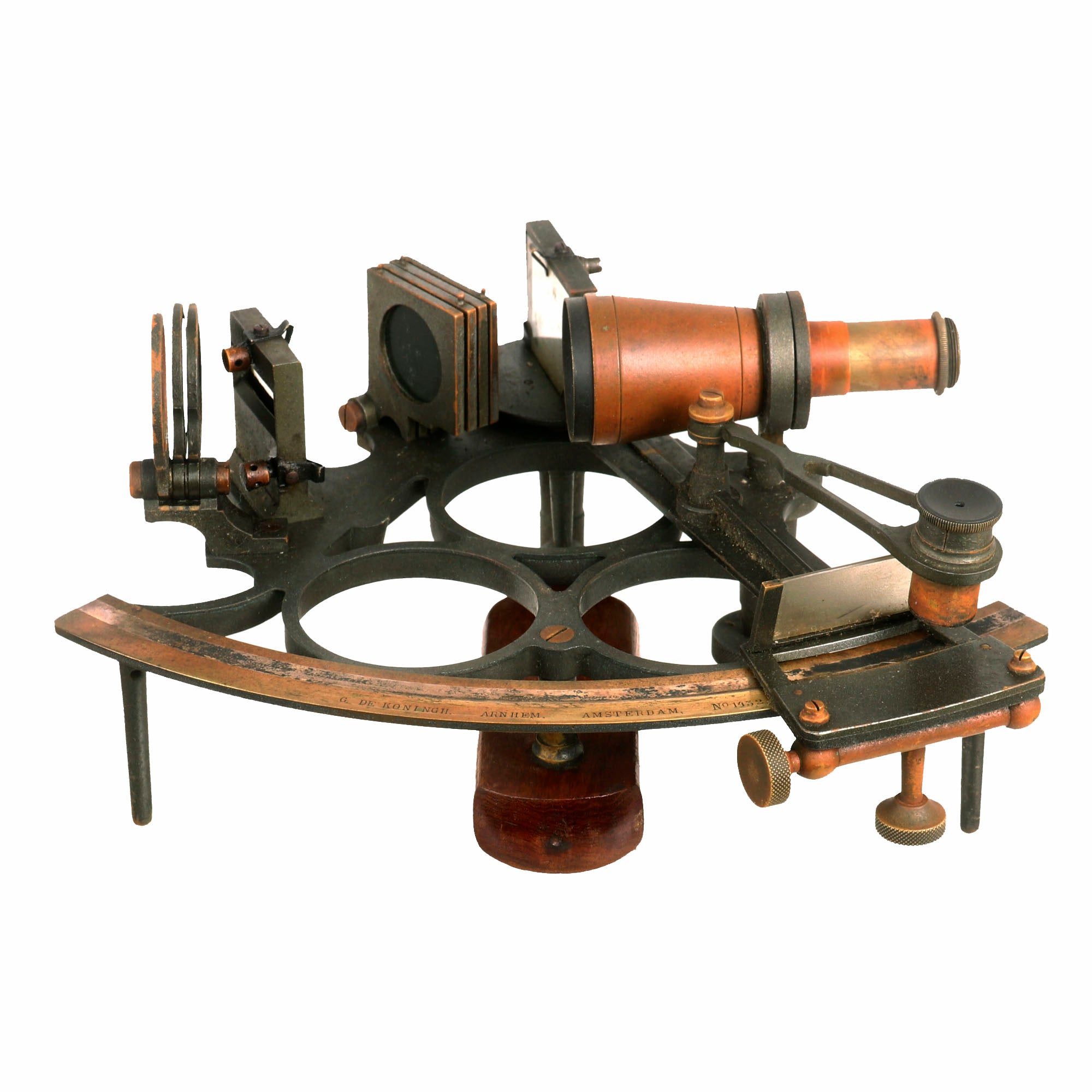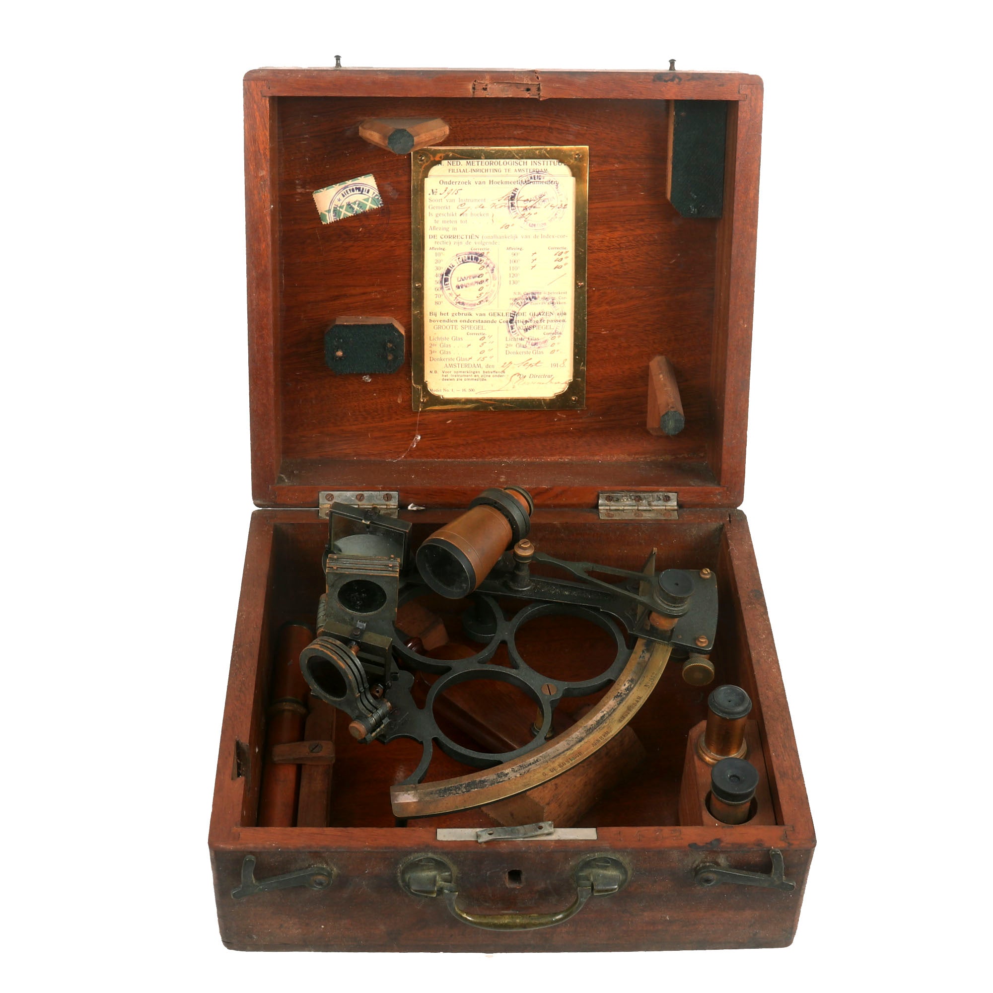 Original WWI Era Dutch Naval Sextant with Greek Markings in Case - From Dutch Ship Sold to Greece c.1930s