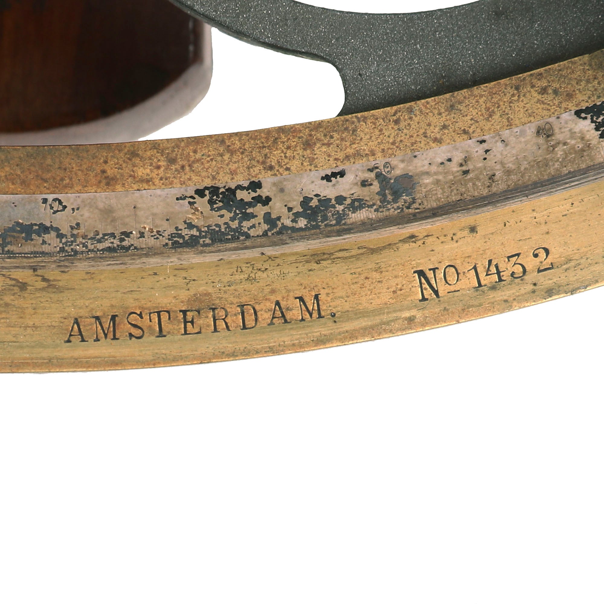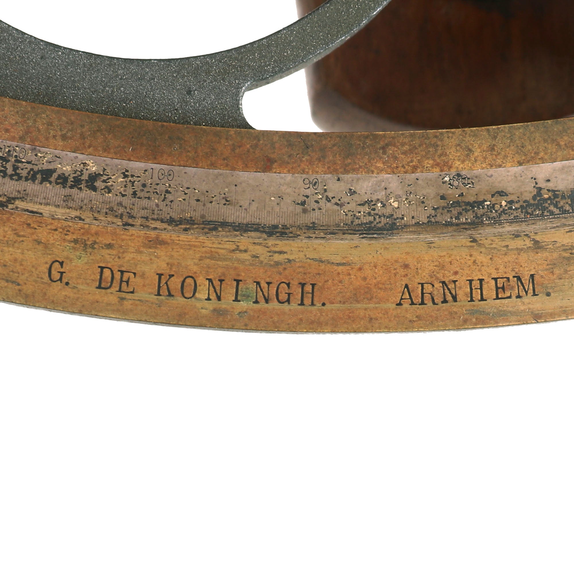 This is a lovely WWI Era Dutch Navigational Sextant by maker G. DE KONINGH. of ARNHEM. and AMSTERDAM. serial NO 1432, complete with the original wooden case, which measures approximately 11 1/4"W x 9 3/4"D x 5 1/2"H. The sextant retains its major components including the frame, mirrors, micrometer assembly, and various scopes and sighting tubes stored in the case.