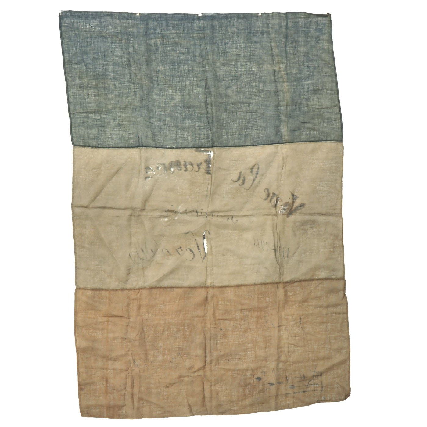This very nice original French World War One Tricolor National flag measuring approximately 31" X 46". The flag looks to be made of open woven cotton, almost like gauze, and each color is a separate piece of fabric.