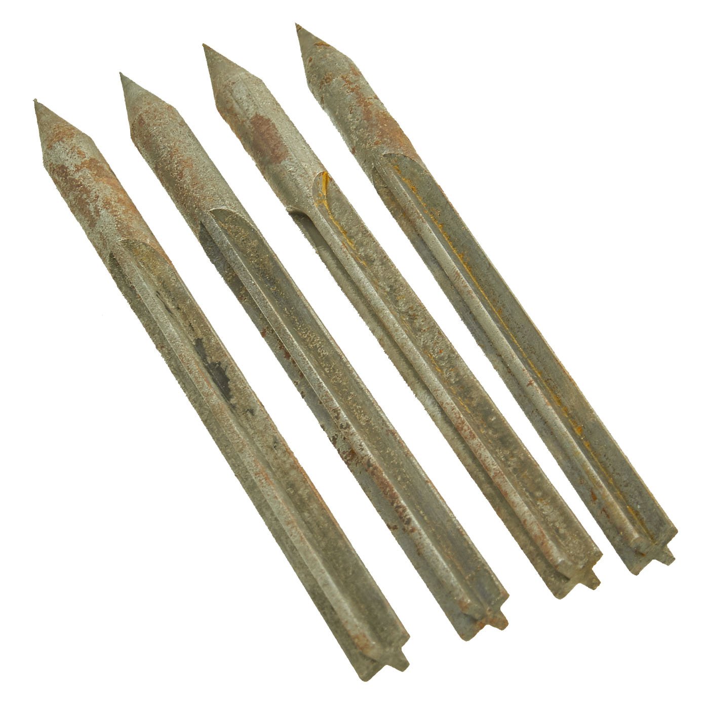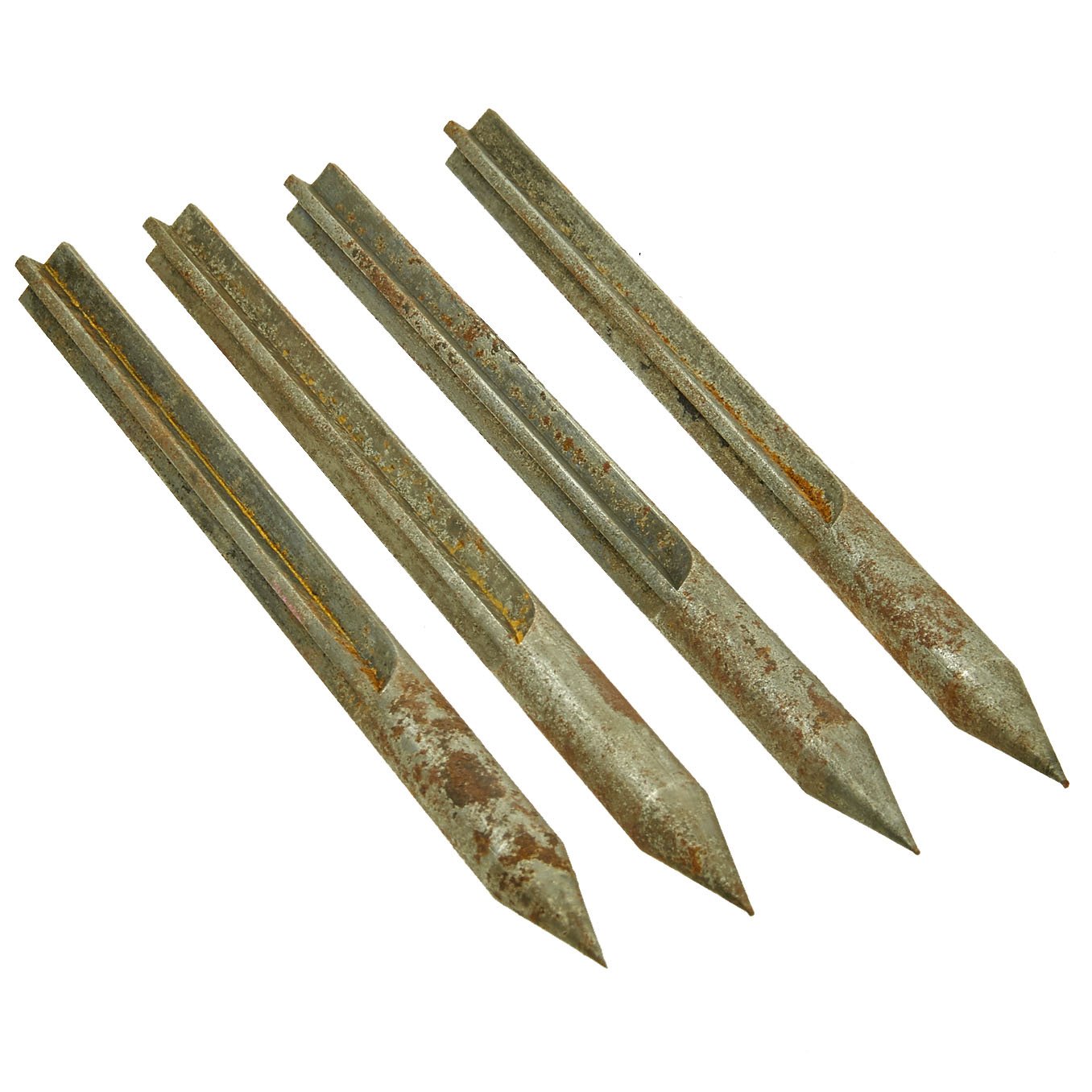 Original Item: Only One Set Available. This is a set of four Great War Imperial German one piece cylindrical aerial darts with pointed tip and four grooved fins in the shaft offered in very good to excellent condition. Each measures approximately 6 inches in overall length. A nearly identical example can be found in the permanent collection of the Australian War Memorial Museum and seen at this link.