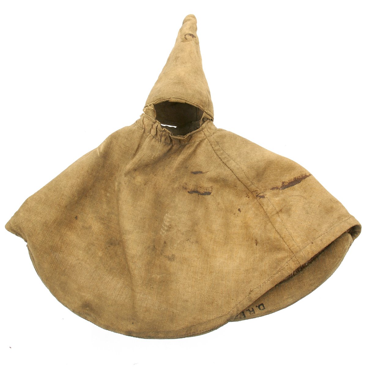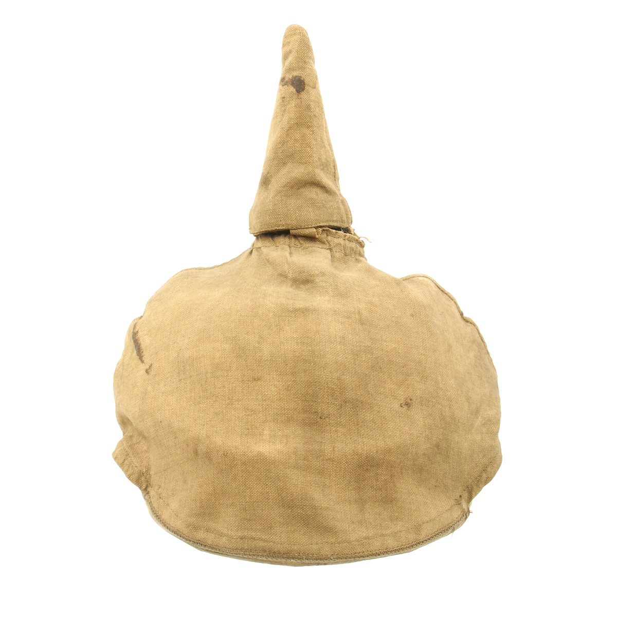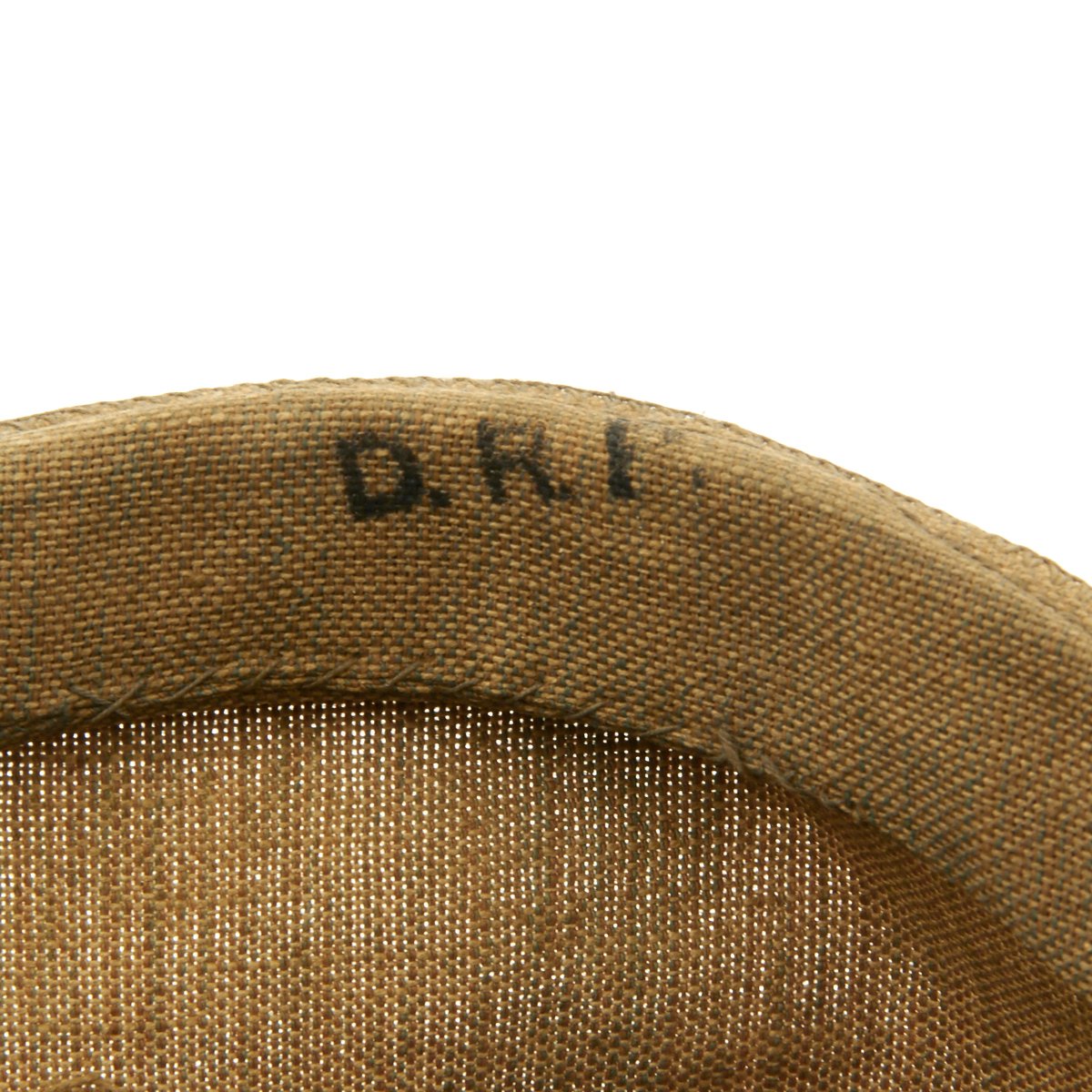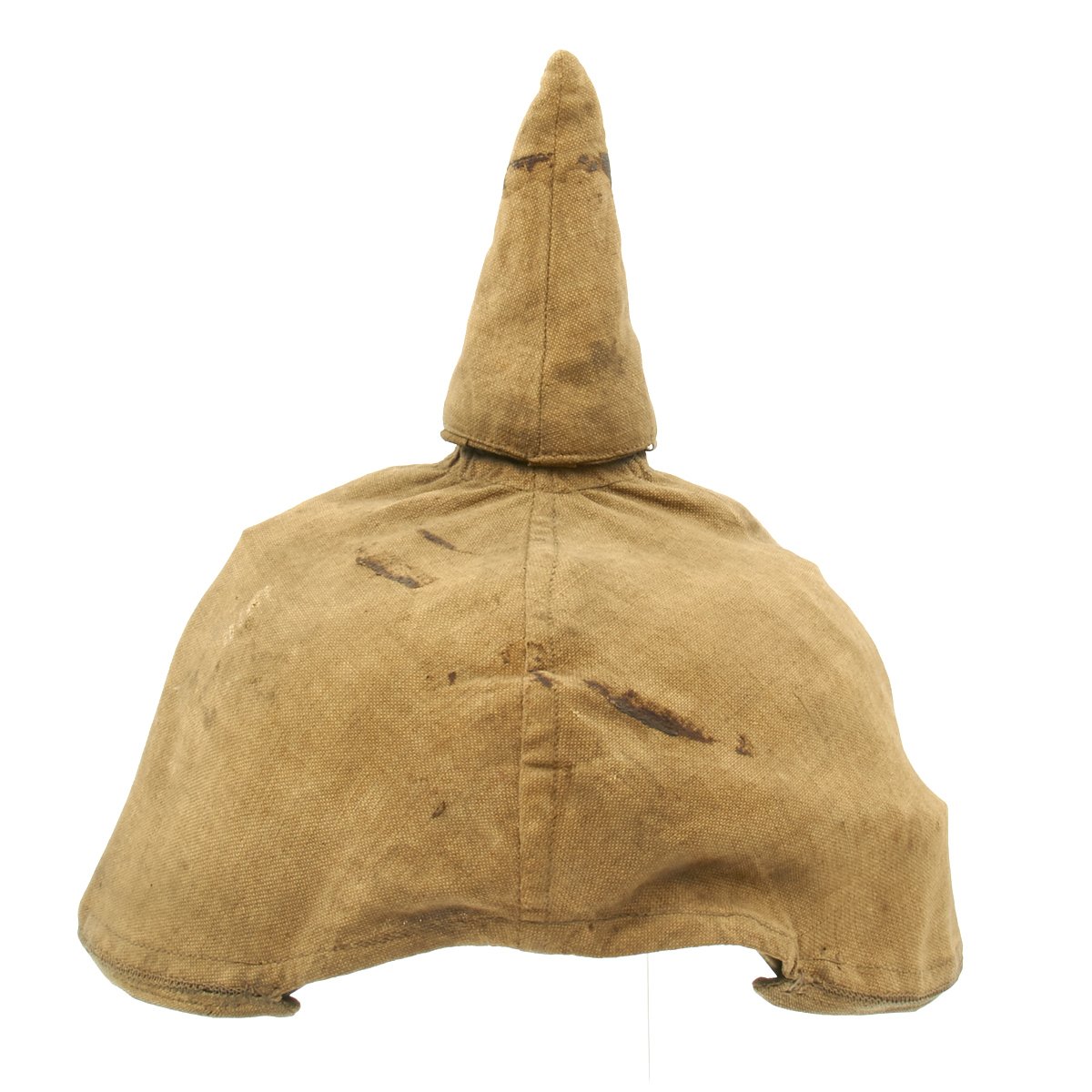 The inside liner is still present, complete with the original cream colored silk skull cap, which is in nice condition, though it does have some splits and definitely shows wear. The leather portion of the liner is nice and supple, with some staining. The helmet cover apparently was on this helmet for some time, and has accumulated quite a bit of dirt. It is in fair condition, but these are exceedingly rare in any condition.
