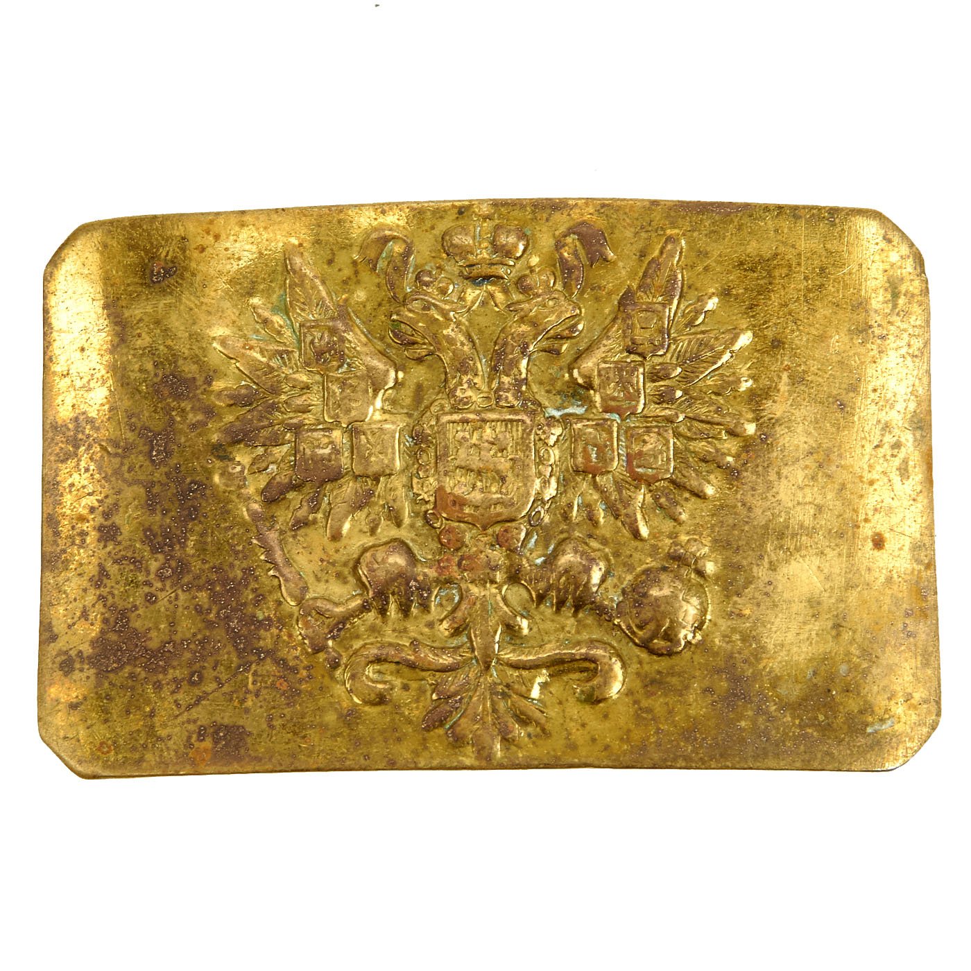 Original Item: Only One Available. Unlike the ones we mostly encounter, which are reproductions that are artificially aged, this is a genuine WWI Imperial Russian Infantry Pattern 1907 Brass Belt Buckle offered in very good condition. Measures 3 3/8 inches by 2 inches.