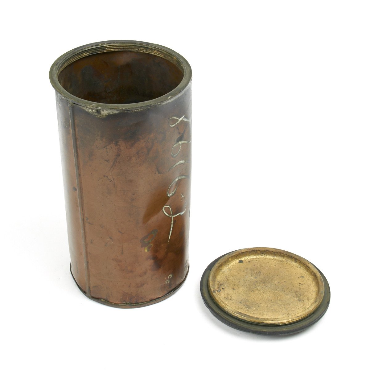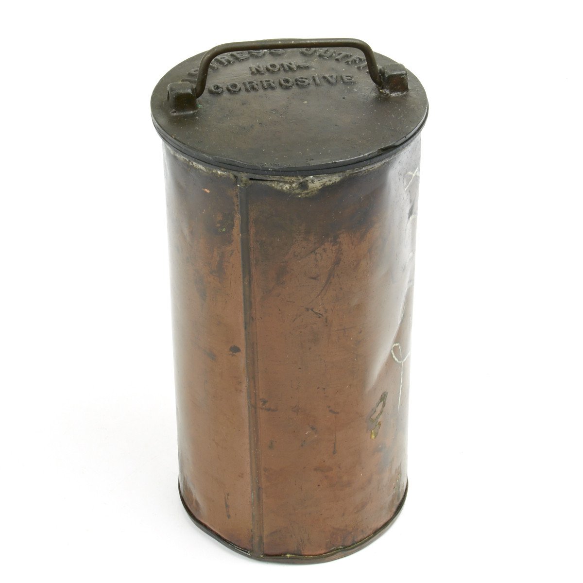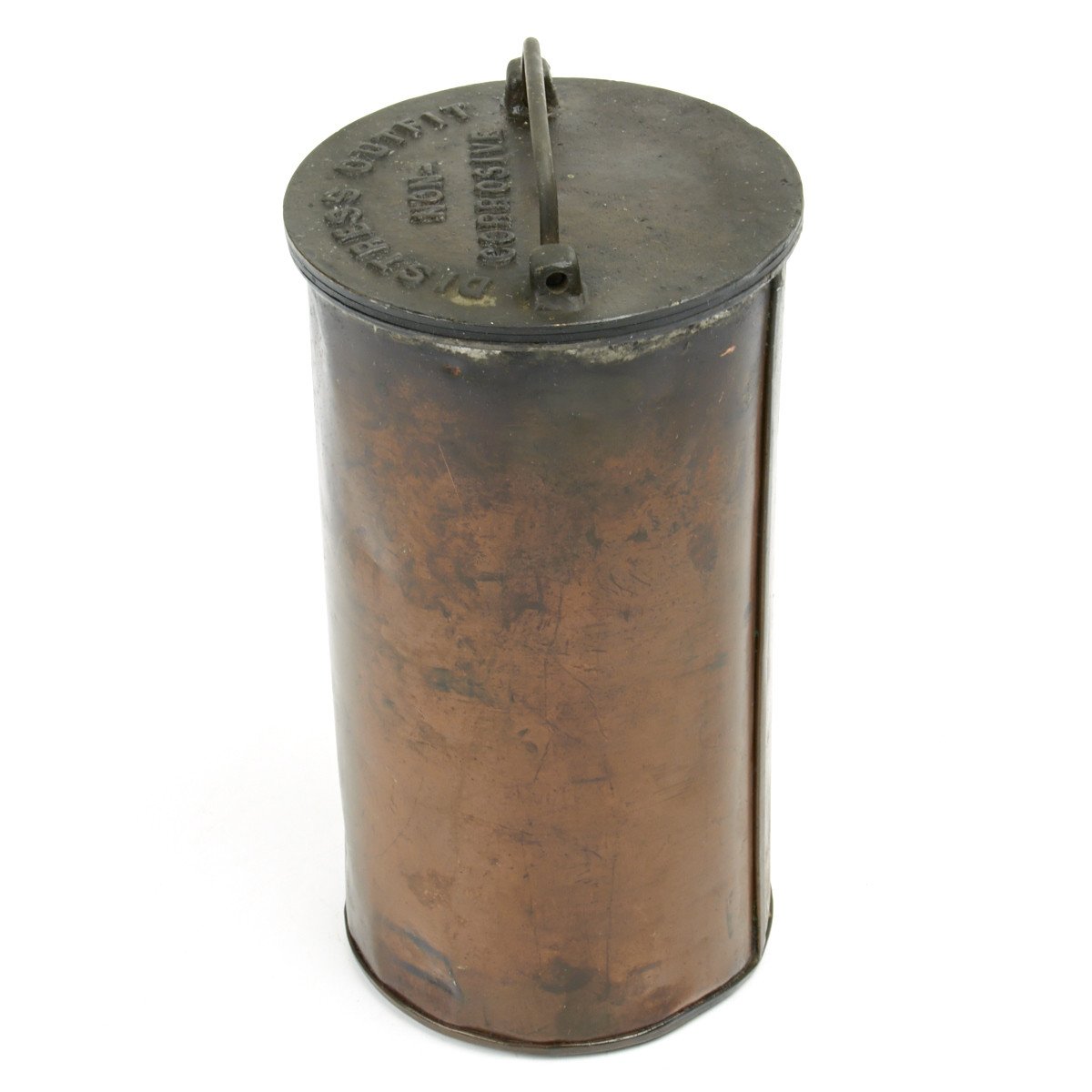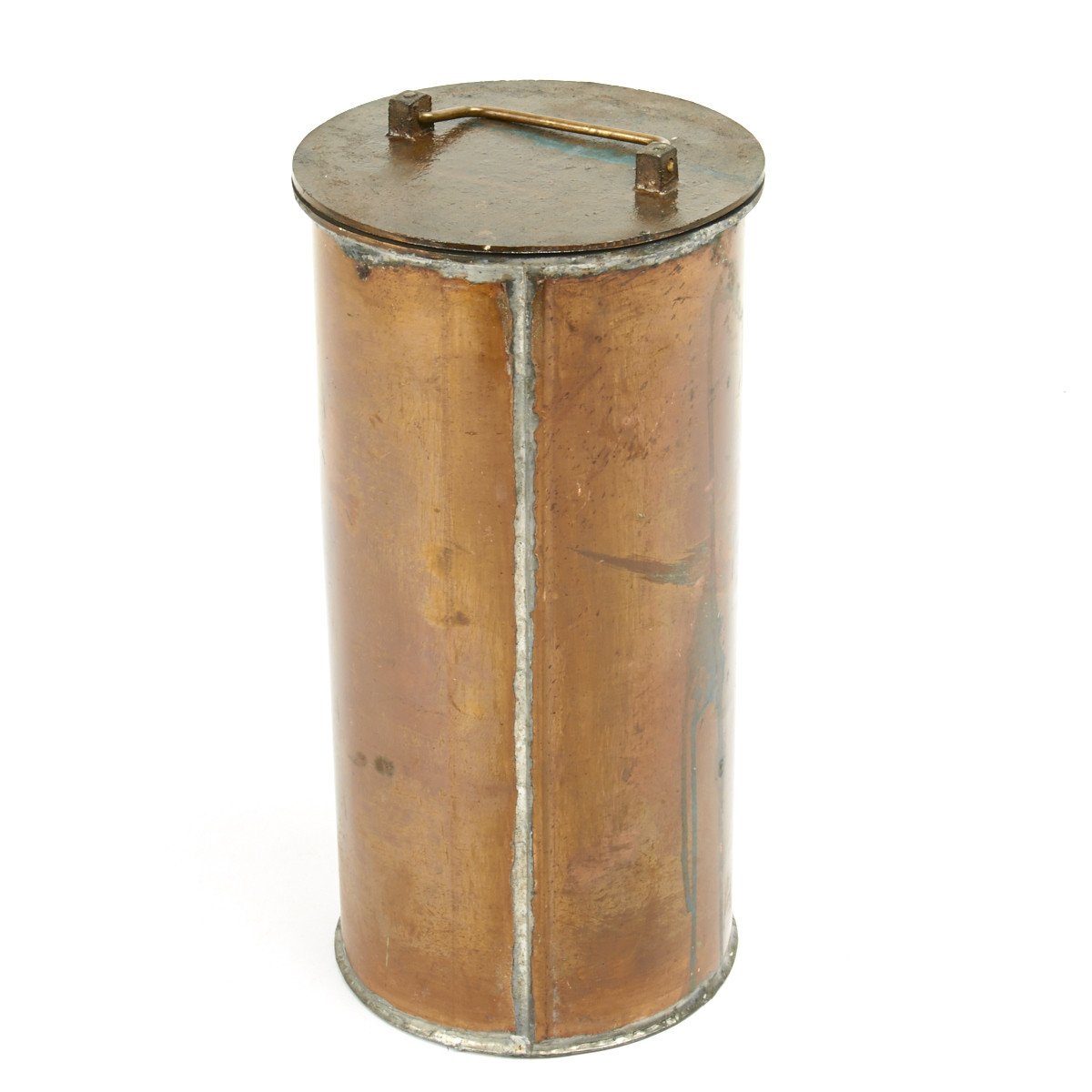 Original Items: Only One Set Available. These are a set of two copper canisters designed to be watertight in order to store distress flares. We believe they date from the early 20th century and each has a heavy screw top lid.