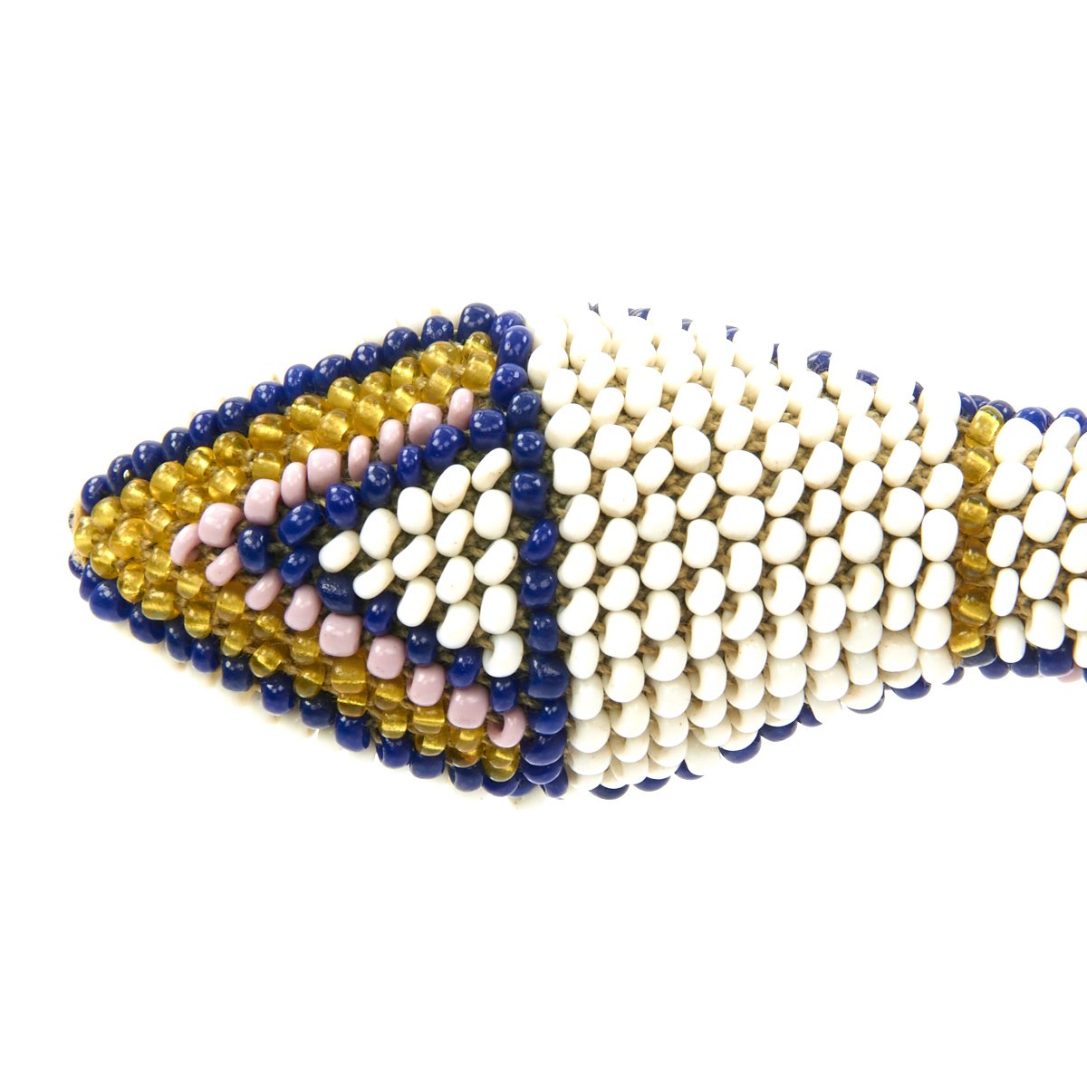 Original Item: Only One Available. This souvenir beaded “snake,” from was brought back after the First World War by a USGI. It originates from the Ottoman Empire. Drawing on the rich tradition of textile crafts in the Ottoman Empire, Turkish soldiers incarcerated in British prison camps in the Middle East during and immediately after World War I made a variety of beadwork items to relieve the boredom of their prolonged imprisonment and to barter or sell for food and other amenities.