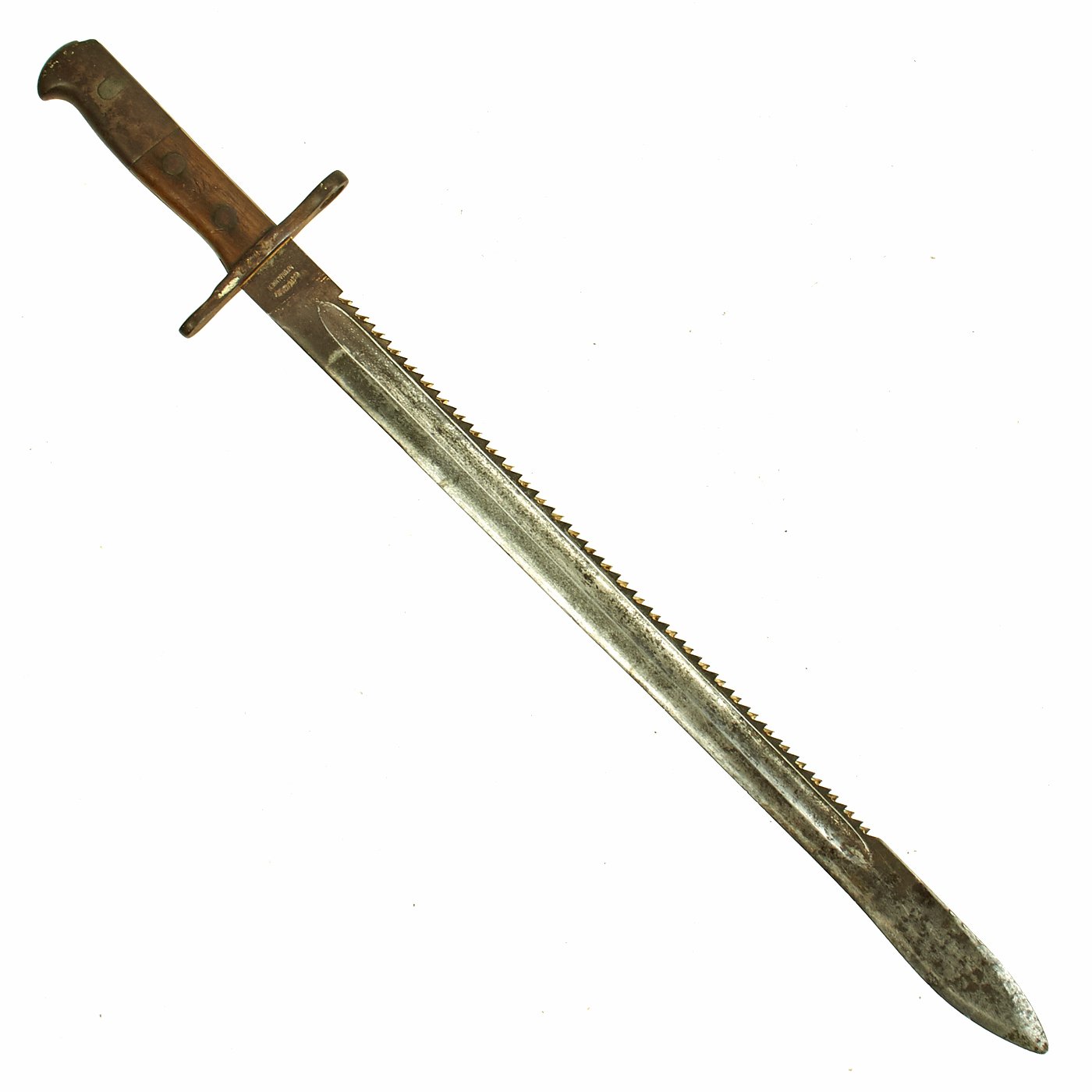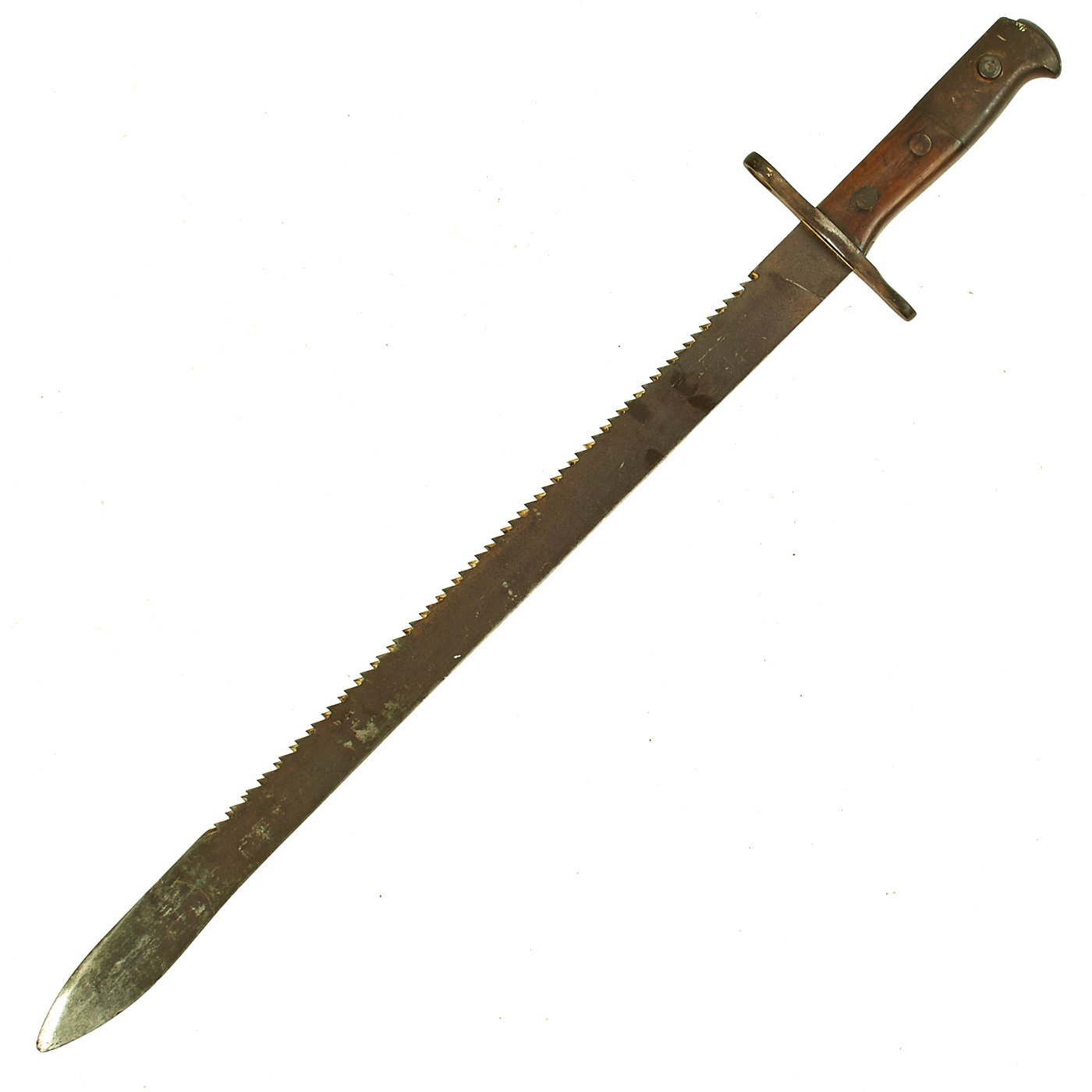 Original Item: Only One Available. This is a very nice used example of the Rare Swiss Model 1914 Pioneer Sawback Sword bayonet. This model was in use by Switzerland from 1914 until well into the 1950s, and is considered to be the very last model of bayonet from any Country to make use of a saw back blade.