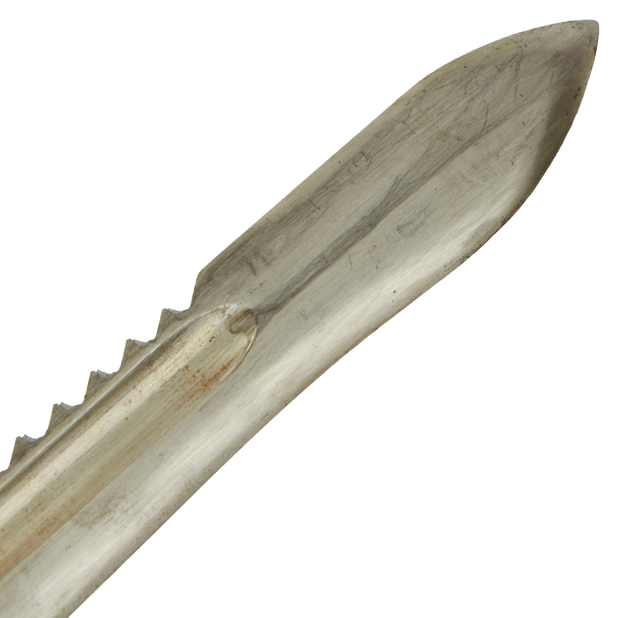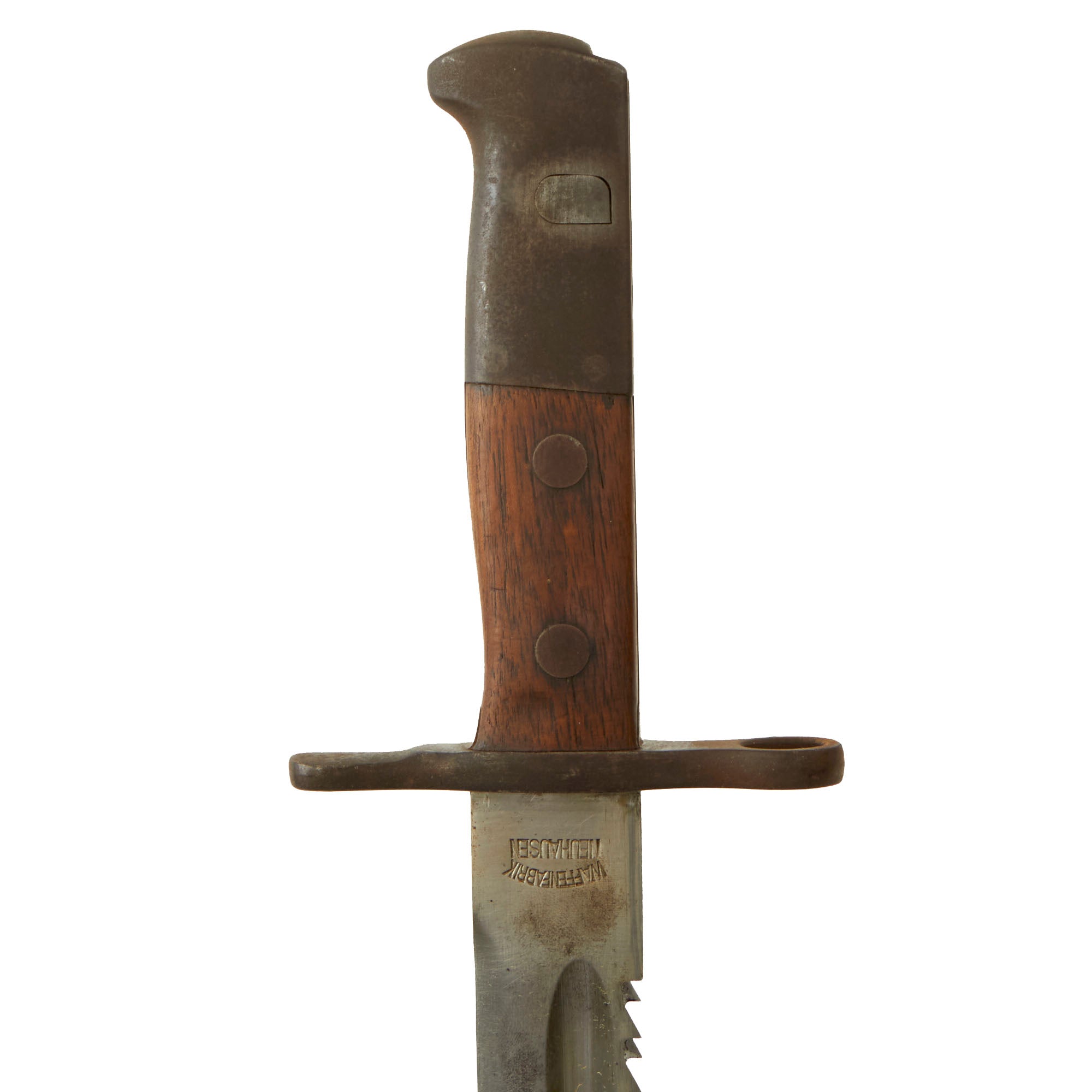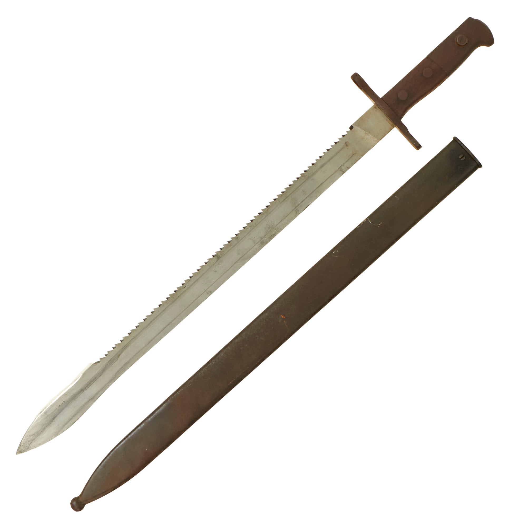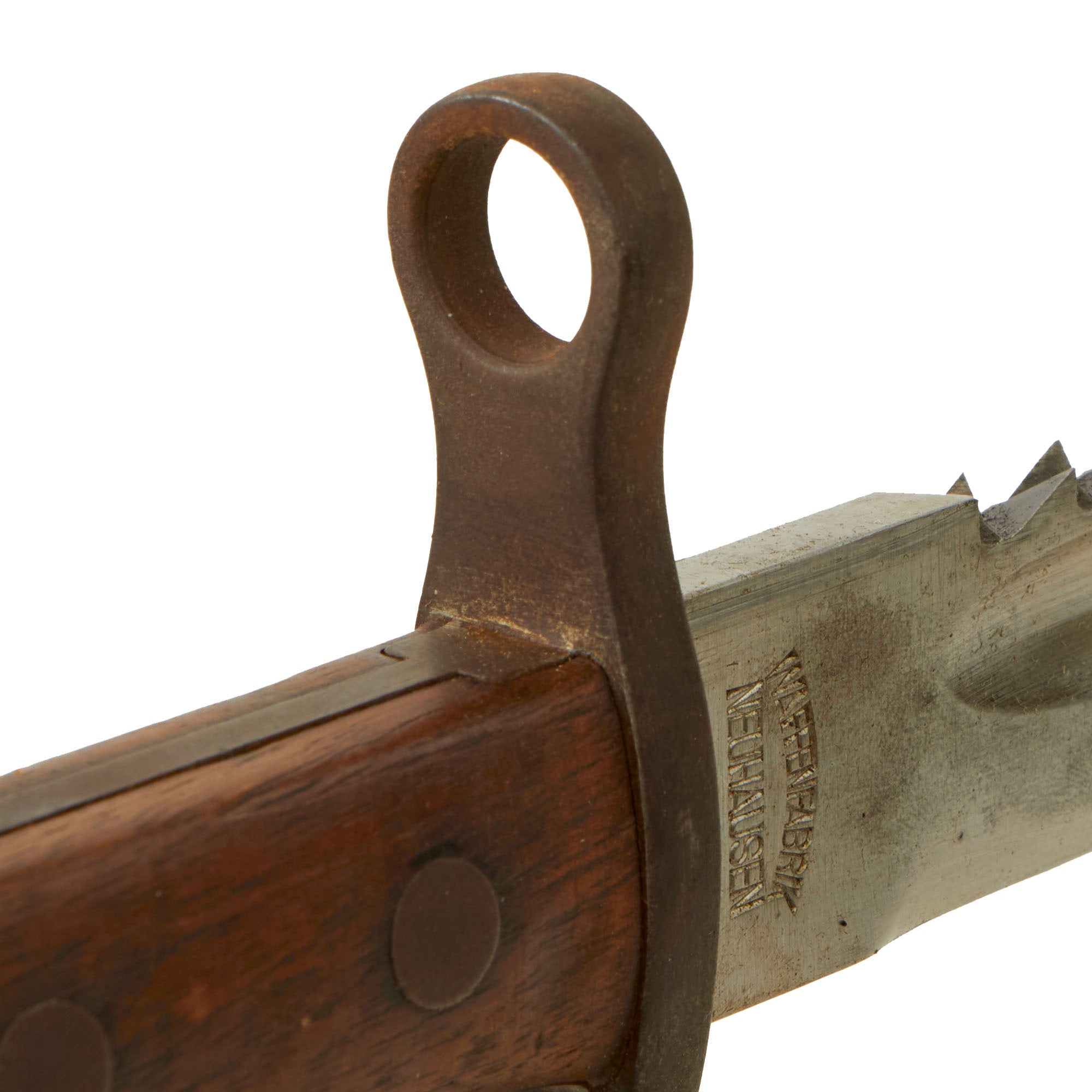 Original Item: Only One Available. This is a good example of the Rare Swiss Model 1914 Pioneer Sawback Sword bayonet. This model was in use by Switzerland from 1914 until well into the 1950s, and is considered to be the very last model of bayonet from any Country to make use of a saw back blade.