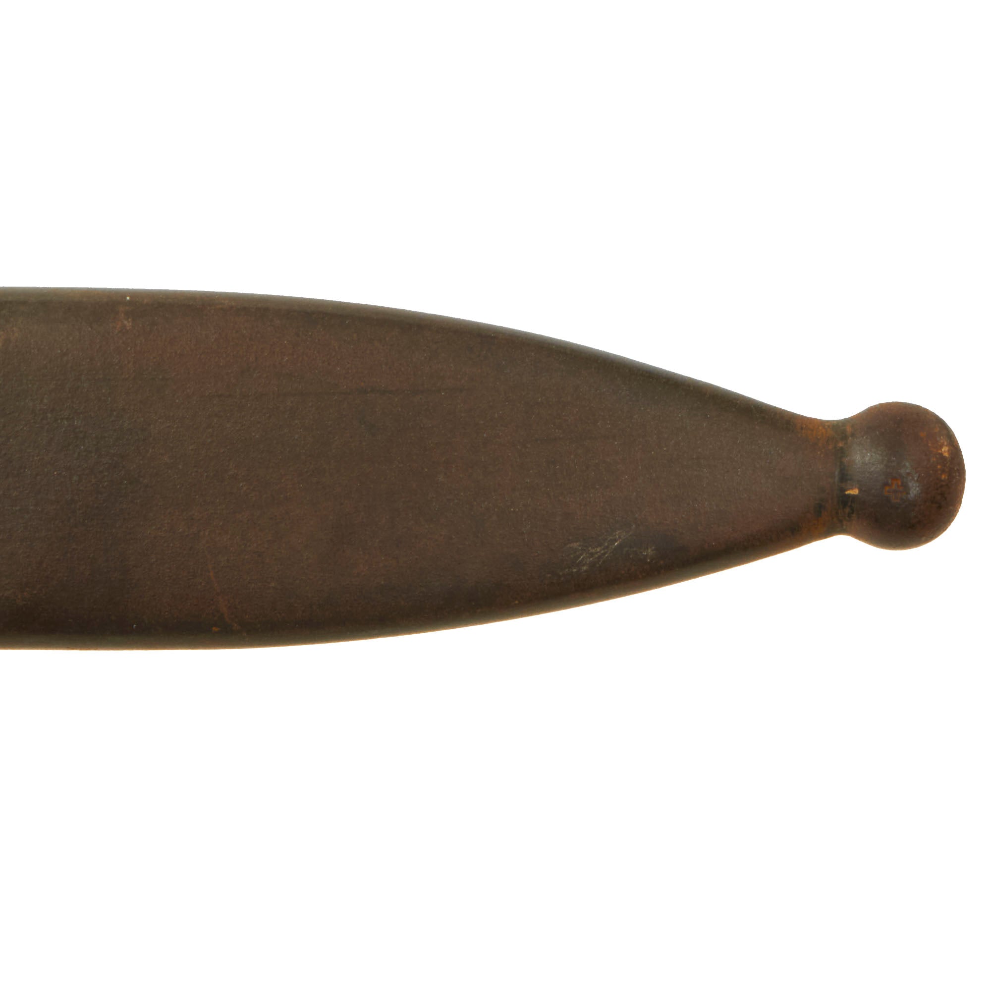 The name simply translates to "Weapons Factory Neuhausen," which was one of the primary edged weapon suppliers in the first half of the 20th century. The edge and sawback are excellent, and there are just a few small areas of staining. A beautiful example of the unique "swell-point" shape. There is a Swiss Cross proof mark on the top of the cross guard but no issued serial number.