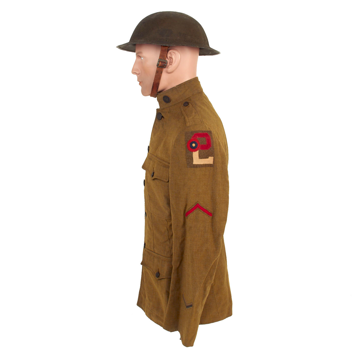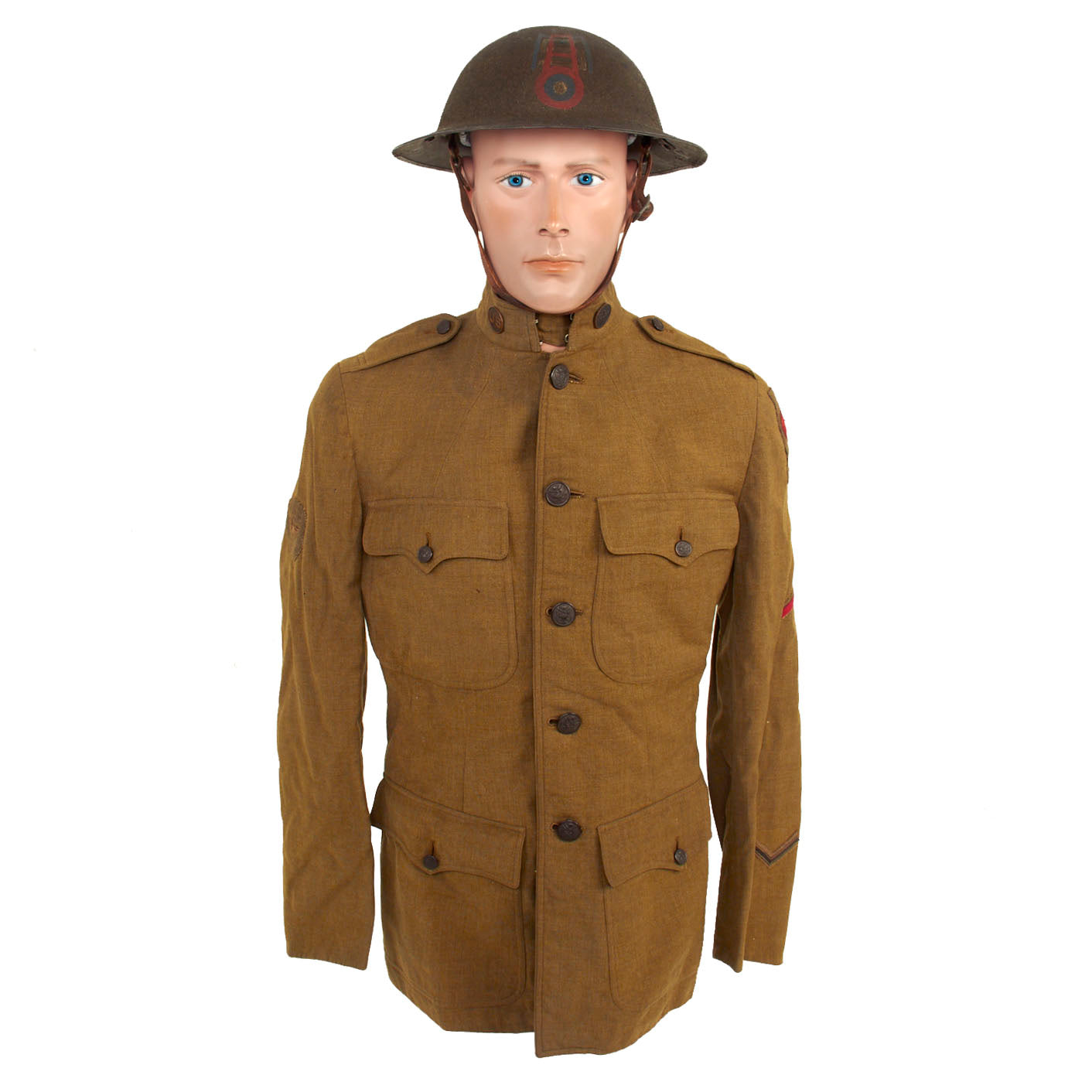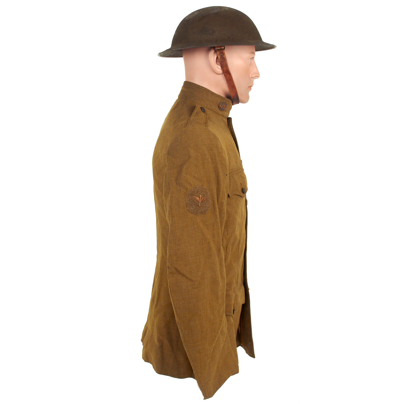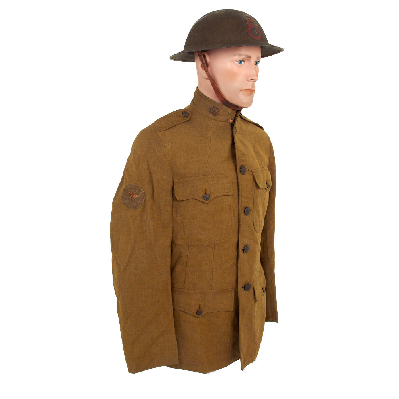 • Original Items: Only Ones Available. An original set once belonging to an enlisted aviation mechanic who served with an Aviation Section attached to the 2nd Army during WWI. The set features a complete M-1917 Helmet with painted insignia and a Private Purchase M-1912 Coat with full insignia and a French Made Shoulder Sleeve Insignia.
