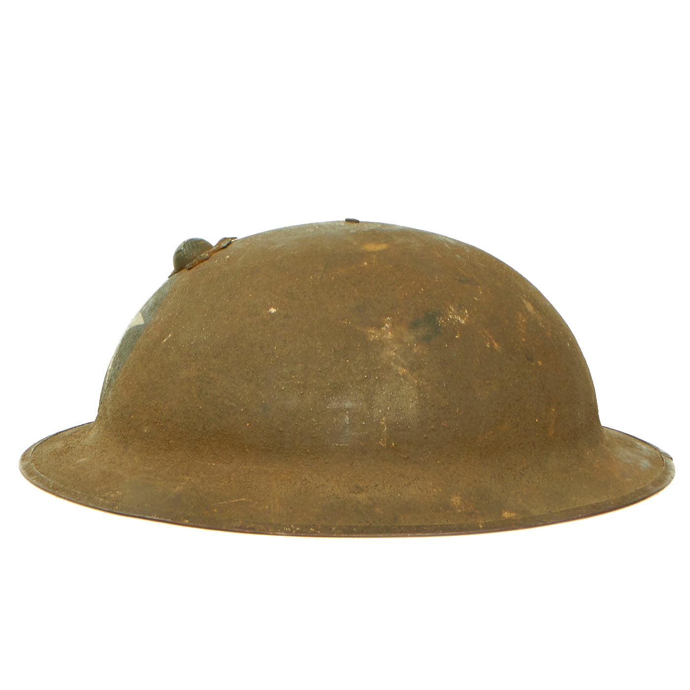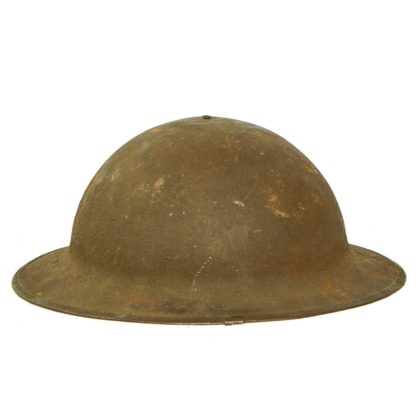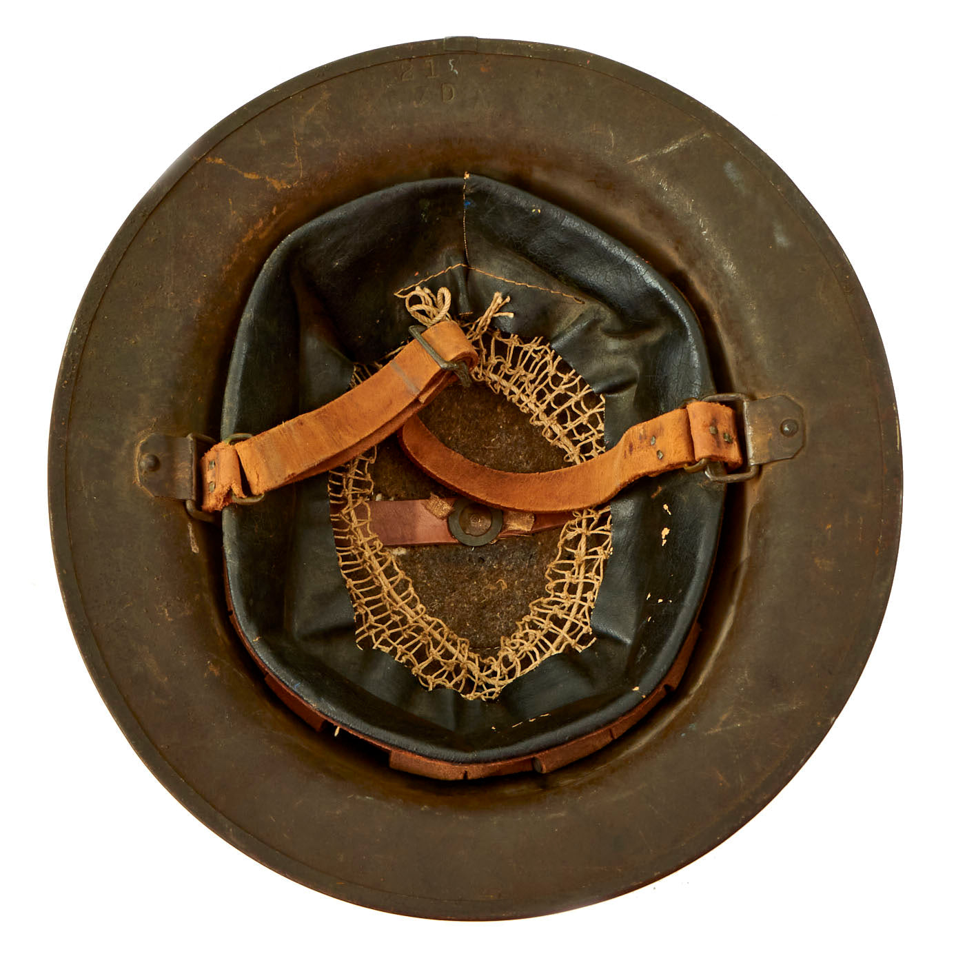 Original Item: Only One Available. This is a very nice example of an original U.S. Army M1917 "Doughboy" helmet shell, which is marked on the front with a 3rd Battalion, 23rd Infantry Regiment, 2nd Infantry Division insignia. The shell is maker marked with a stamping on the underside of the rim that reads ZD 214. This maker marking indicates that this is a U.S. produced shell, which is further indicated by the solid rivets used to retain the chin strap bales.
