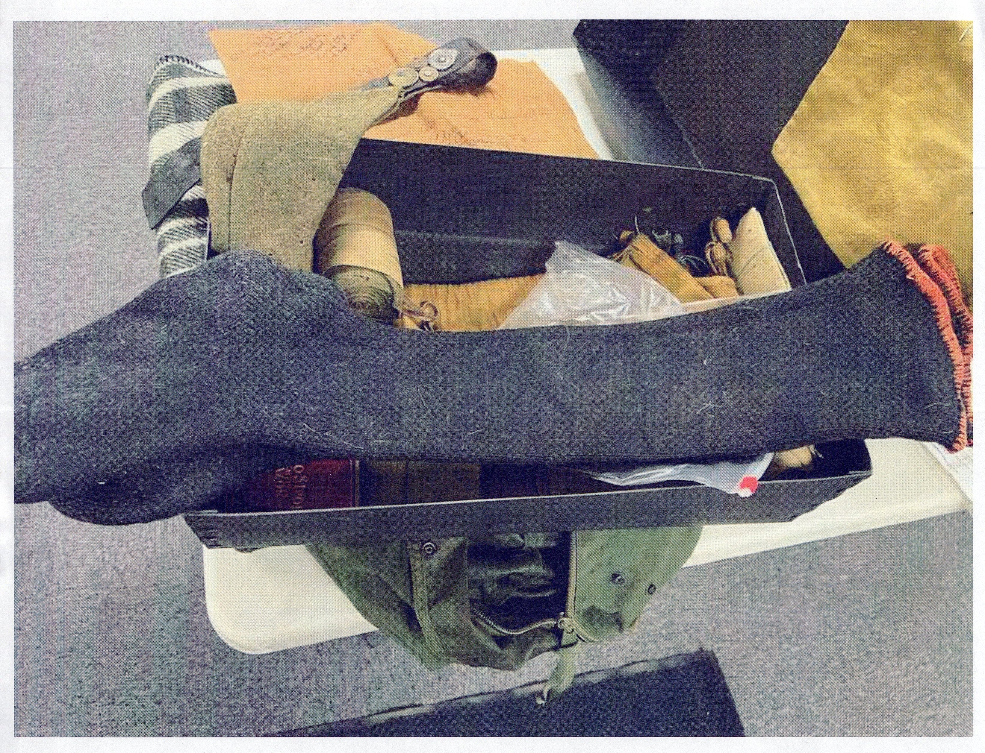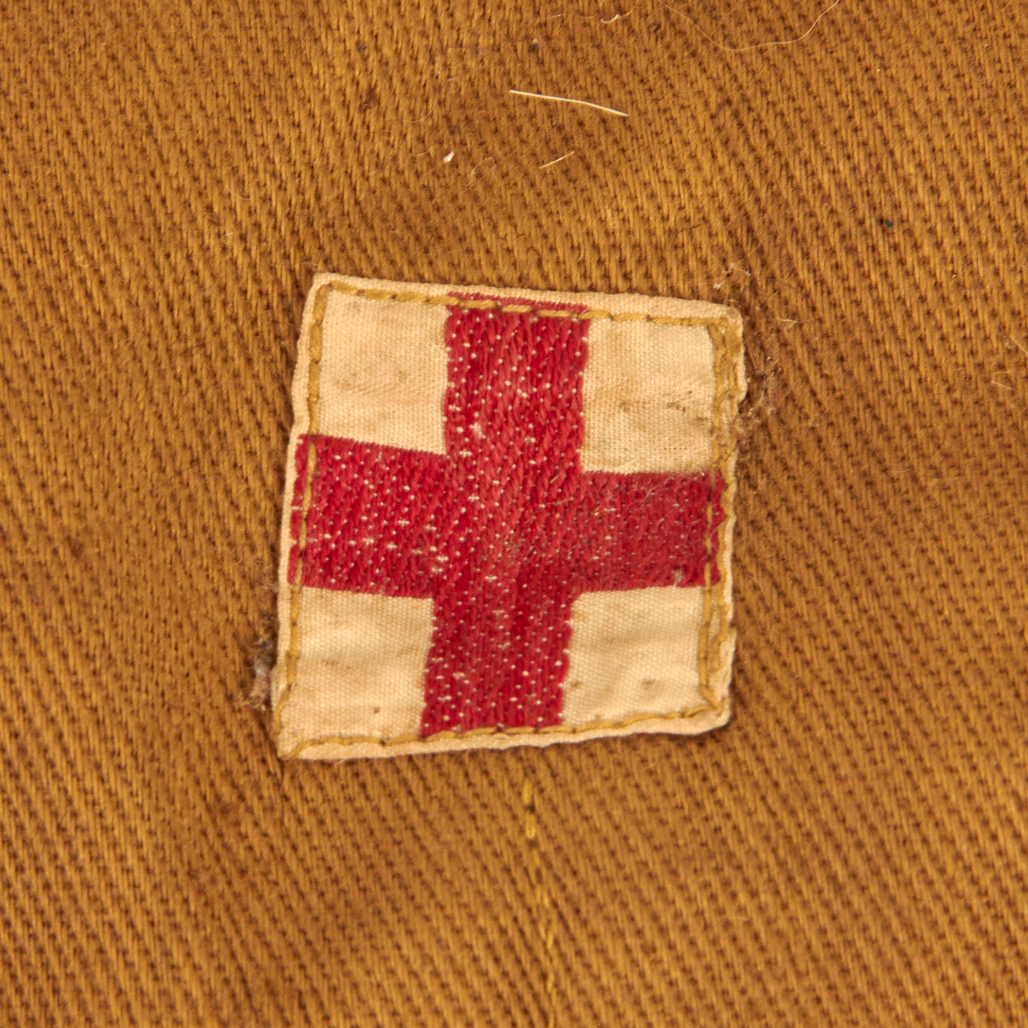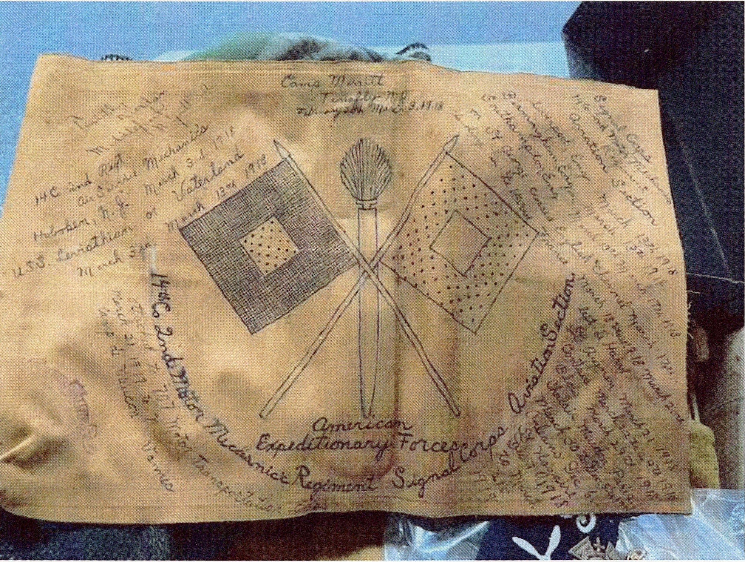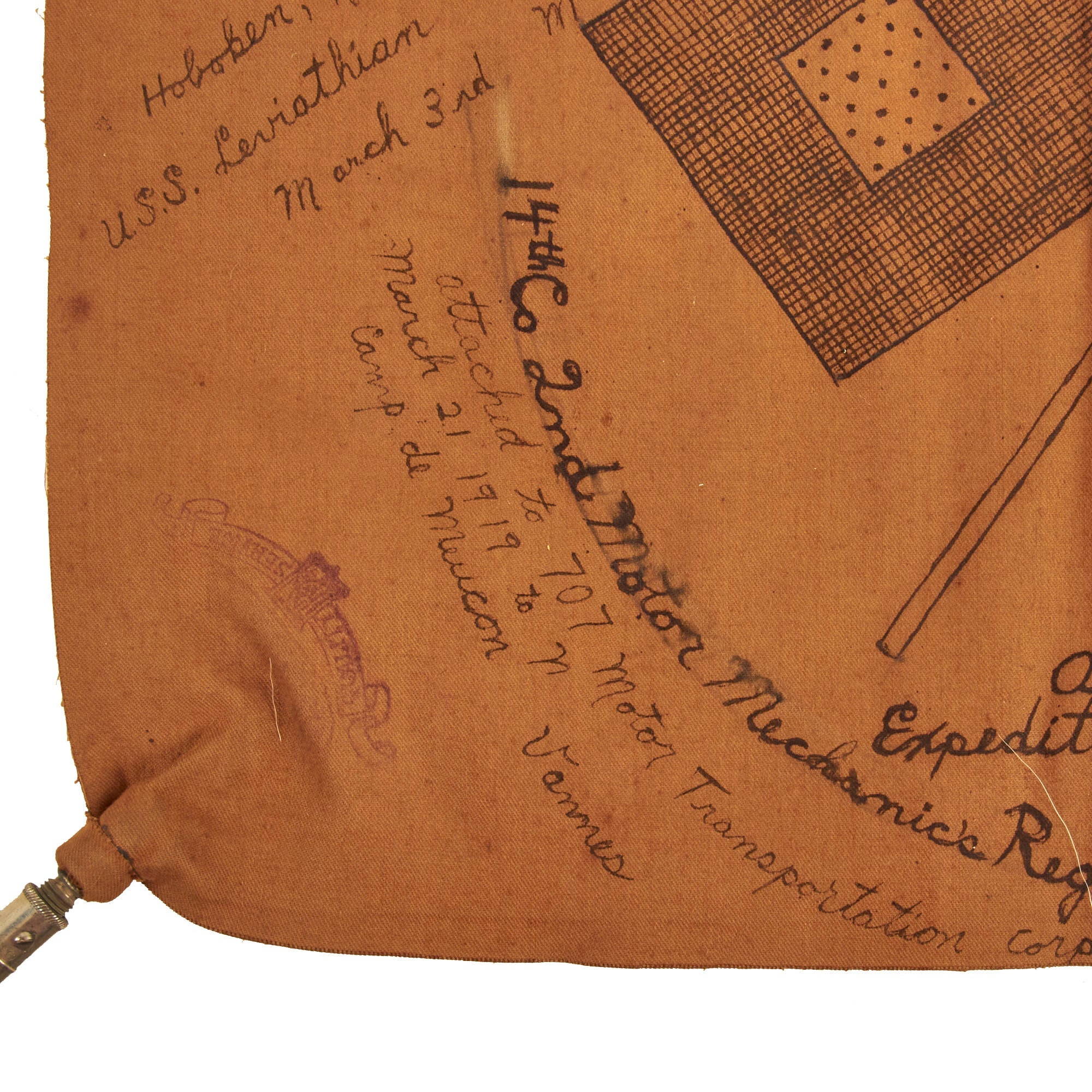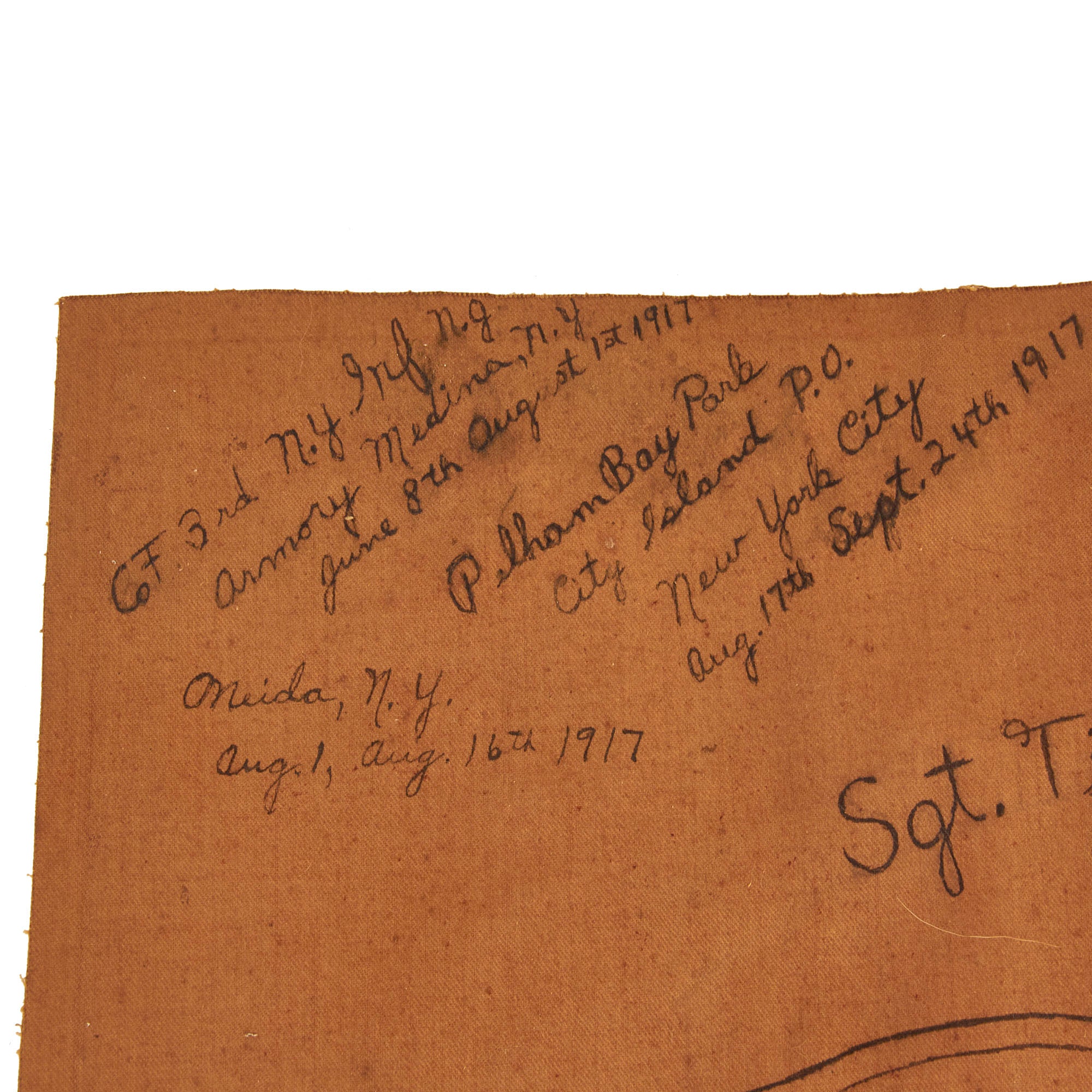 The “trunk grouping” belonged to Sergeant Timothy Riordan, a mechanic with the 2nd Army Air Service, an element established towards the end of the war. It comes in a very nice named and labeled case measuring 21" x 13" x 5". The grouping consists mainly of uniform items such as an overseas cap, leg protectors, chevrons, razors, French translation book, a red cross bag and a few pouches. There are a few items that stood out amongst the rest, one of which being a “hate belt”, but not like you are used to seeing. This leather belt is a German DRGM black leather belt without buckles and has 28 coins affixed to it via brass rivets. The coins vary in country and may have been souvenirs from countries traveled to or traded for.