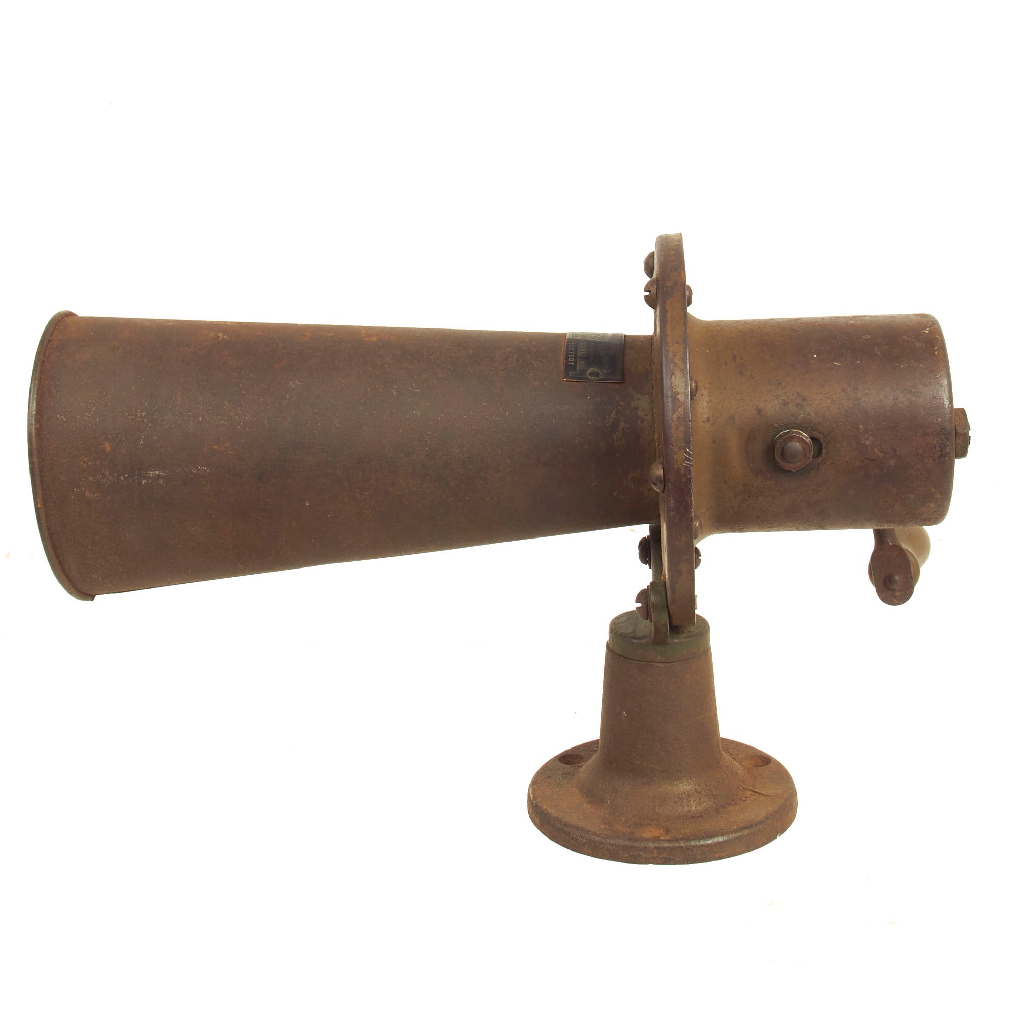 Authentic, well marked and still working, the Zeppelins are coming! Still in great working condition after more than 100 years, with just some deformation to the "horn" portion. Ready to display or frighten your cows! Makes a perfect and unique addition to any Great War collection.
