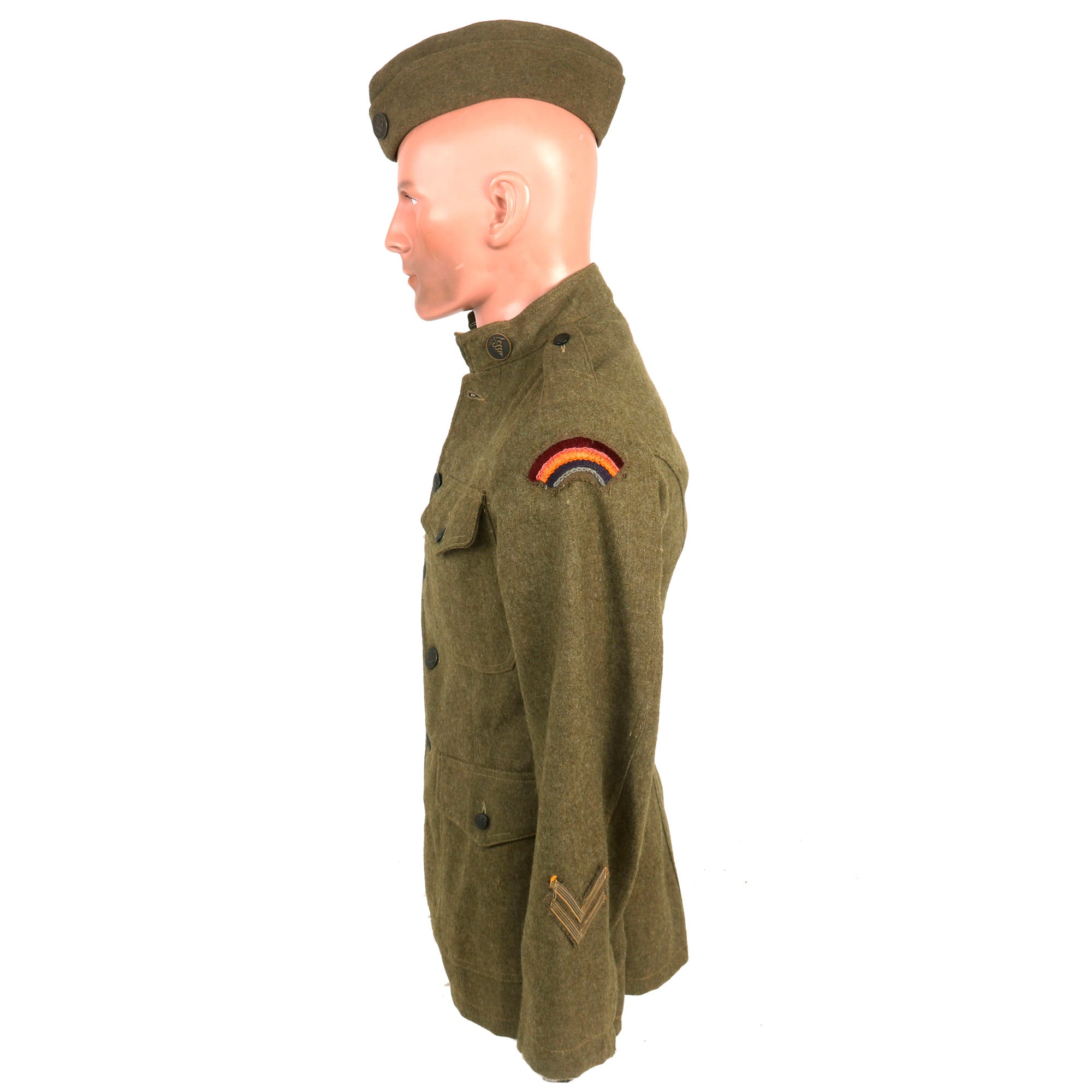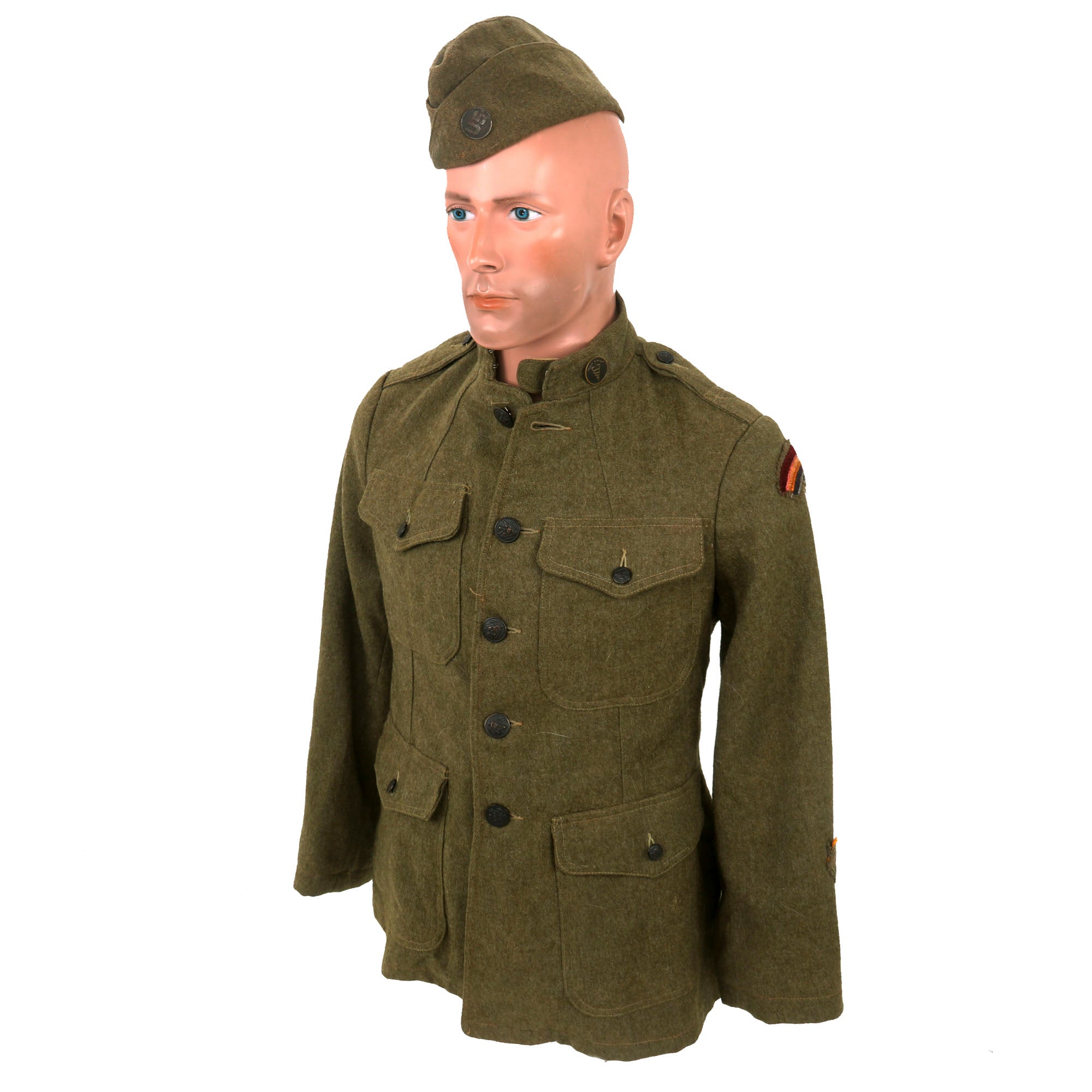 Original Items: One of a Kind Set. During World War I, the 42nd Division saw more combat on the front lines than any other division in the American Expeditionary Forces. This uniform grouping is named to a combat medic who fought with the 42nd Division in France.
