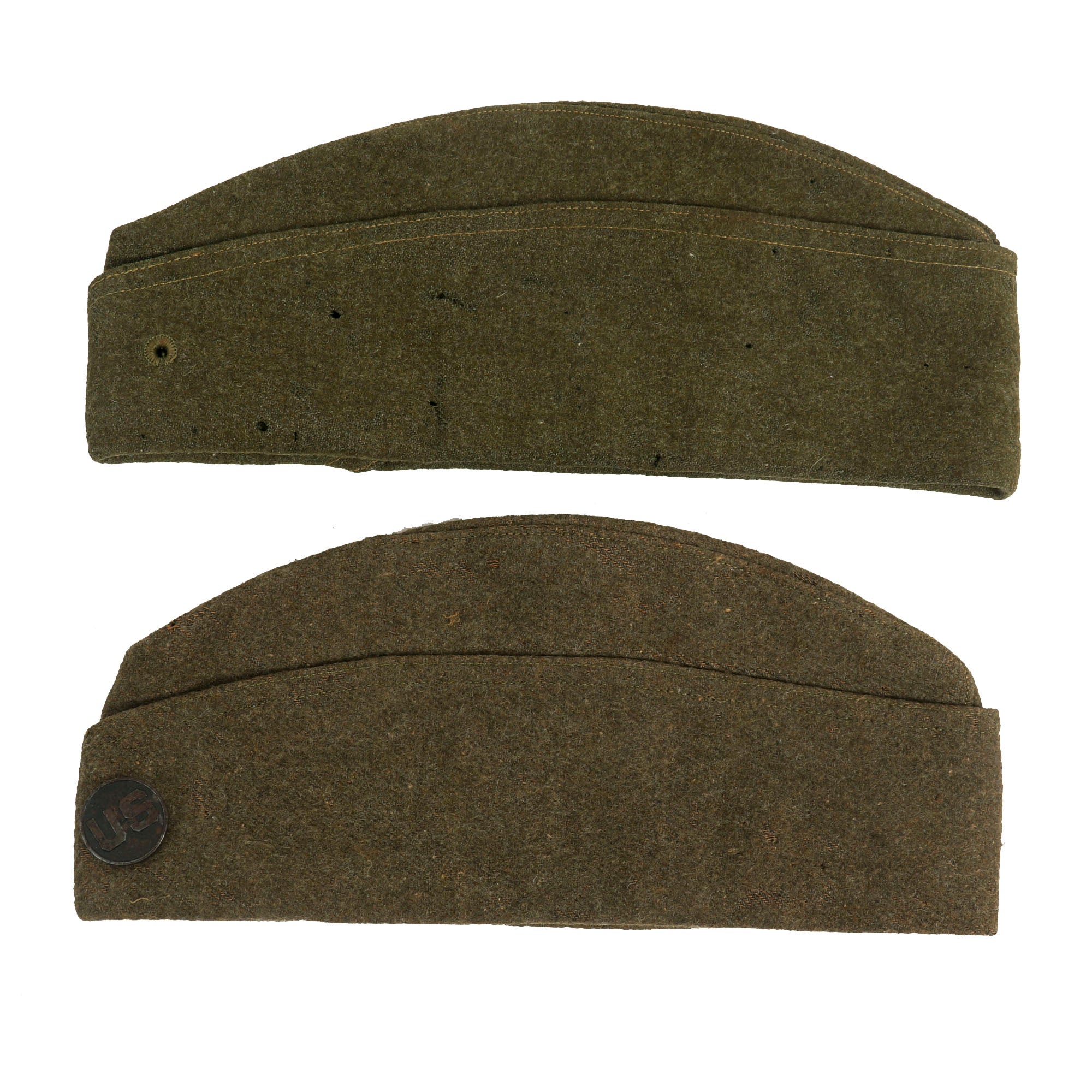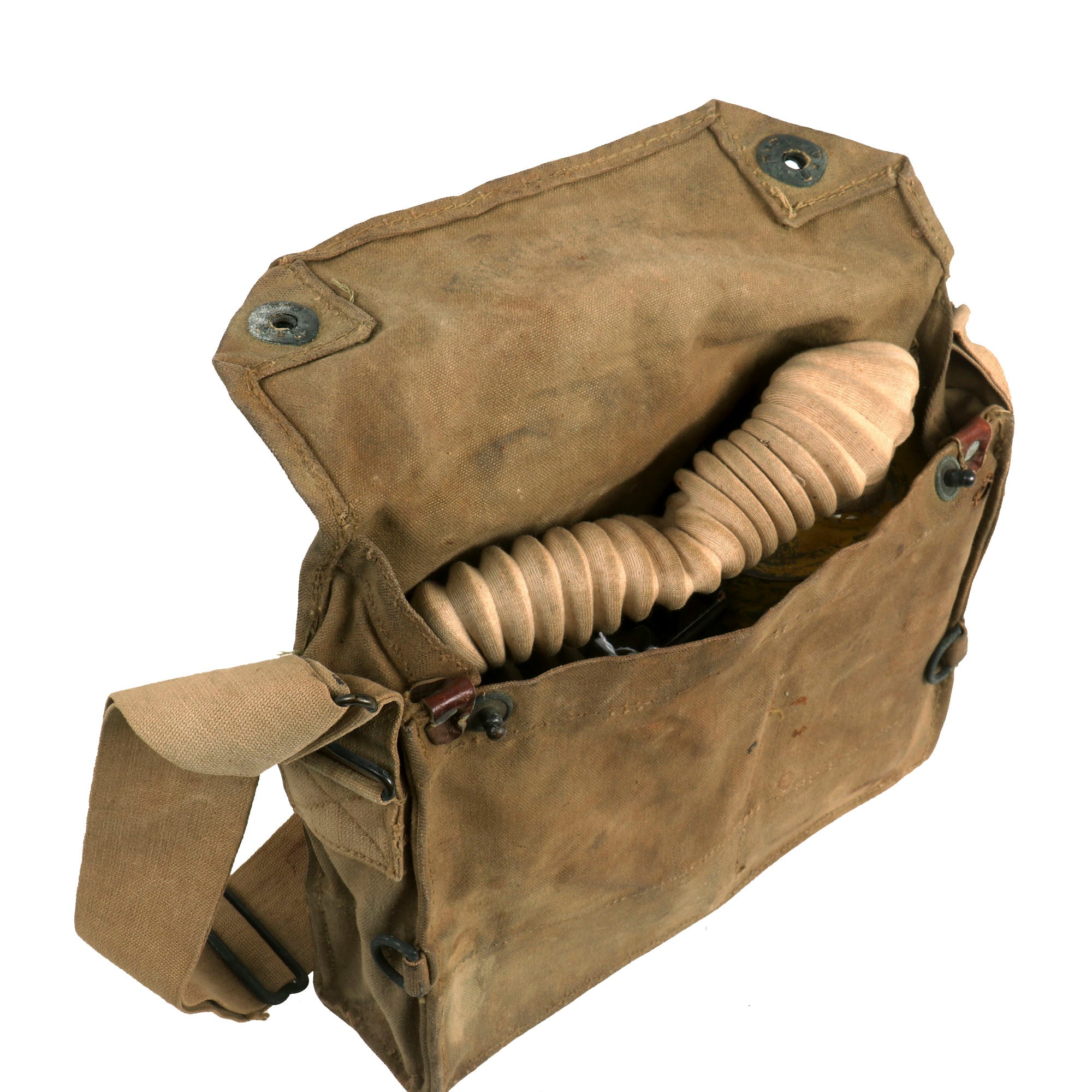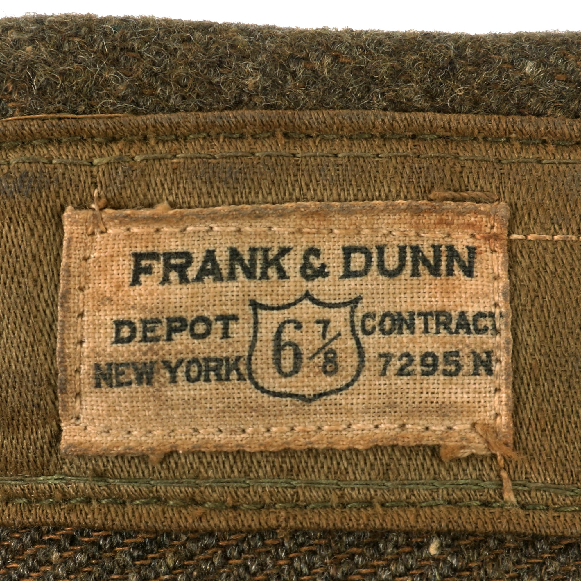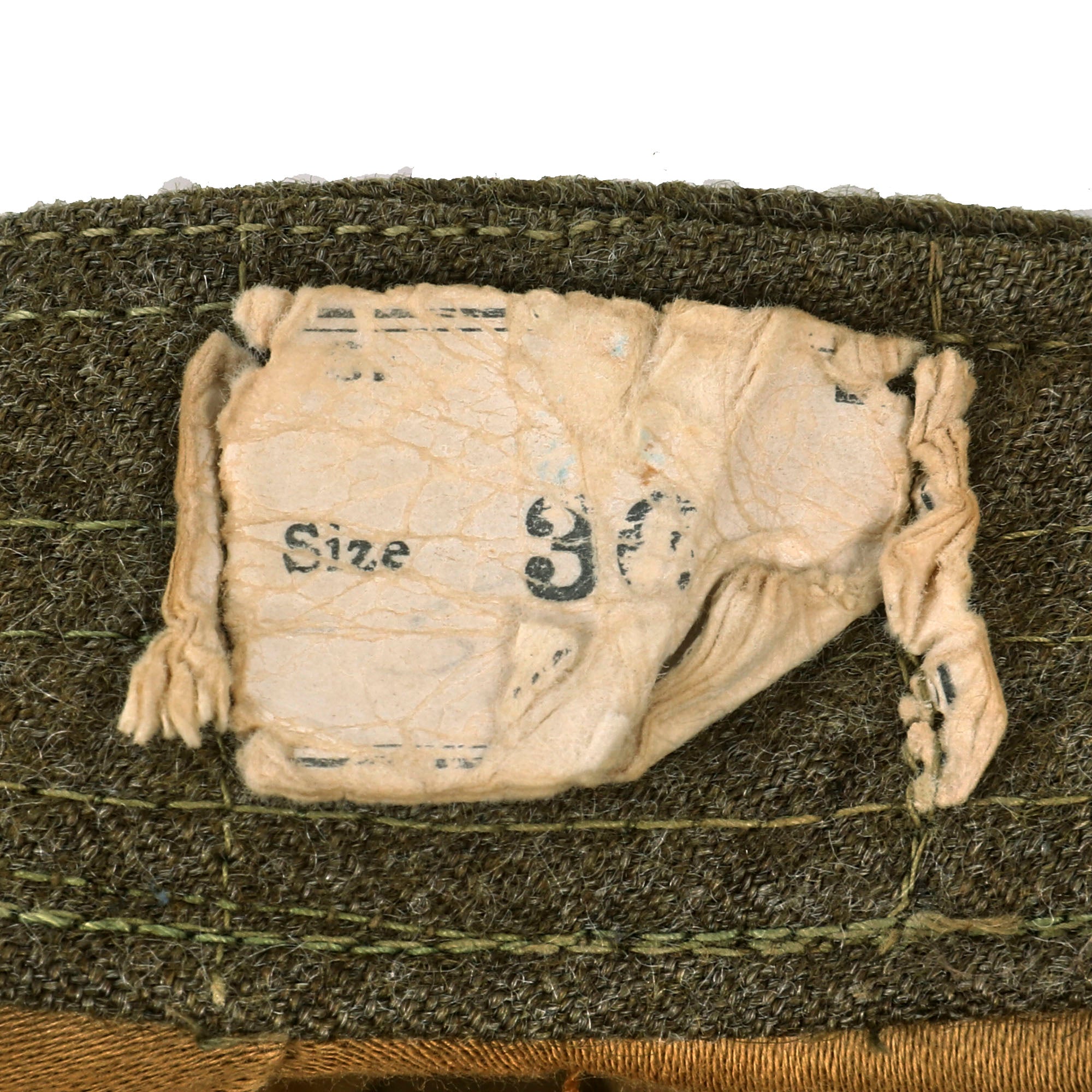 This is a uniform, helmet, and gas mask grouping to E. R. Pearson, a private in the medical department of the division. The uniform jacket has a beautiful hand-embroidered 42nd Division “full rainbow” patch, US & medical collar discs, and two overseas chevrons, denoting 12-15 months overseas during the war, meaning the soldier was likely a replacement for the 42nd Division. The uniform is in good shape and has little mothing. The gas mask is a full example with the mask and canister still remaining. The helmet is a plain example with no painted insignia, with a full liner and partial broken chinstrap. The helmet has the initials “E.R.P.” written on the chinstrap. Also included are his two overseas caps, one lacking an insignia and the other with a US collar disc.